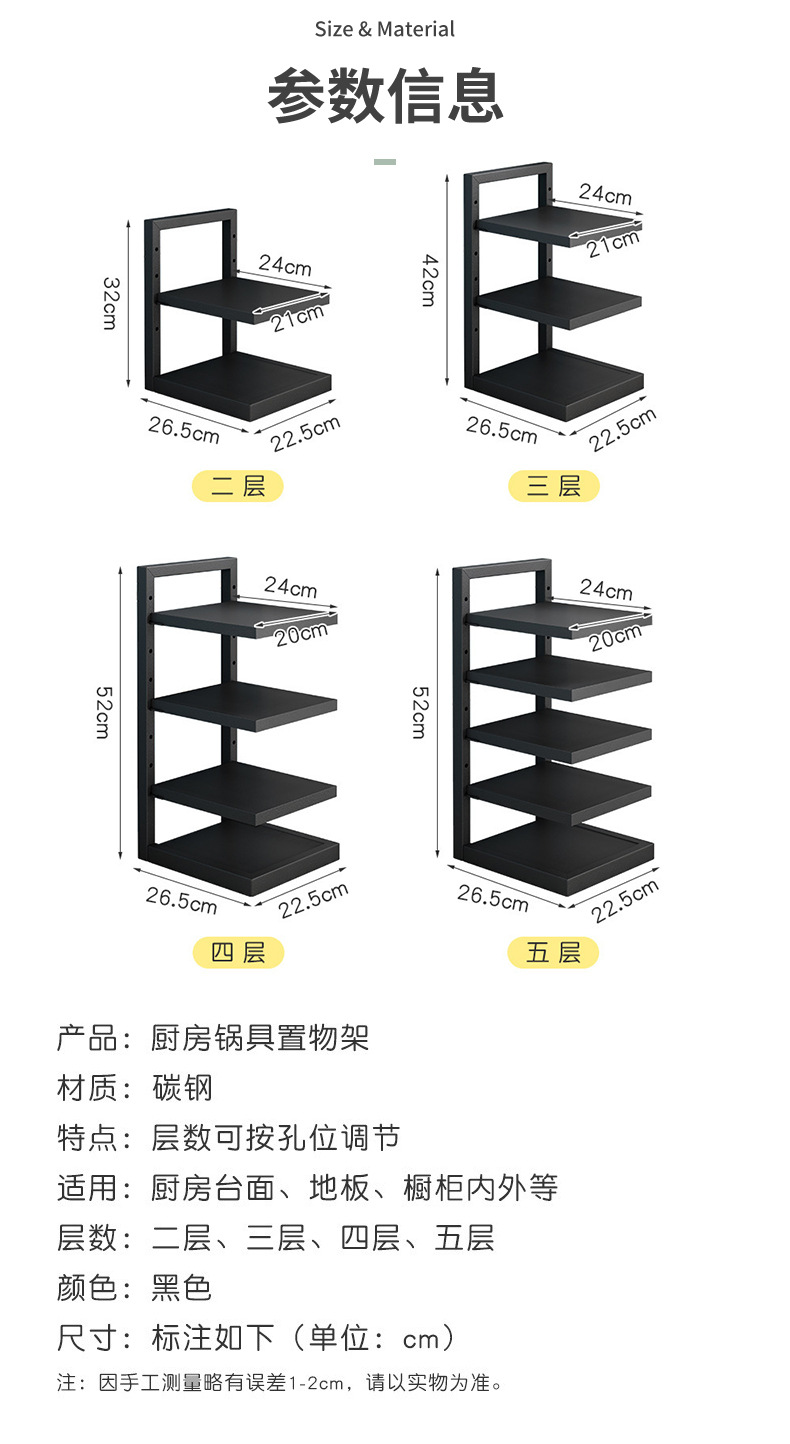 주방 냄비 보관 랙 다층 바닥 스탠드 다층 싱크 스토리지 랙 계층화 가정용 냄비 랙 사용자 정의