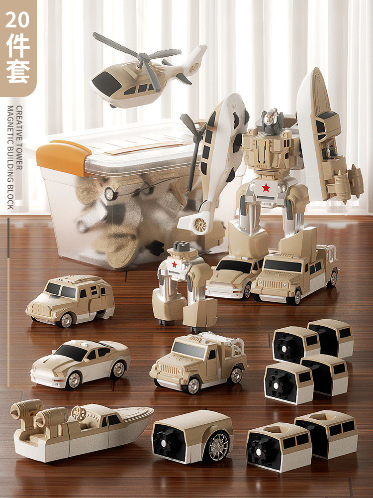 폭발 어린이의 다양한 자기 공학 차량 변형 굴삭기 조립 로봇 킹콩 장난감 소년 3 세