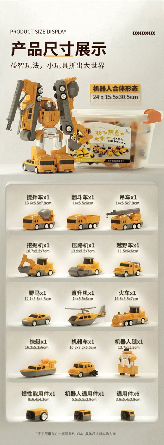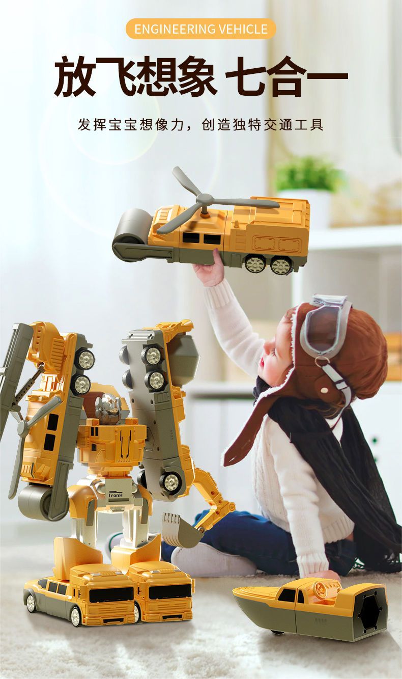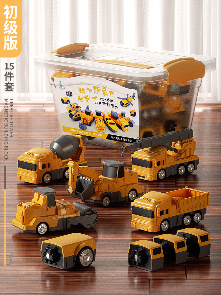 폭발 어린이의 다양한 자기 공학 차량 변형 굴삭기 조립 로봇 킹콩 장난감 소년 3 세스토어 가기