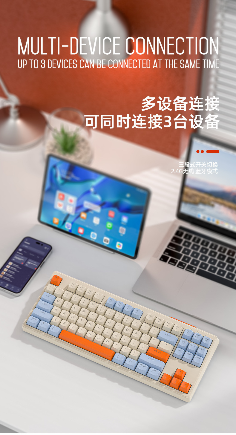 무료 늑대 M87 블루투스 무선 2.4g 듀얼 모드 멀티 컬러 콜라주 기계 느낌 필름 키보드 게임 사무실 음소거
