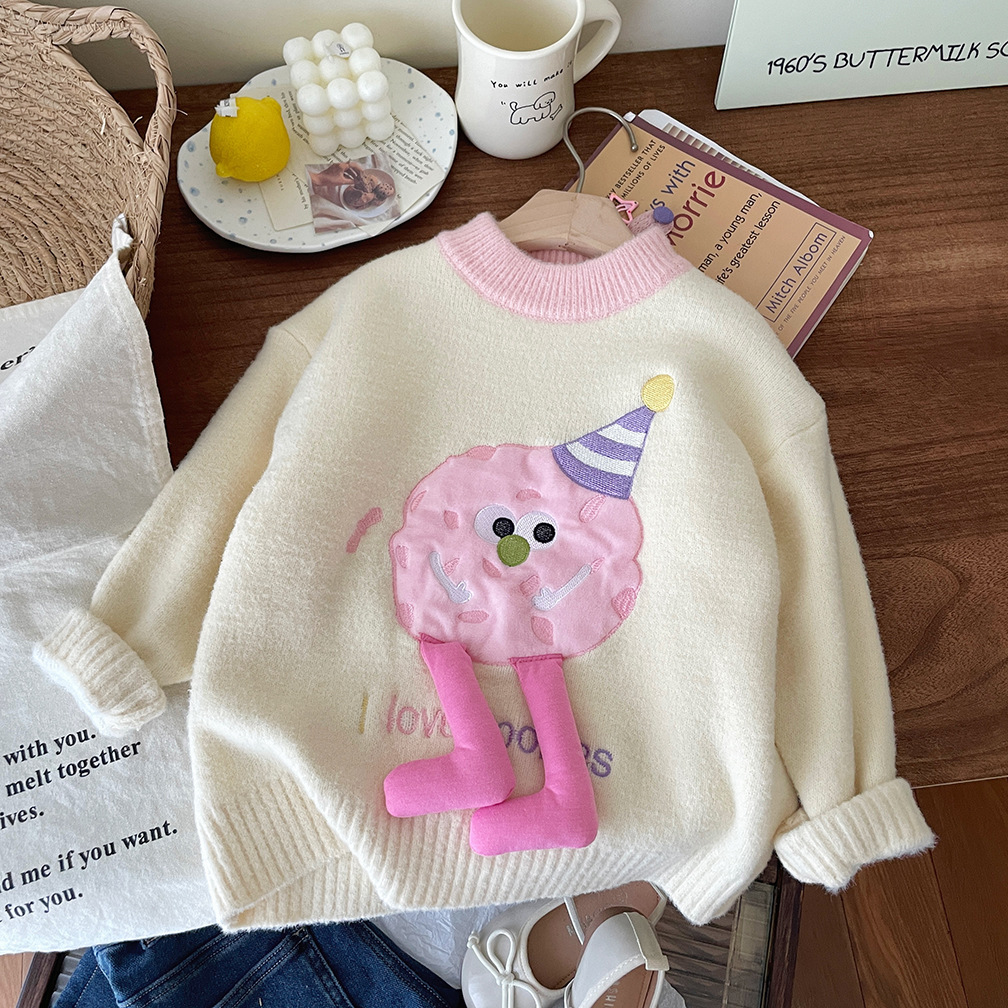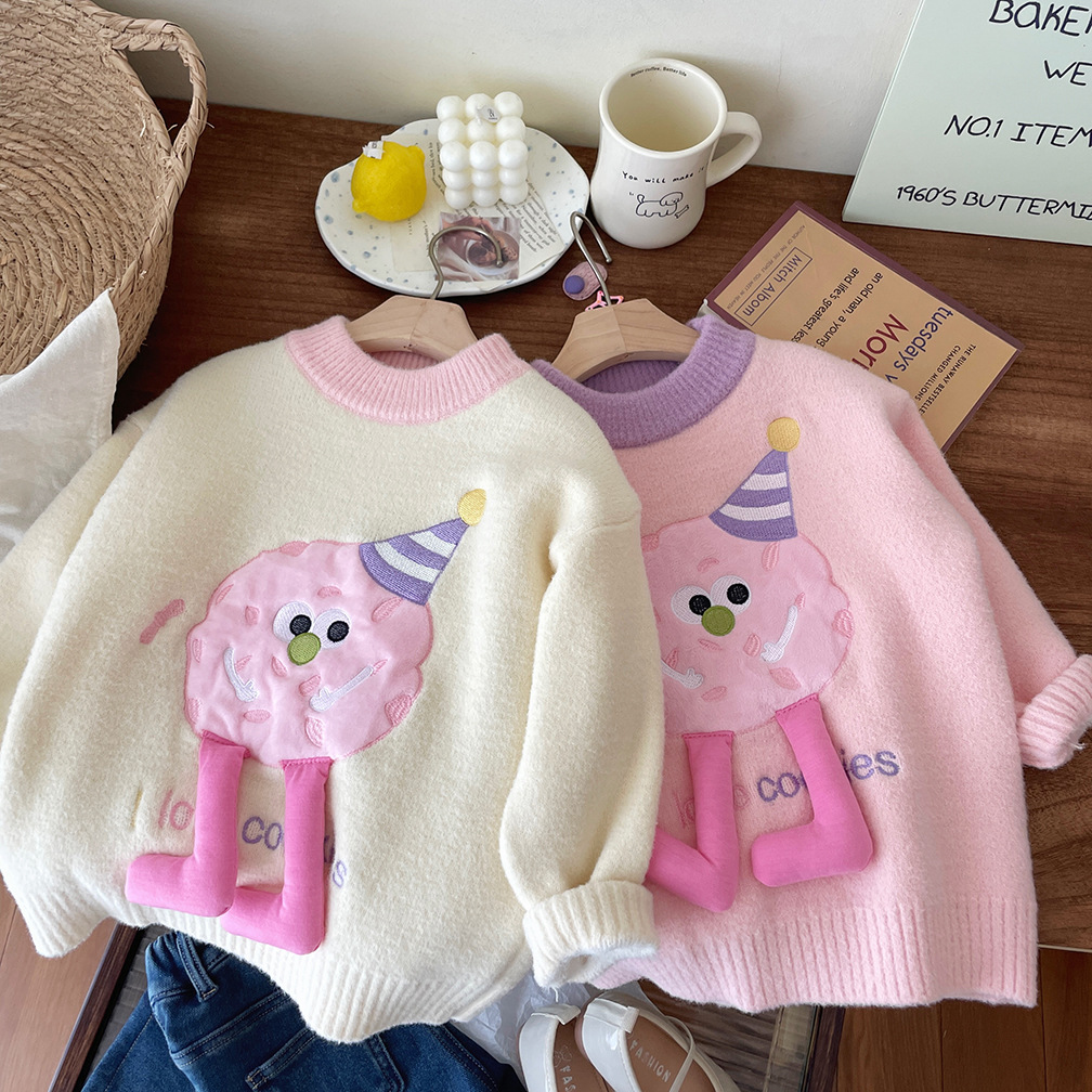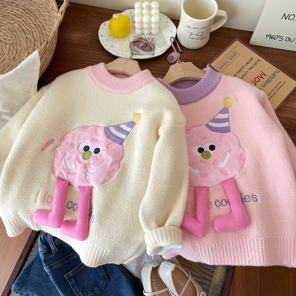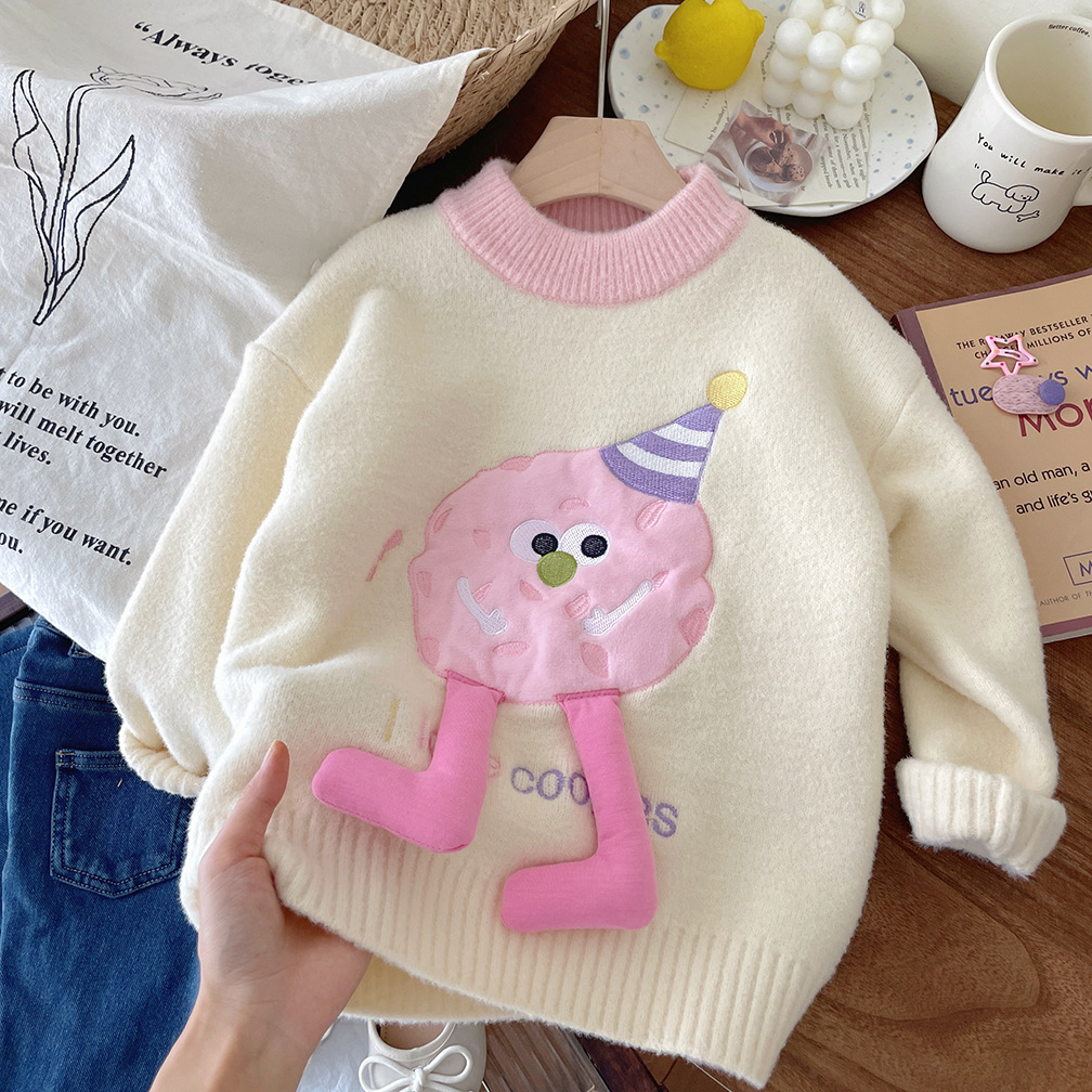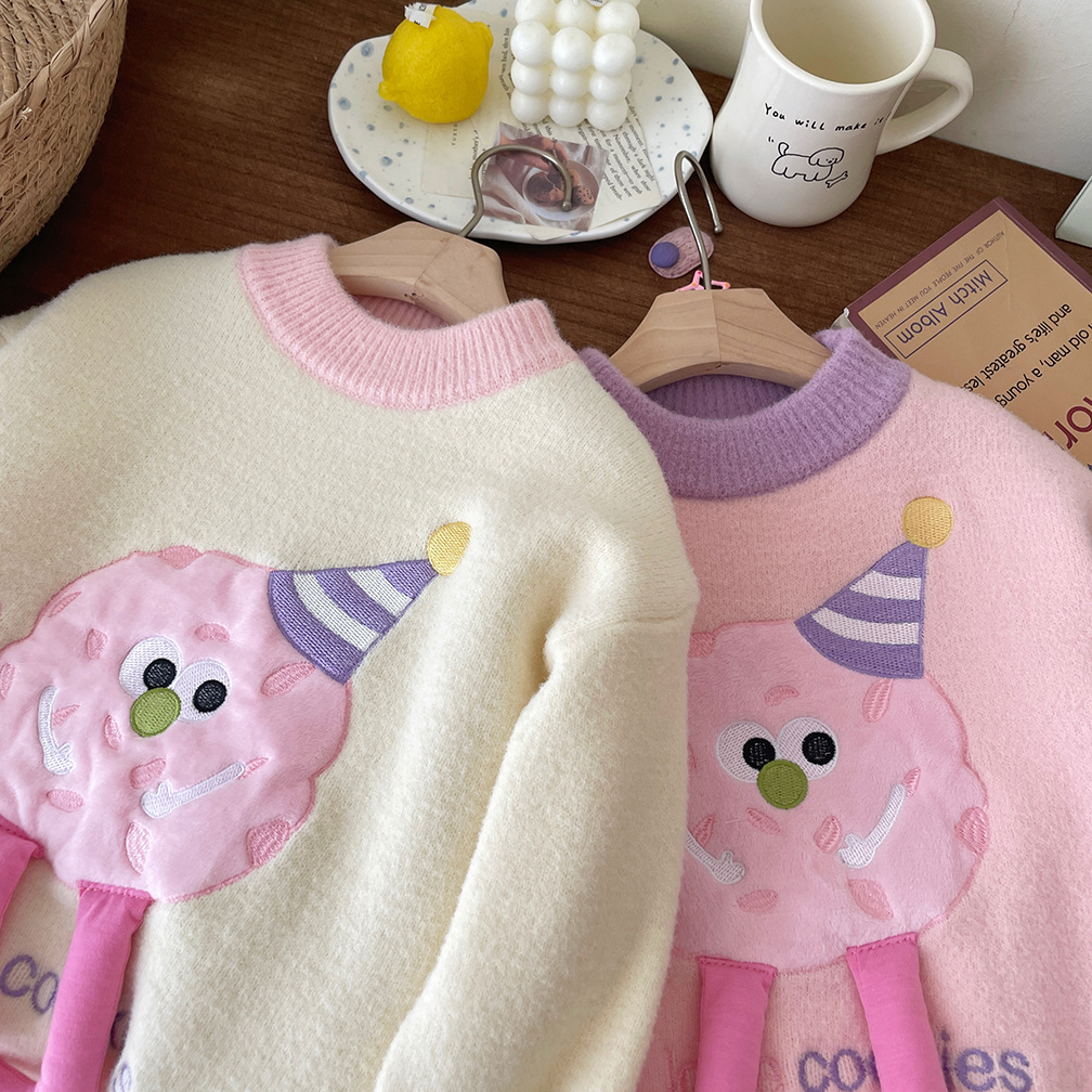 어린이 벨벳 두꺼운 겨울 스웨터 2025 겨울 새로운 만화 한국 풀오버 따뜻한 스웨터