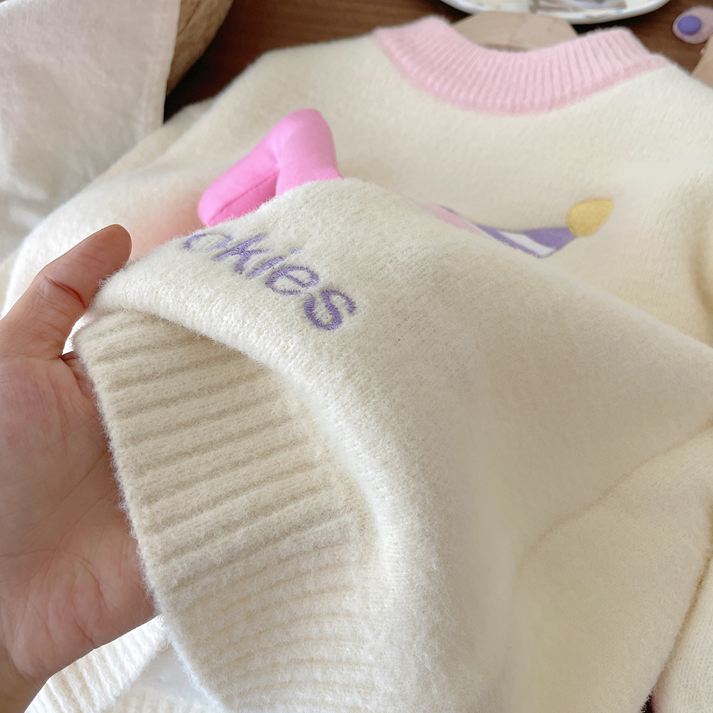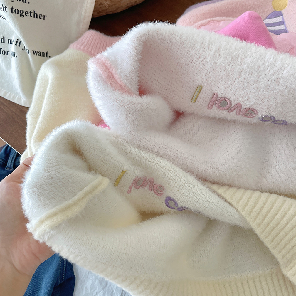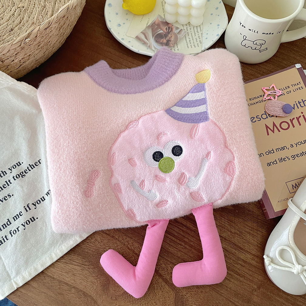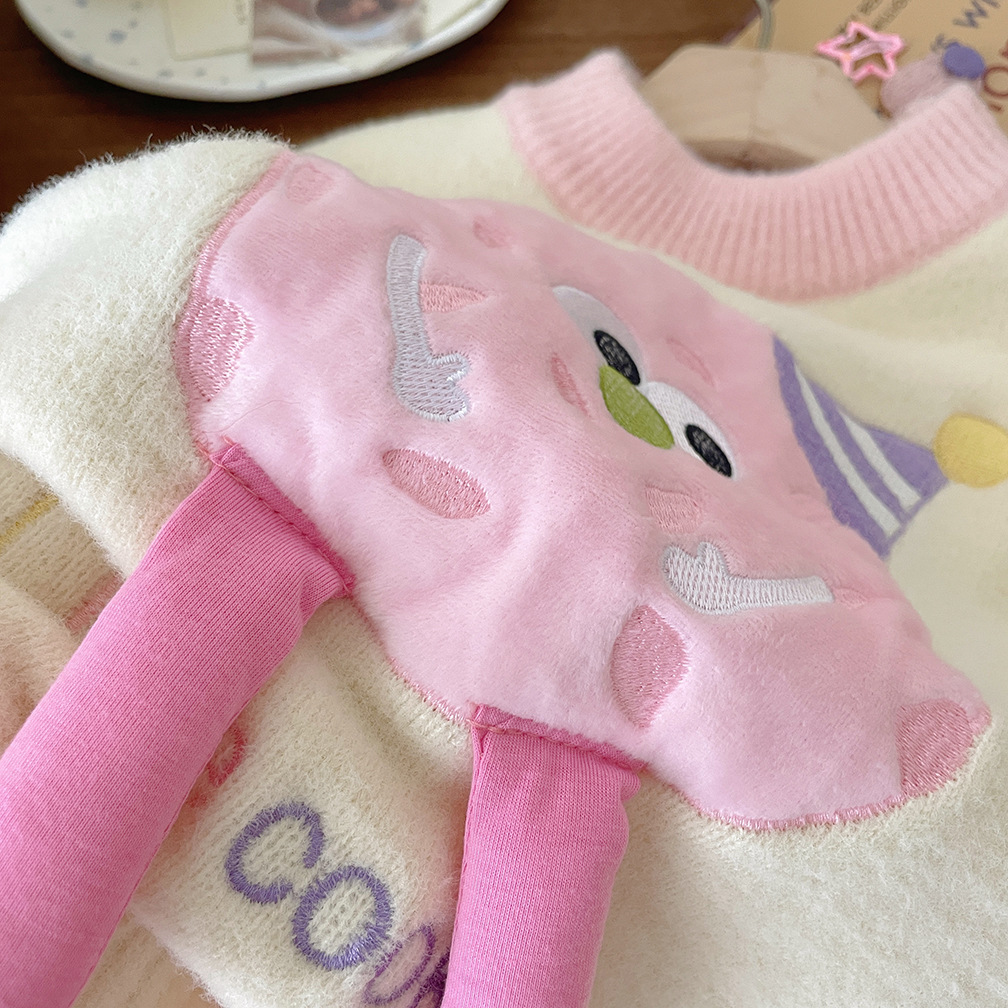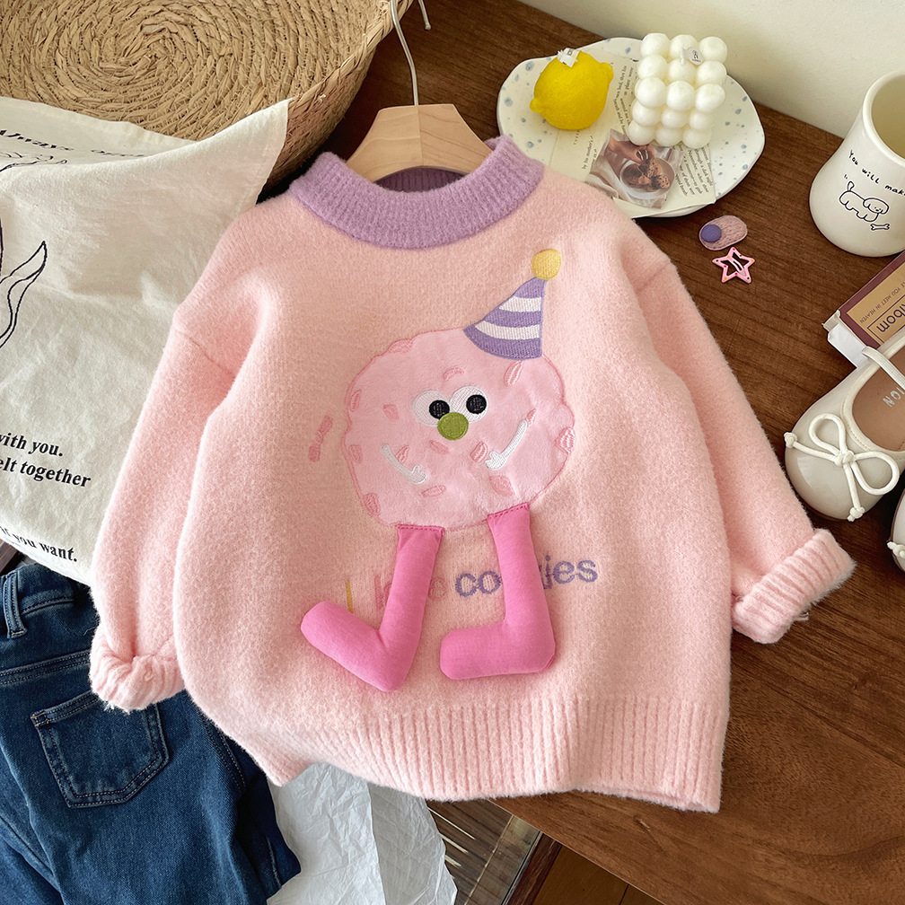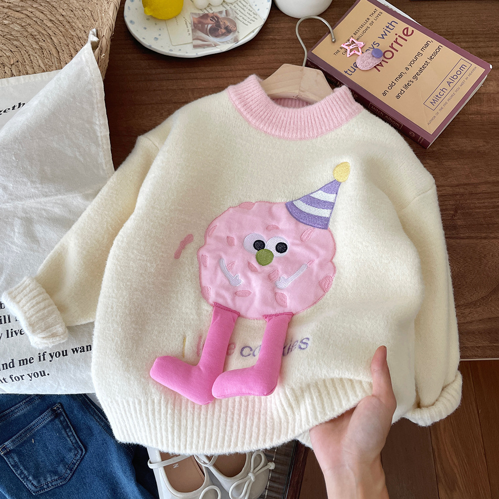 어린이 벨벳 두꺼운 겨울 스웨터 2025 겨울 새로운 만화 한국 풀오버 따뜻한 스웨터