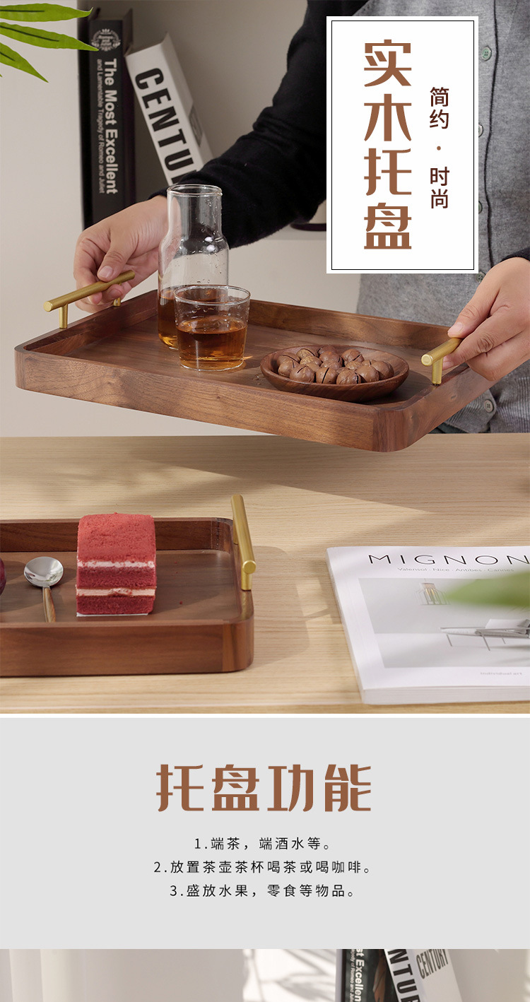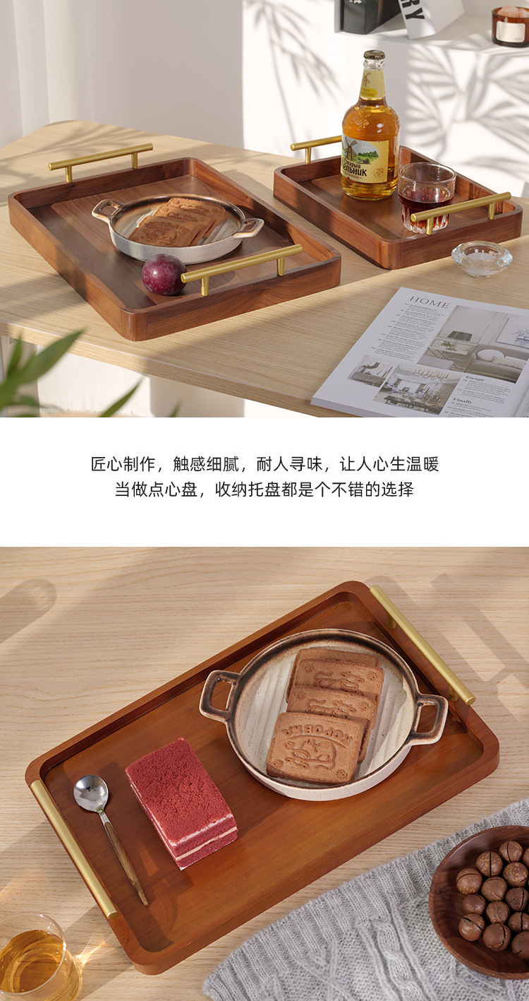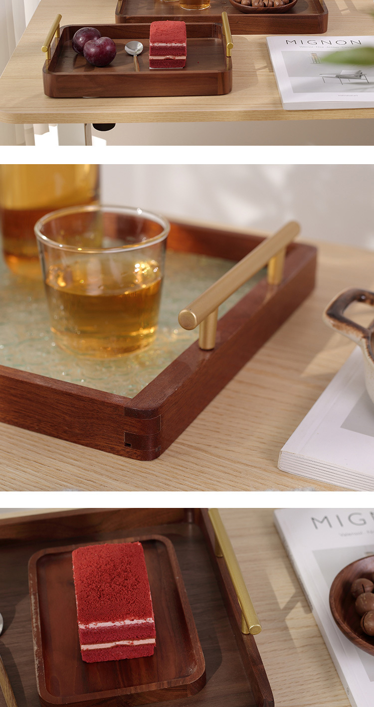 • 호두 금속 핸들 트레이 38*28*3cm