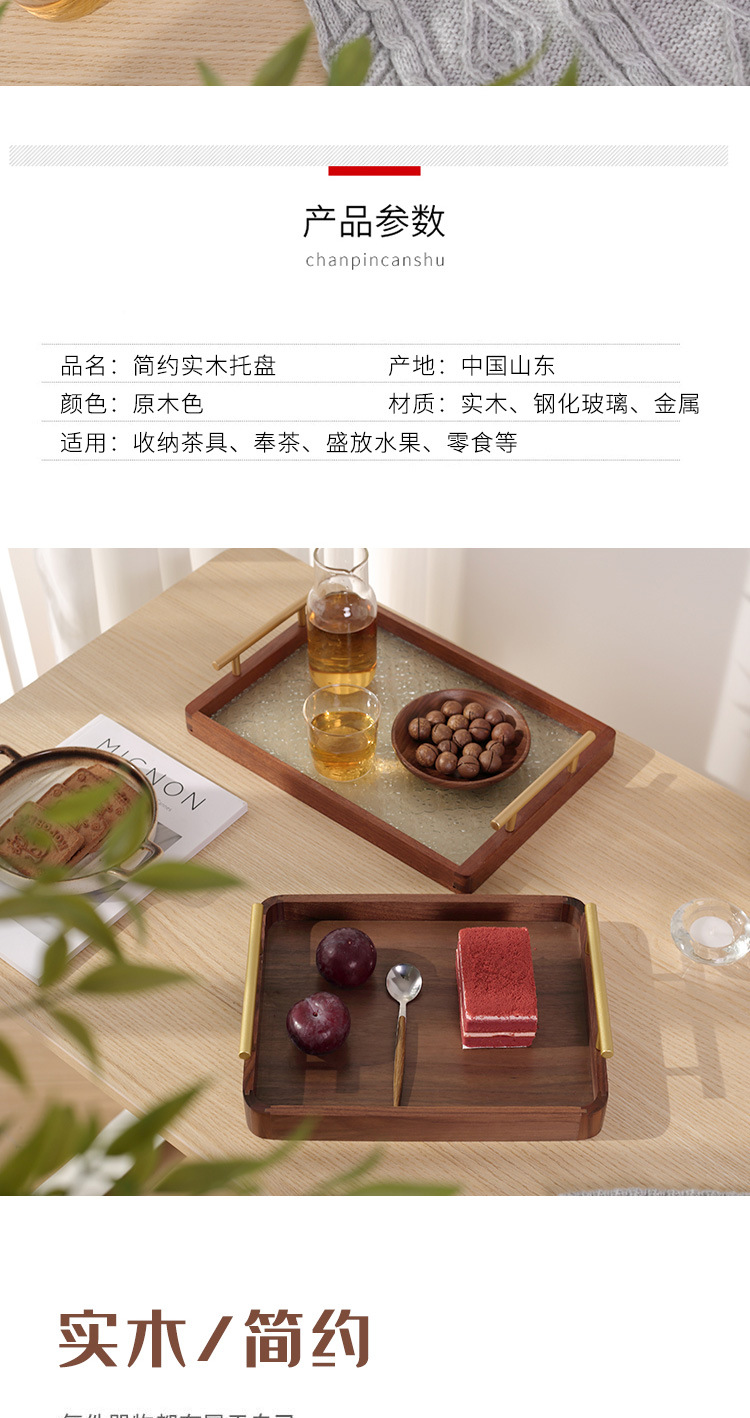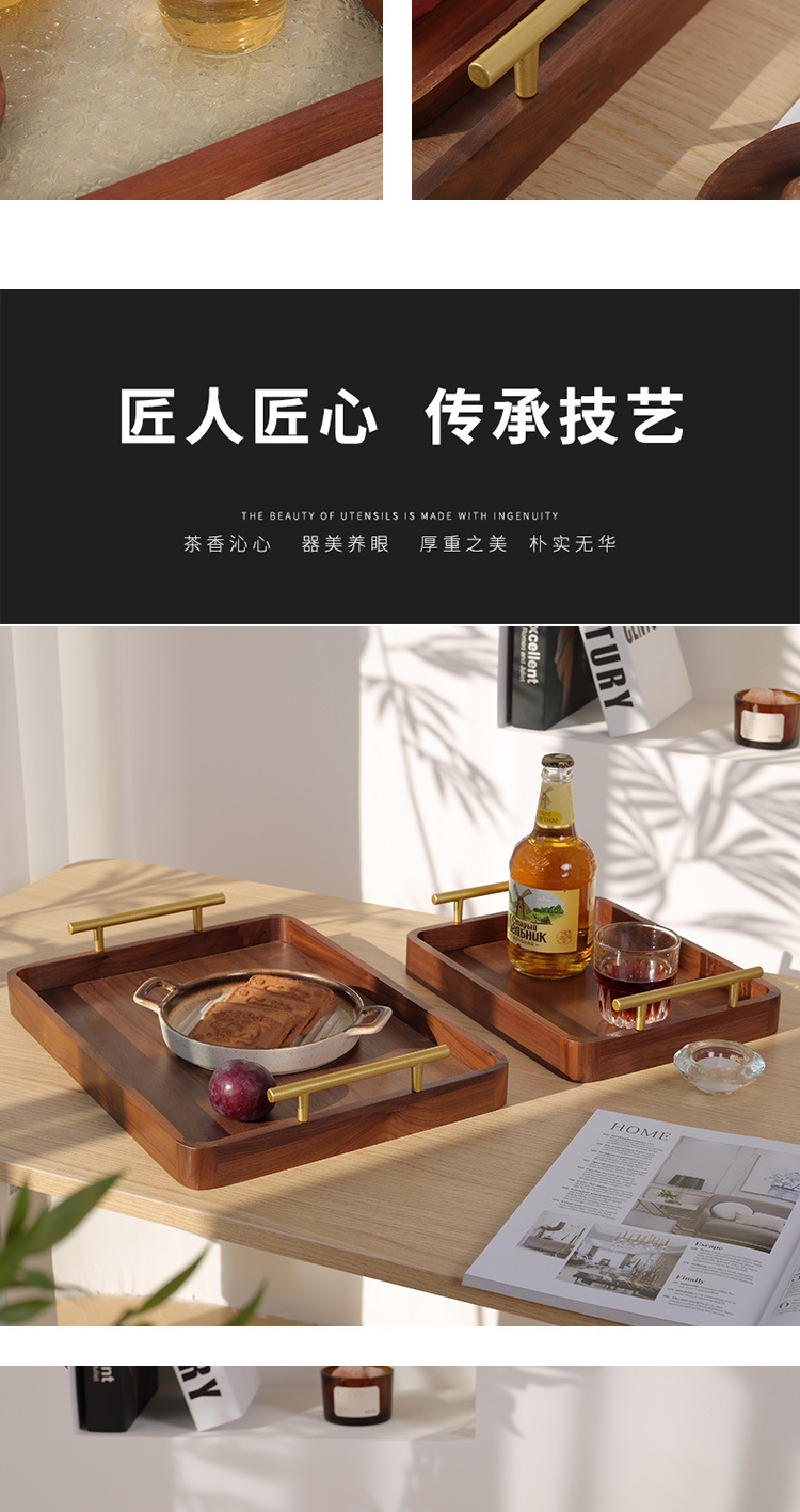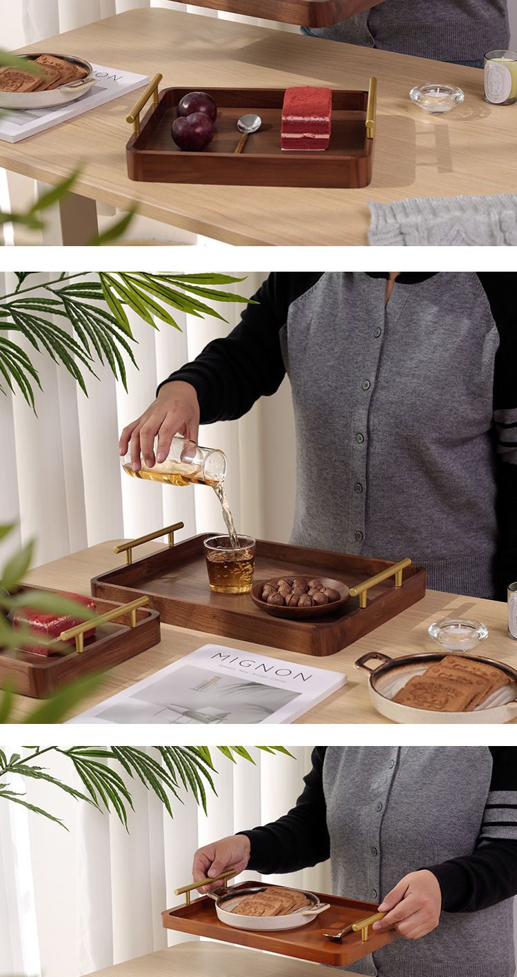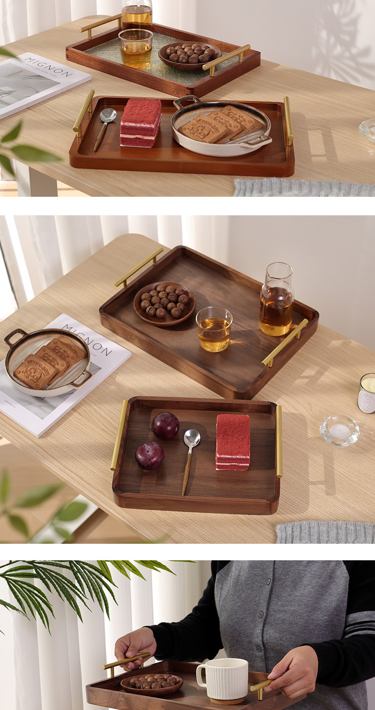 • 호두 금속 핸들 트레이 38*28*3cm