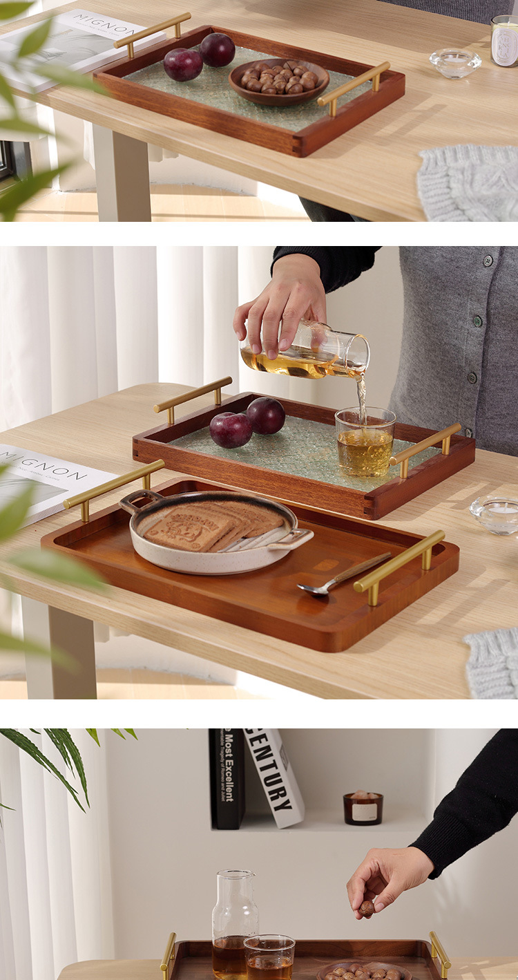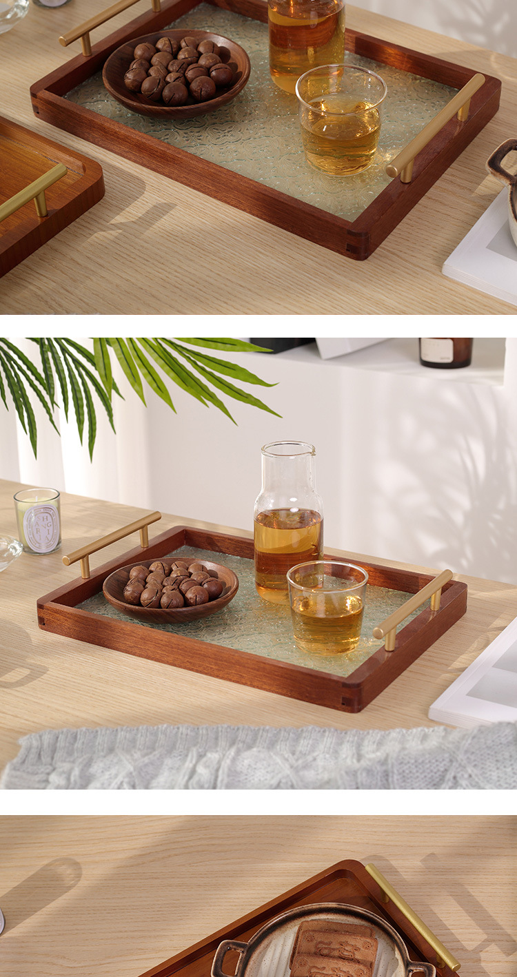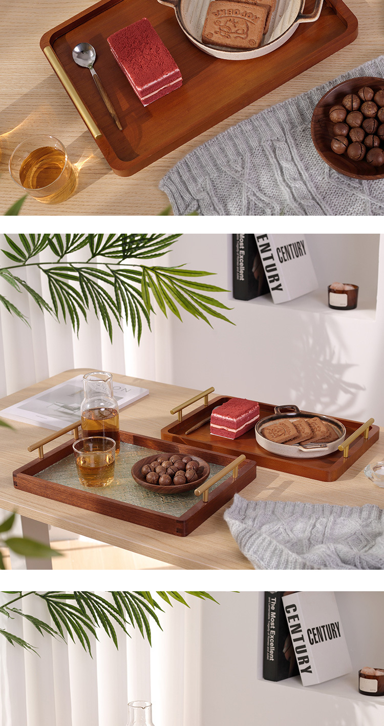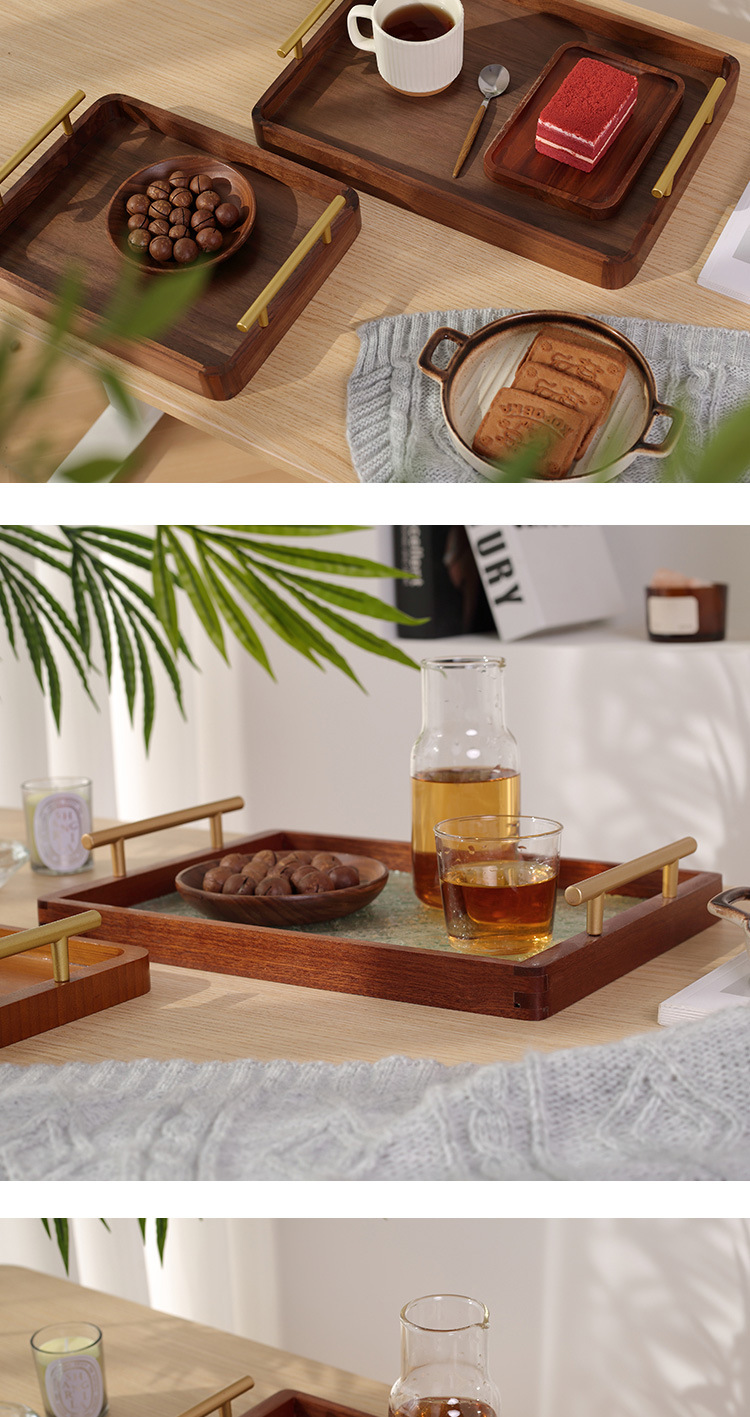 • 호두 금속 손잡이 트레이 28*22*3cm