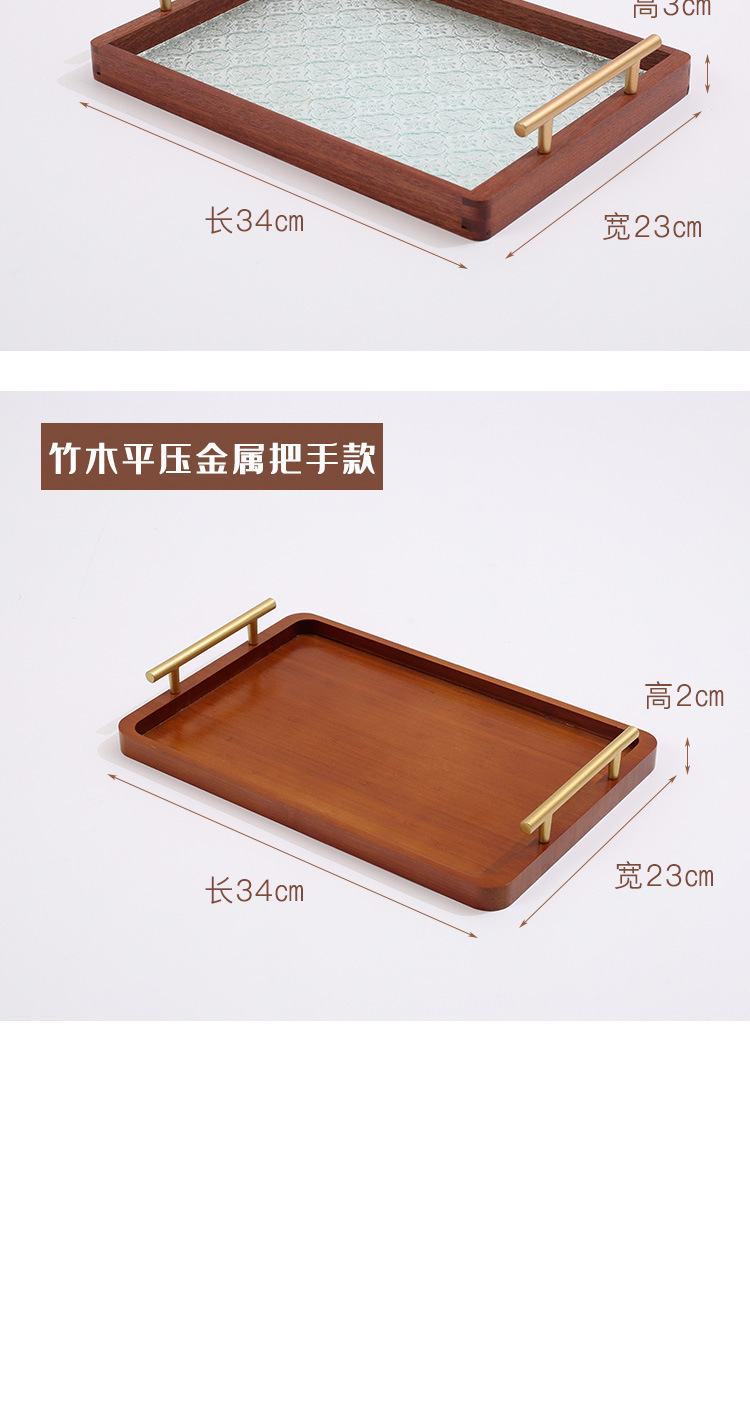 • 호두 색 금속 손잡이 대나무 접시 34*23*2cm