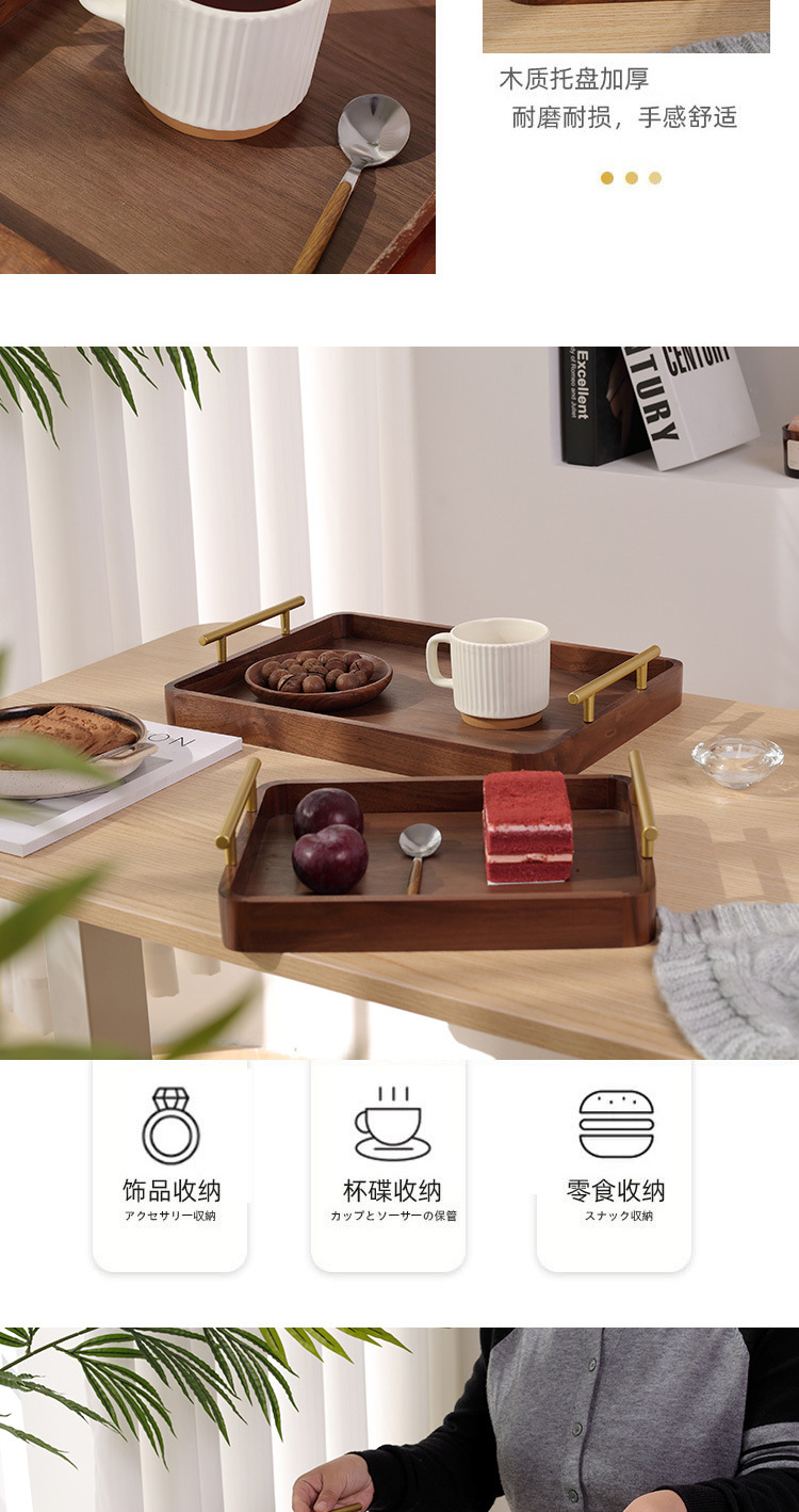 블랙 호두 트레이 직사각형 가정용 단단한 나무 바 이노 럴 디너 플레이트 나무 딤섬 빵 커피 컵 보관 접시스토어 가기