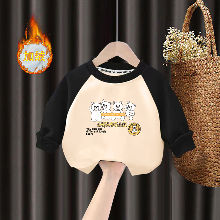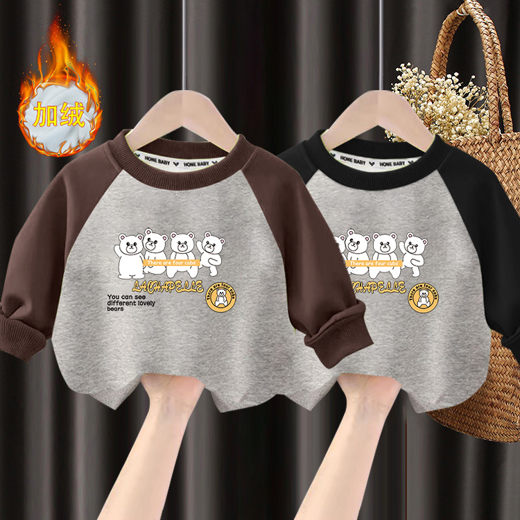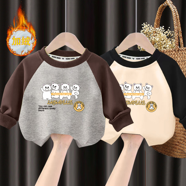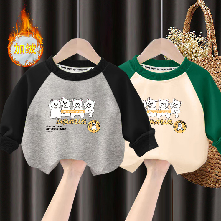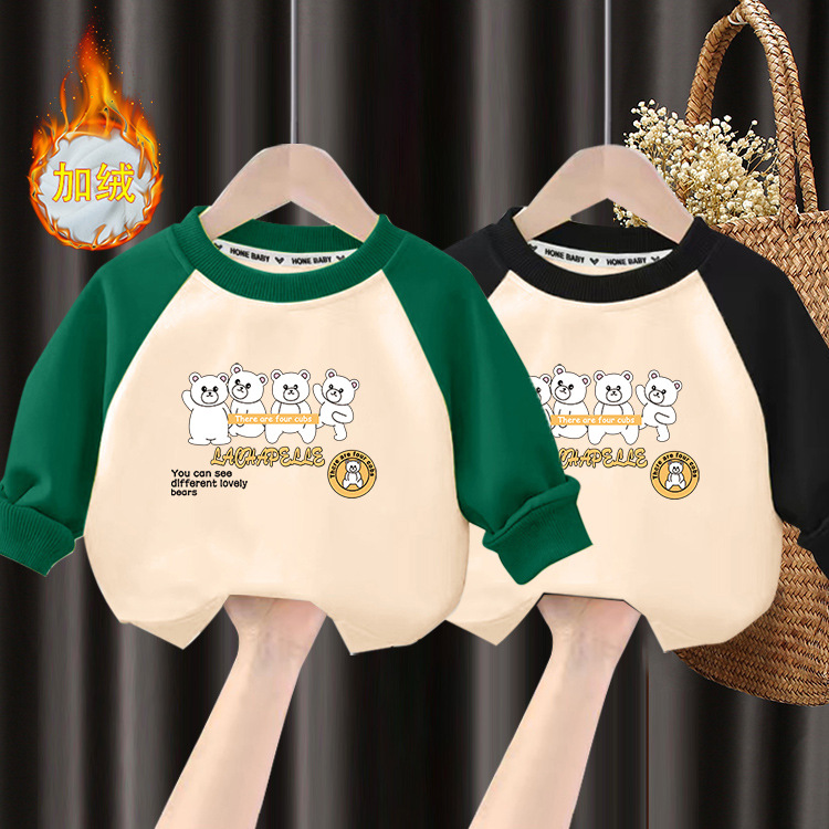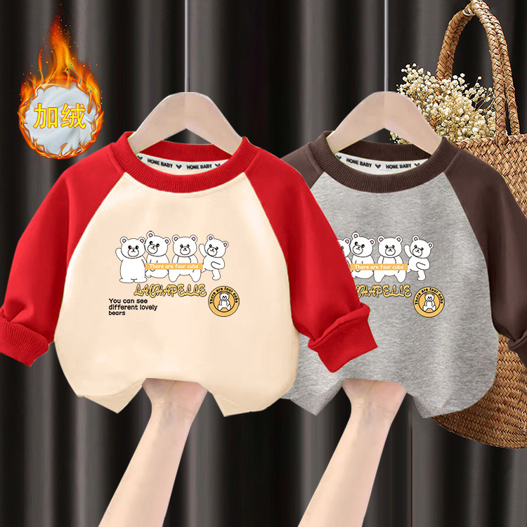어린이 스웨터 어린이 가을과 겨울 옷 베이비 탑 콘트라스트 컬러 라글란 소매 2024 새로운 긴 소매 패션 기모 바닥 겨울스토어 가기