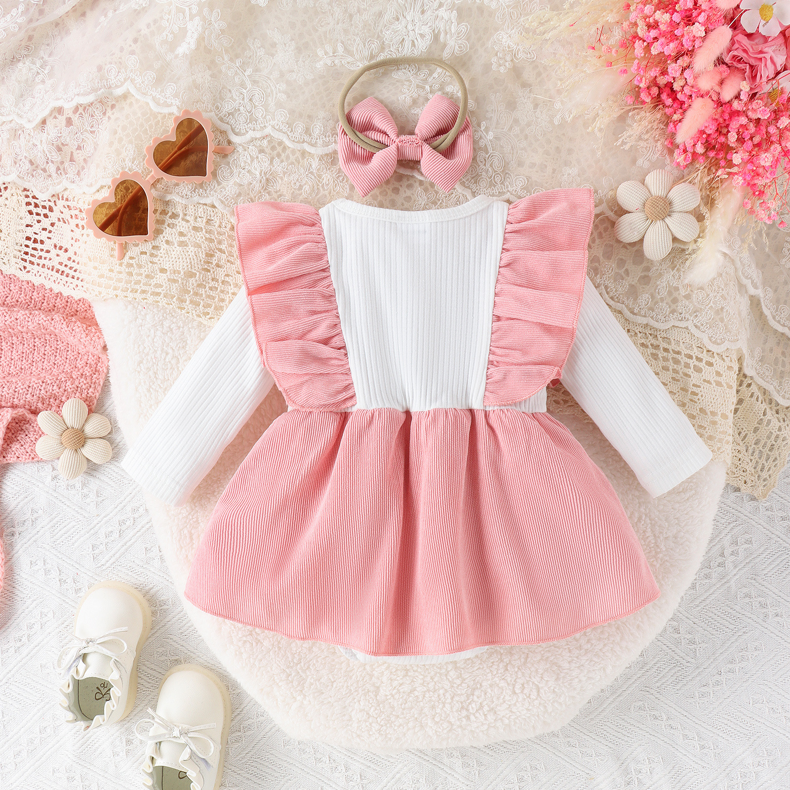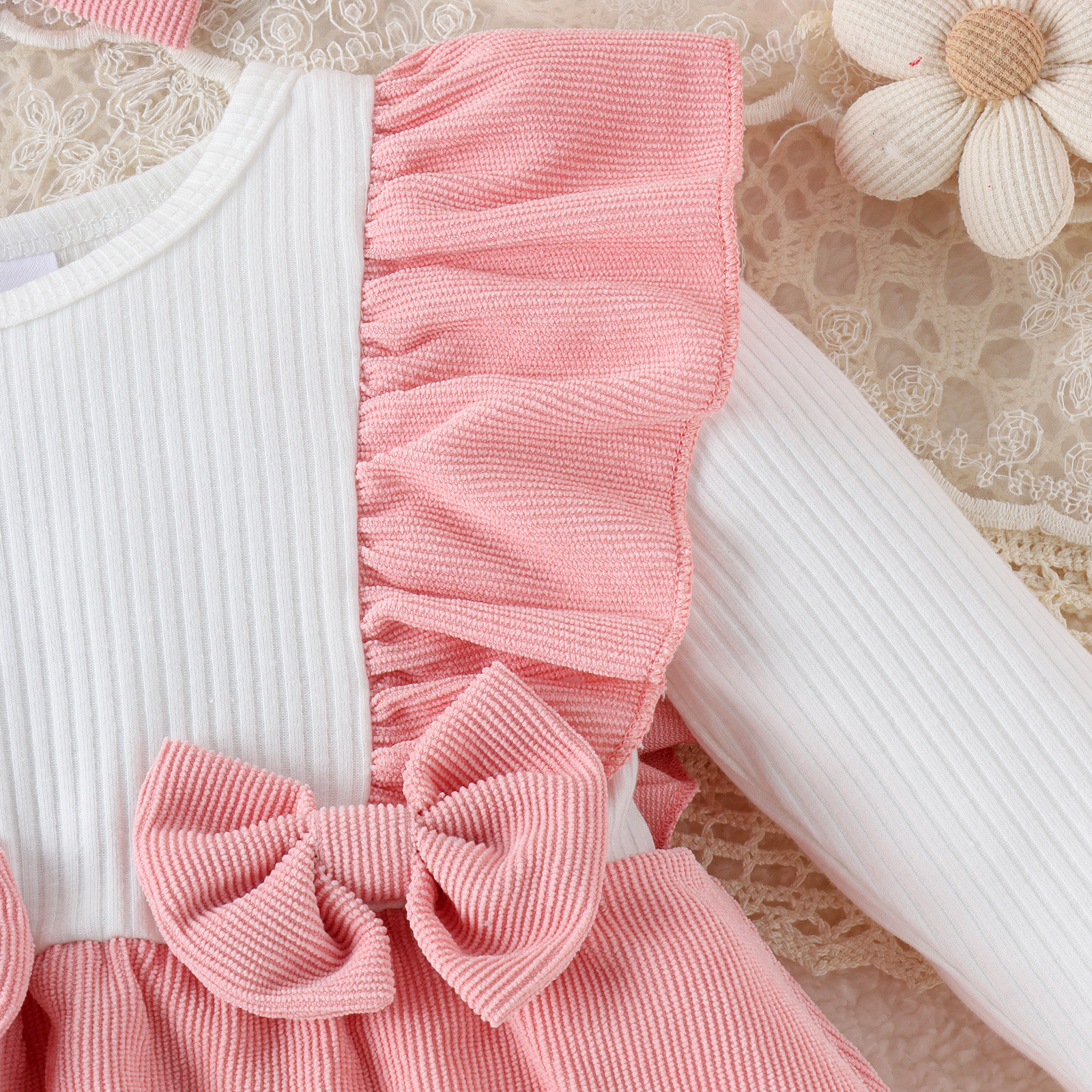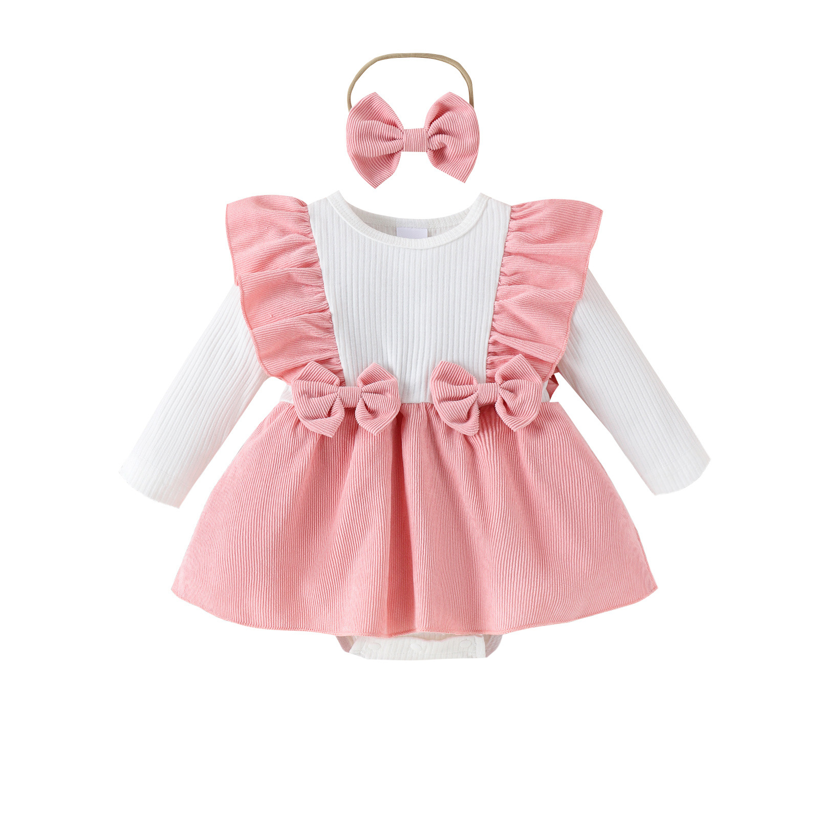 Baoxai 아동복 크로스 보더 가을과 겨울 새로운 피트 스트립 코듀로이 스커트 보우 하 옷 유아와 어린이를위한 달콤한 세트