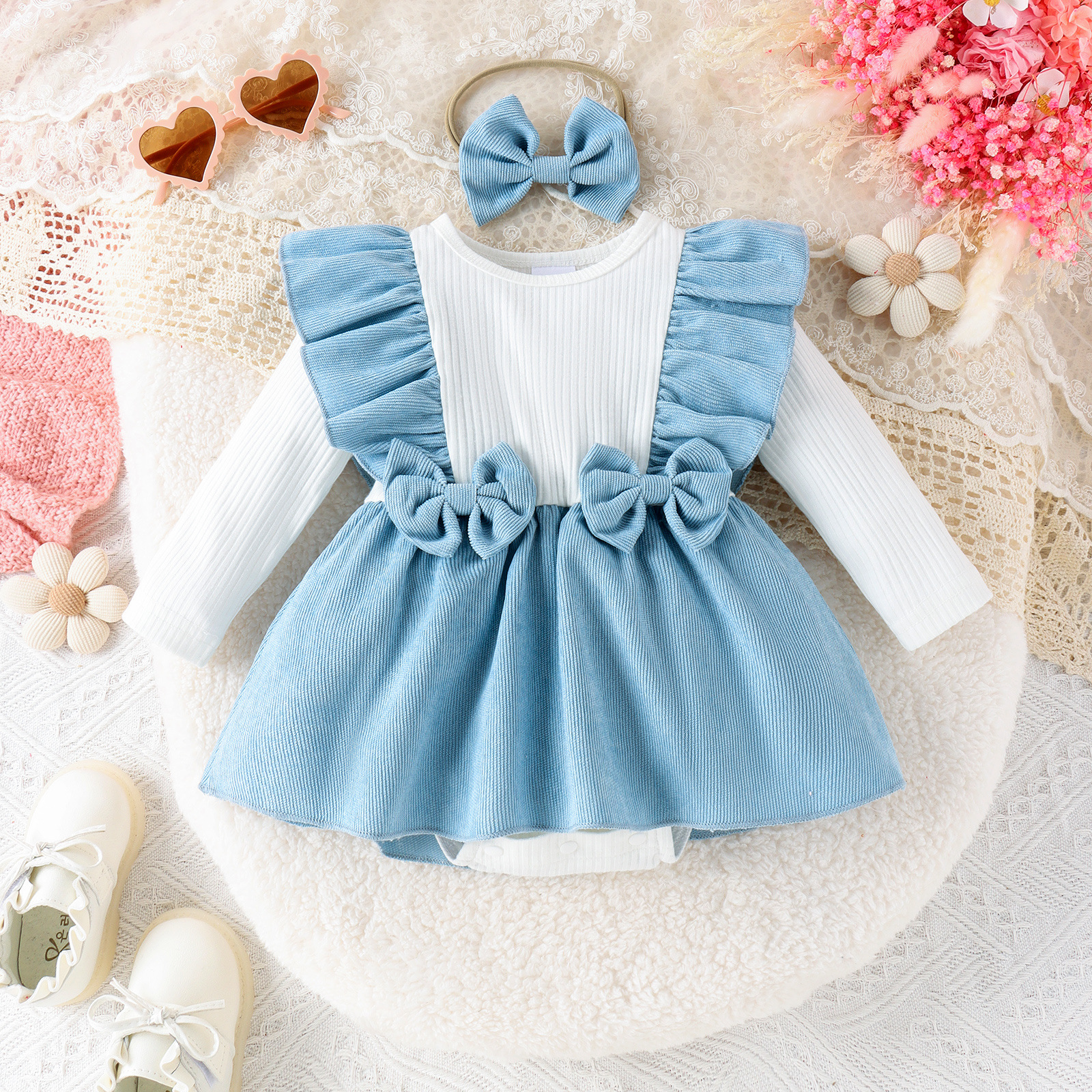 Baoxai 아동복 크로스 보더 가을과 겨울 새로운 피트 스트립 코듀로이 스커트 보우 하 옷 유아와 어린이를위한 달콤한 세트스토어 가기
