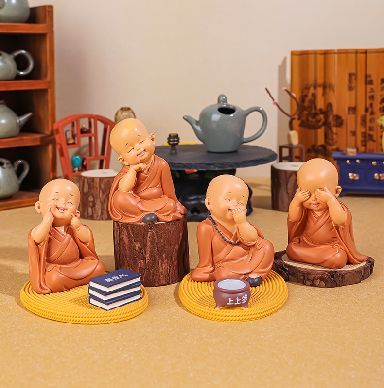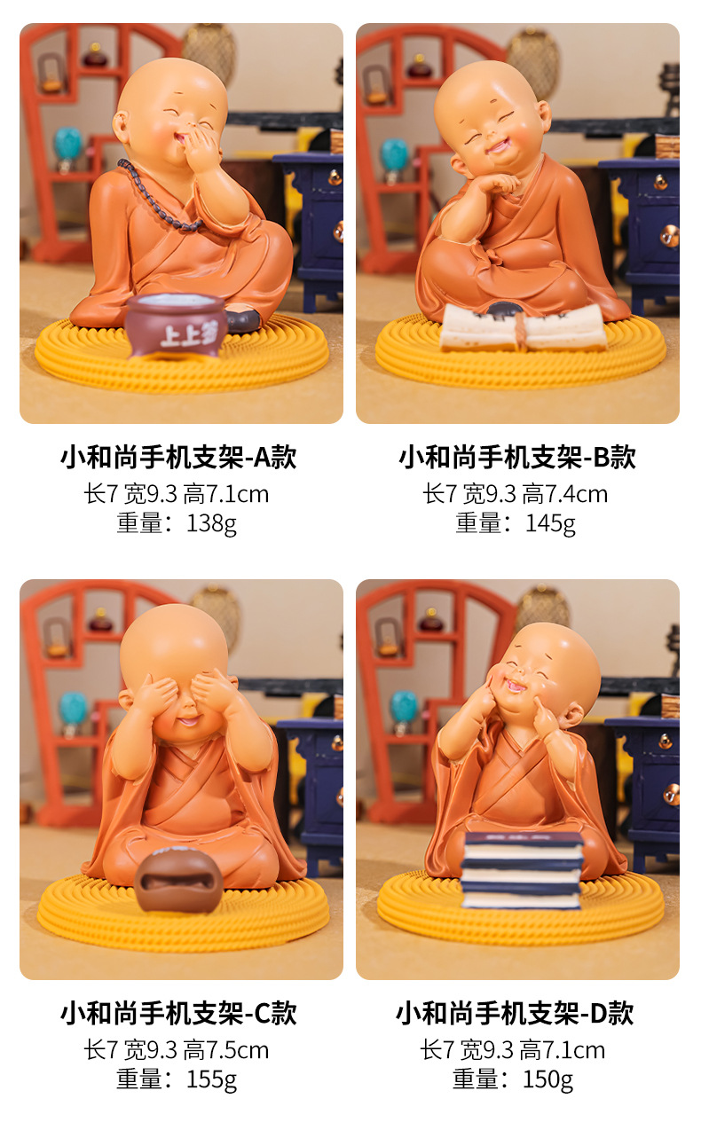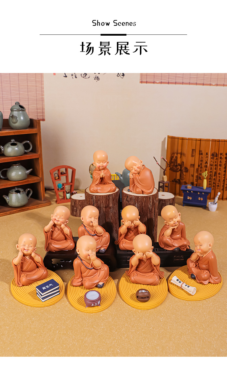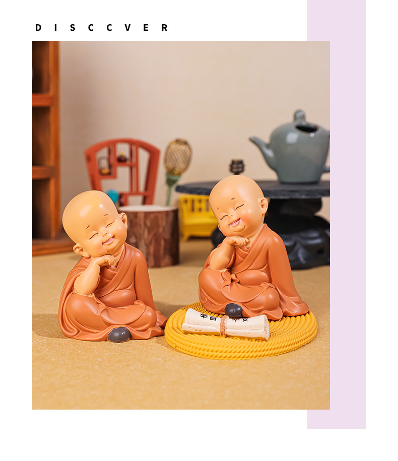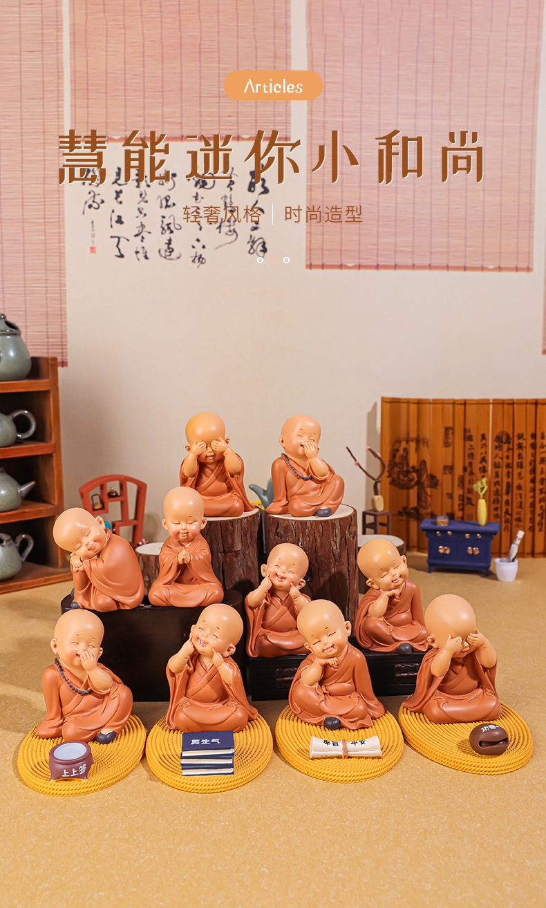 Huineng 미니 작은 수도사 귀여운 다기능 데스크탑 장식 장식품 창조적 인 자동차 장식 사원 선물