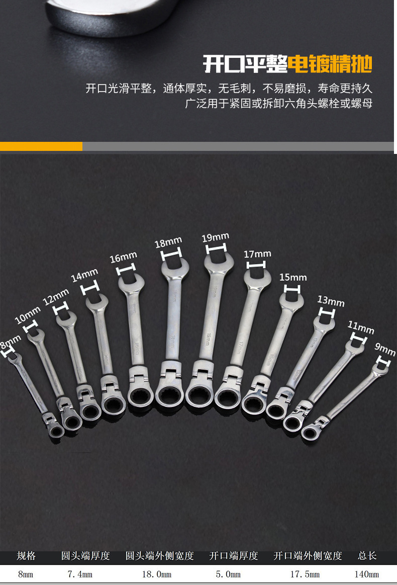 12pc 이중 목적 래칫 렌치 이동식 고정 헤드 자동 수리 도구 72 치아 12 피스 래칫 렌치 세트스토어 가기