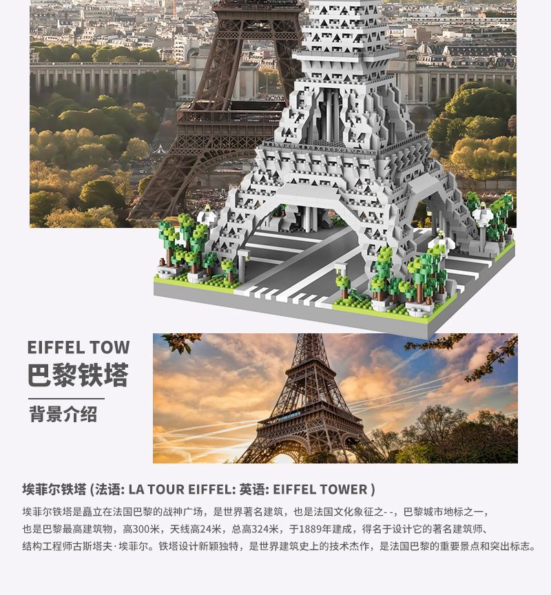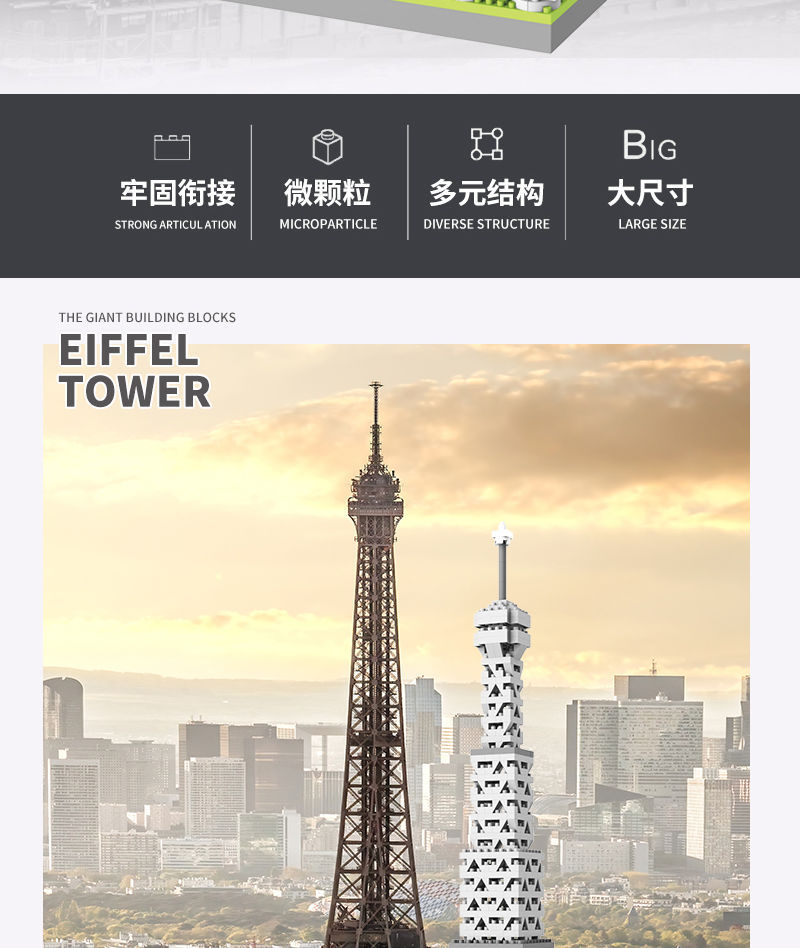 • 초대형 파리 타워 [20x20x42cm] + 조명 + 도구