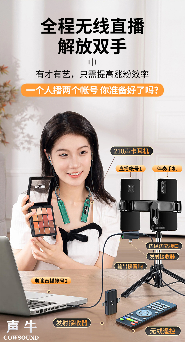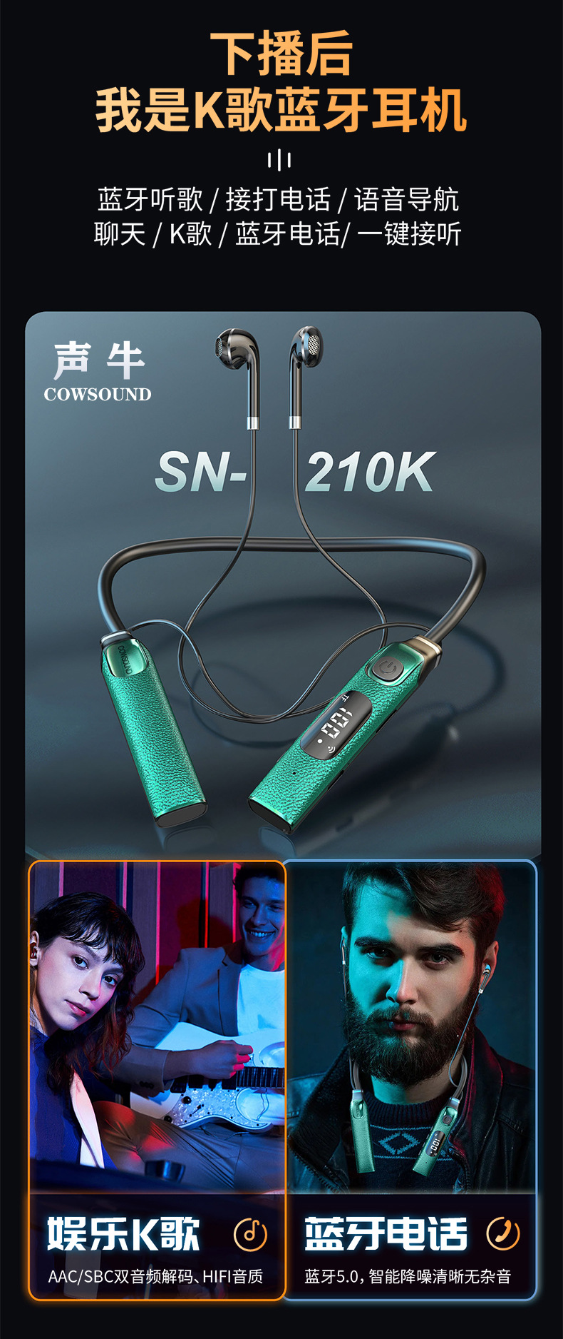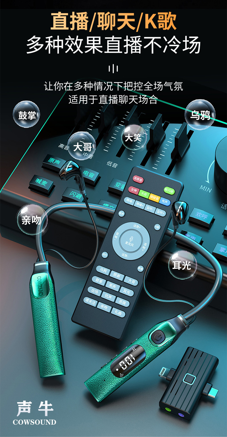 신제품 개인 맞춤형 넥밴드형 무선 라이브 사운드 카드 일체형 기기, 노래 녹음용 헤드폰, 야외 음향 보정 및 소음 감소 기능 탑재