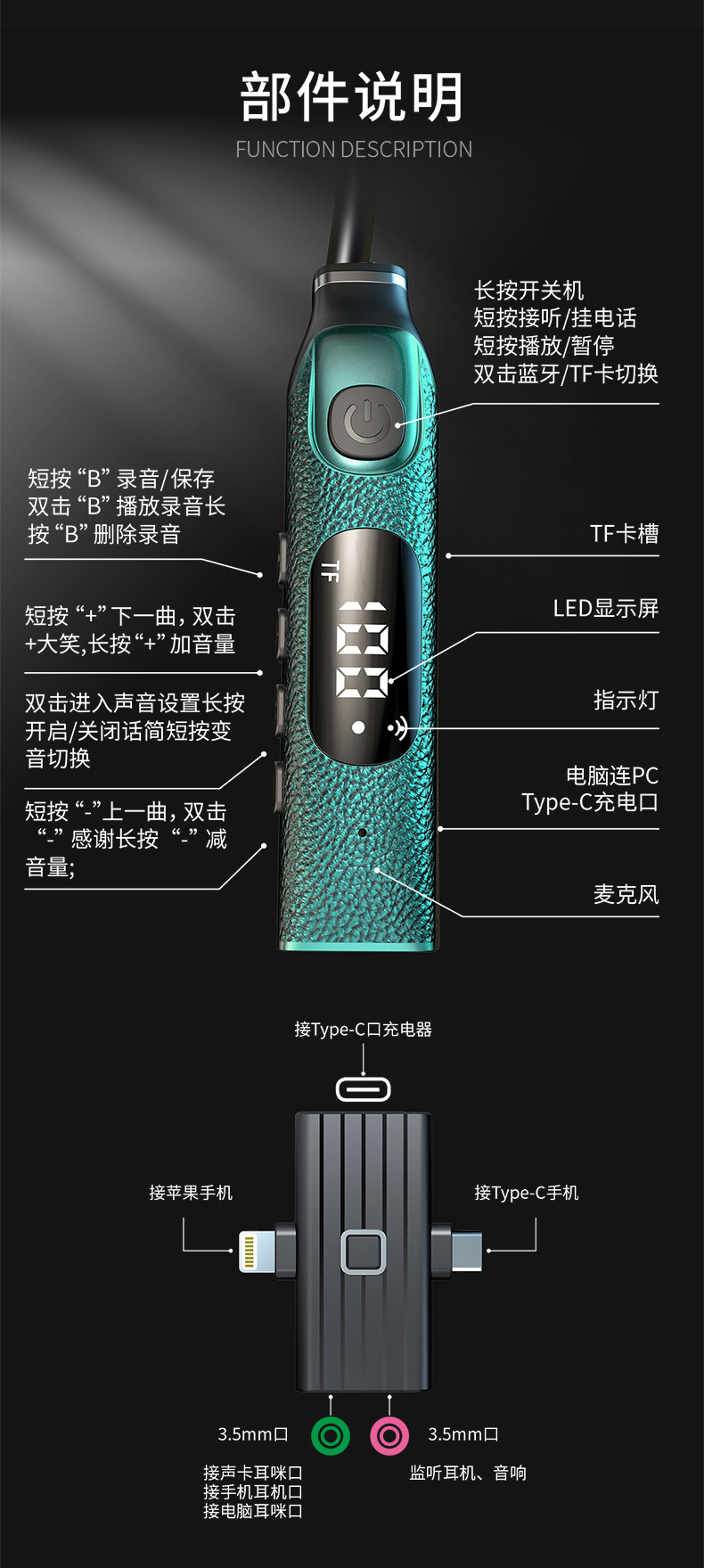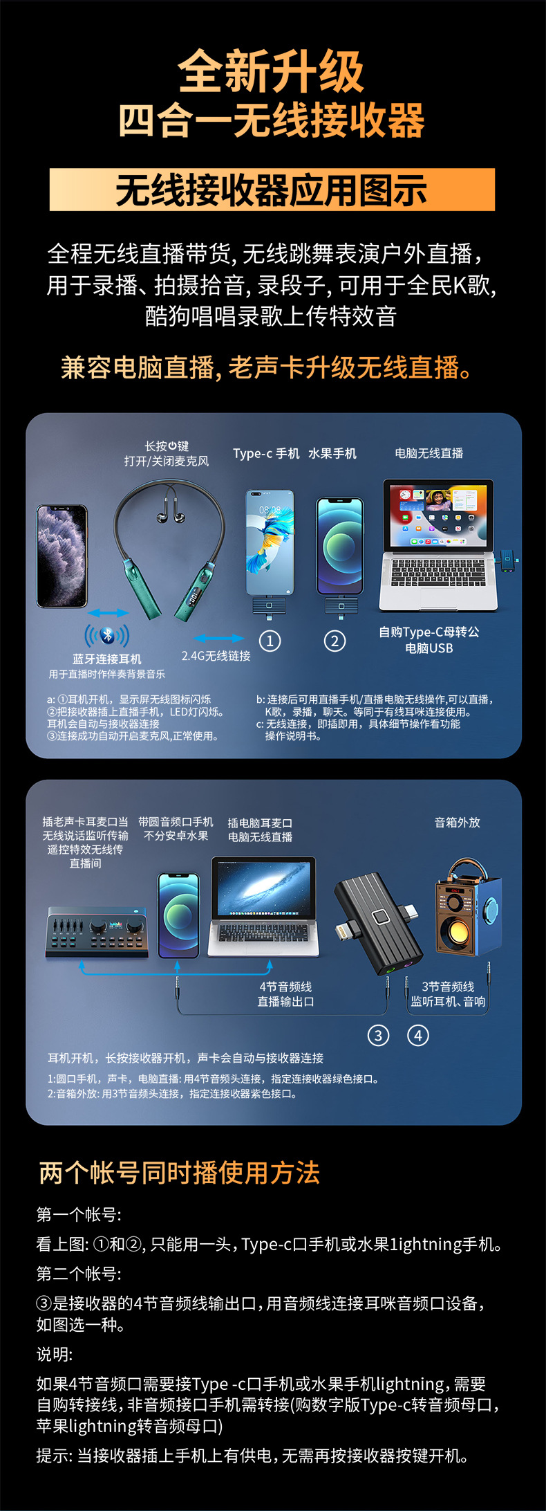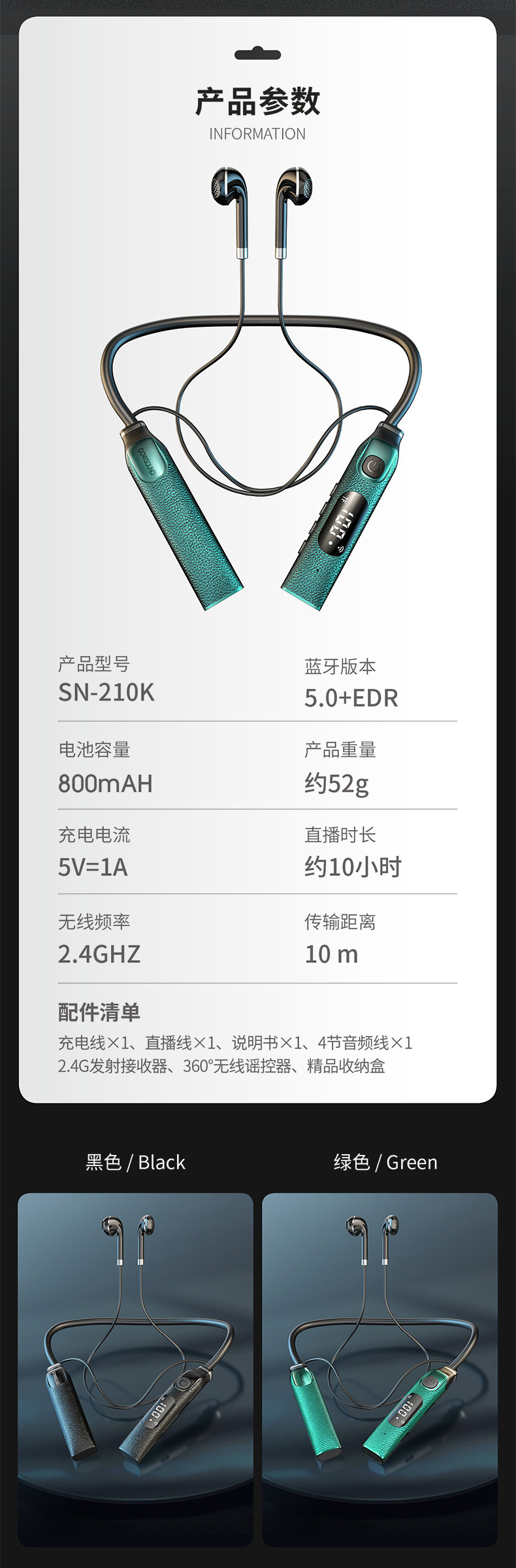 신제품 개인 맞춤형 넥밴드형 무선 라이브 사운드 카드 일체형 기기, 노래 녹음용 헤드폰, 야외 음향 보정 및 소음 감소 기능 탑재