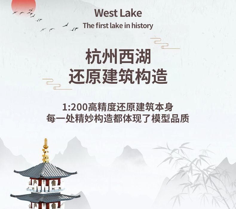 조립식 건축물 항저우 서호 모형 장식품 레고 블록과 호환 어린이 수공예 장난감 선물 서호 문화창조스토어 가기