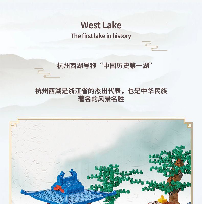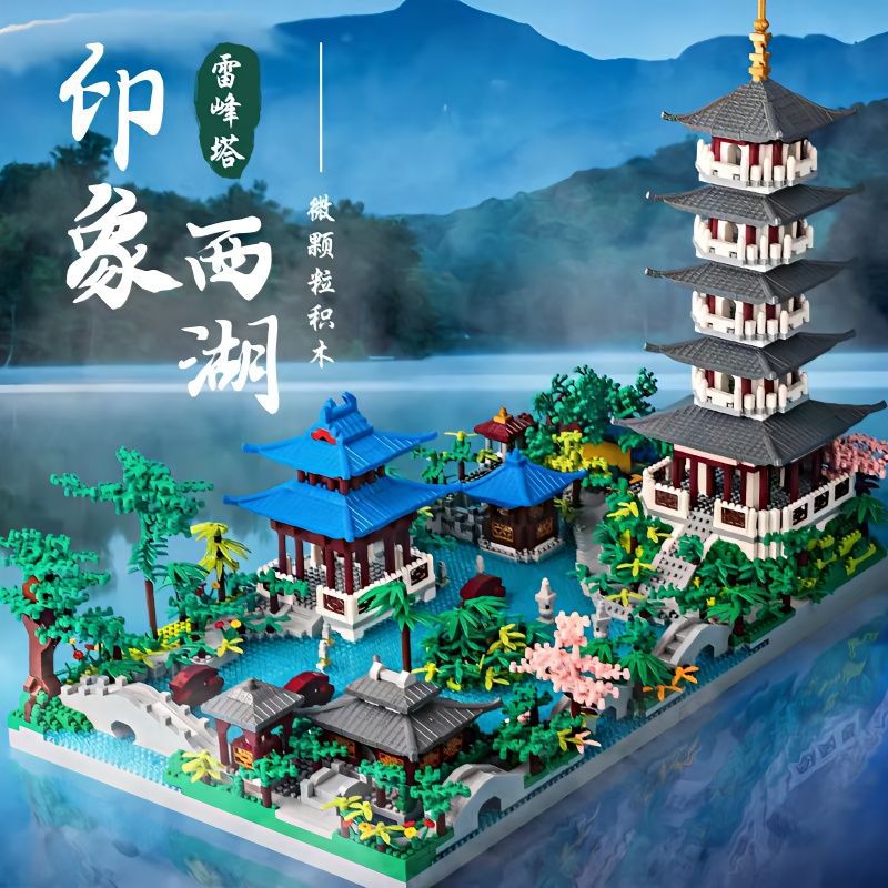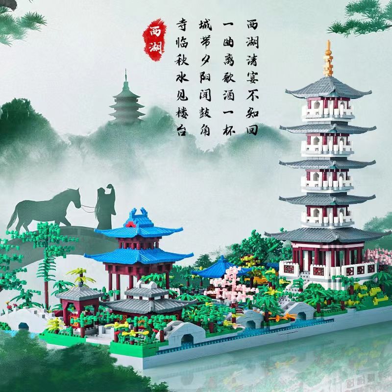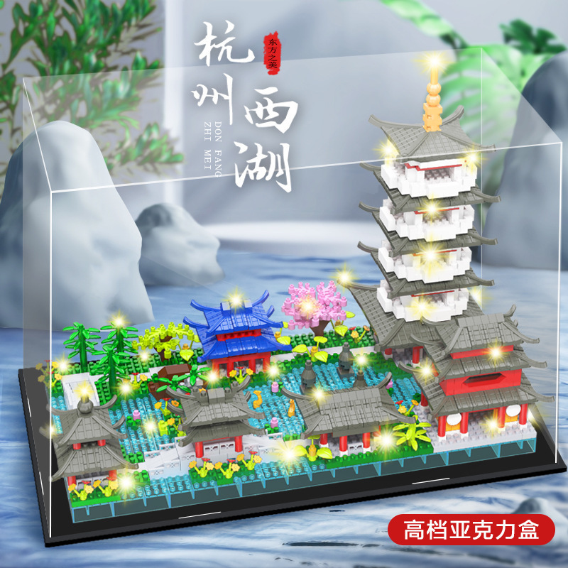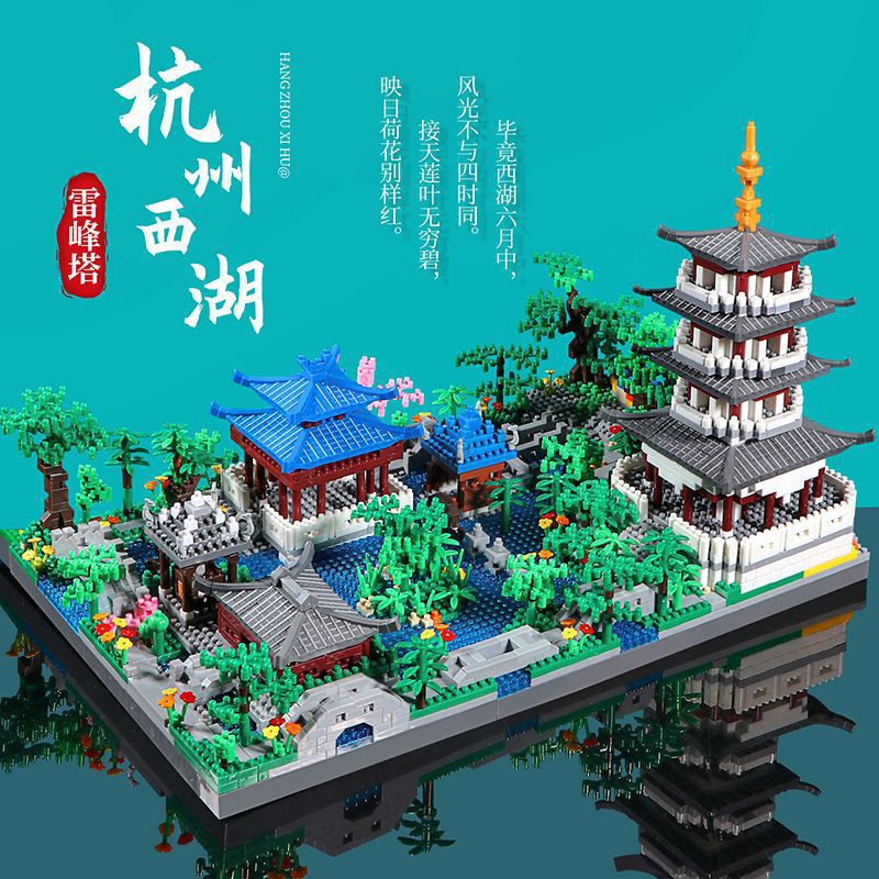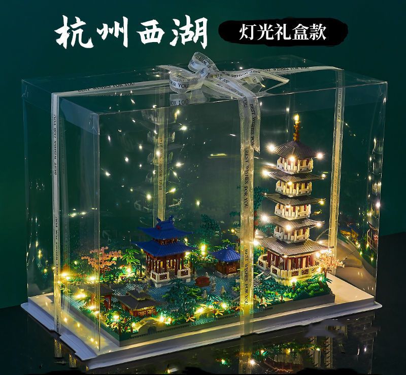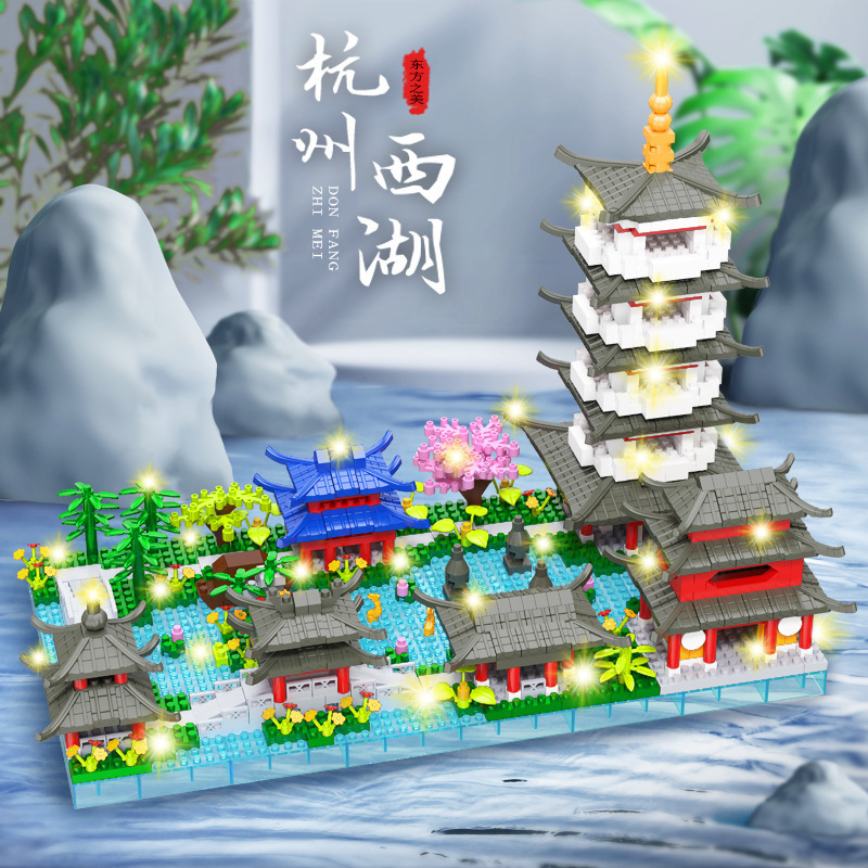 조립식 건축물 항저우 서호 모형 장식품 레고 블록과 호환 어린이 수공예 장난감 선물 서호 문화창조