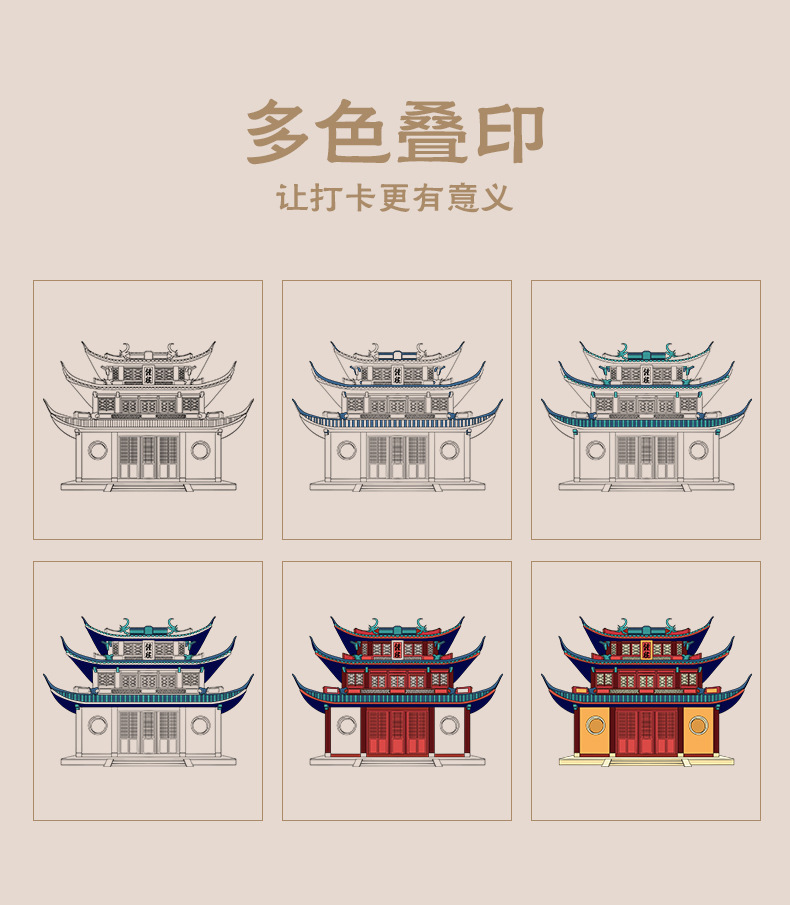 관광 명소 멀티 컬러 인쇄 시계 인감 랜드 마크 컬러 컬렉션 씰 정원 인쇄 문화 관광 명승지 문화 혁신스토어 가기