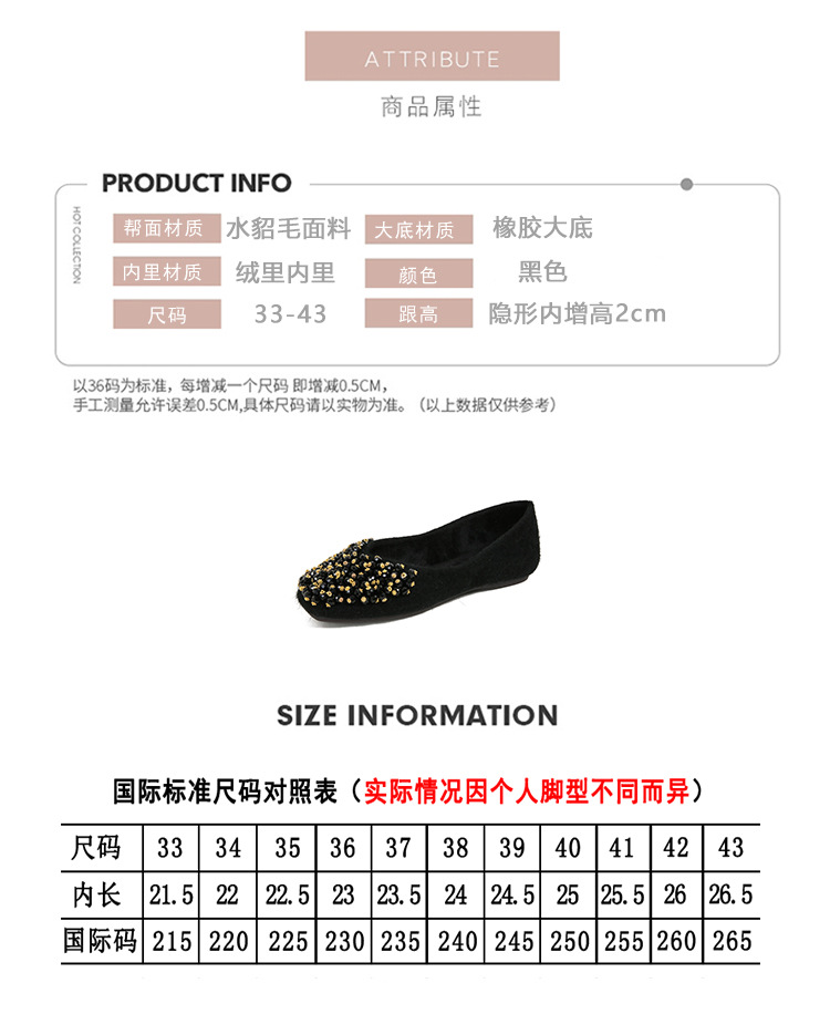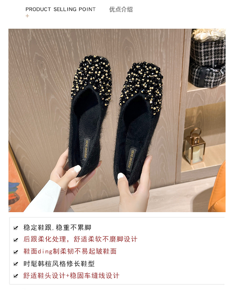 여성을위한 기모 정사각형 발가락 싱글 레이어 신발 2023 겨울 새로운 토드 신발 숨겨진 높이 여성 신발 여성용 수제 구슬 신발 모피 신발스토어 가기