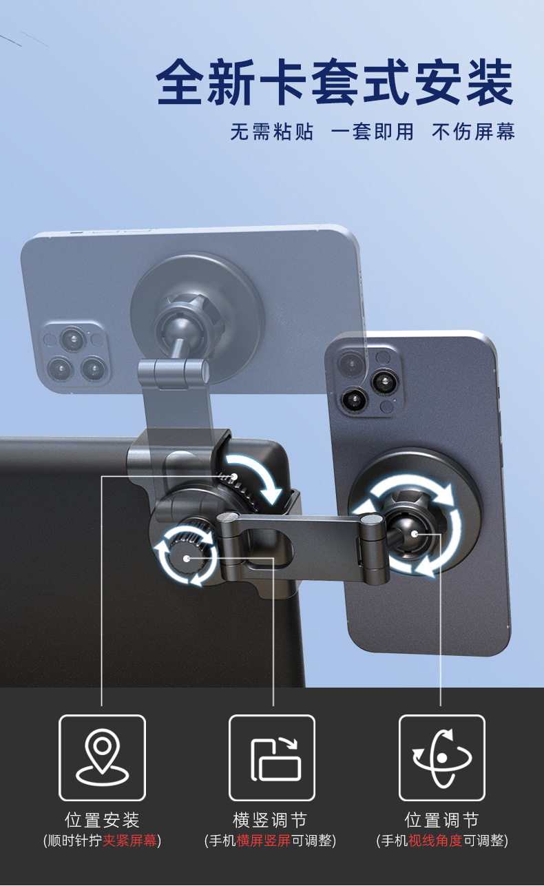 • TSL 클램프 스크린 접이식 숨겨진 자기 브래킷 (무선 충전)