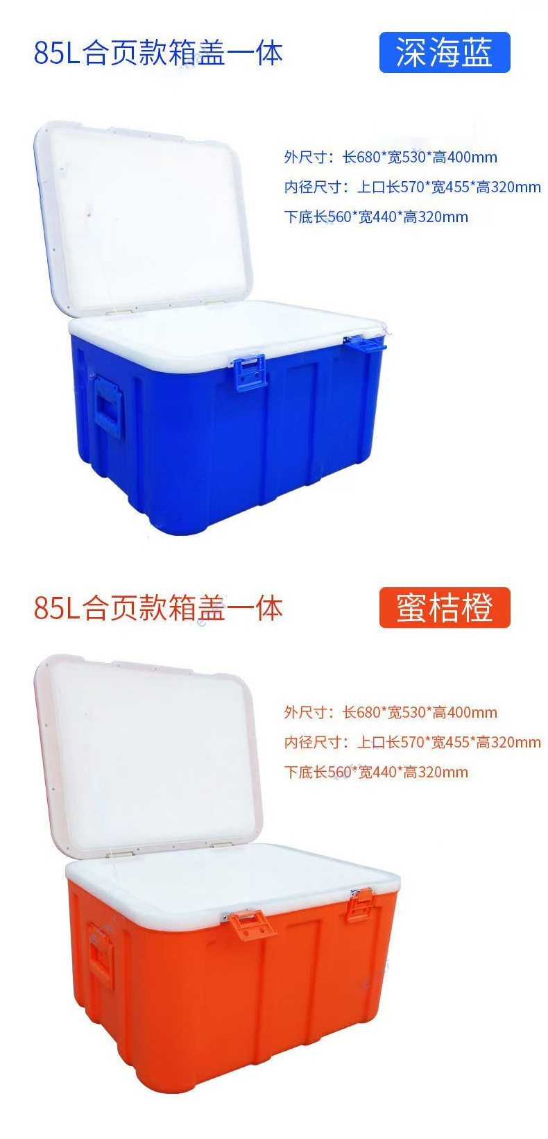 • 오렌지색 85L 힌지형 일체형 상자 뚜껑