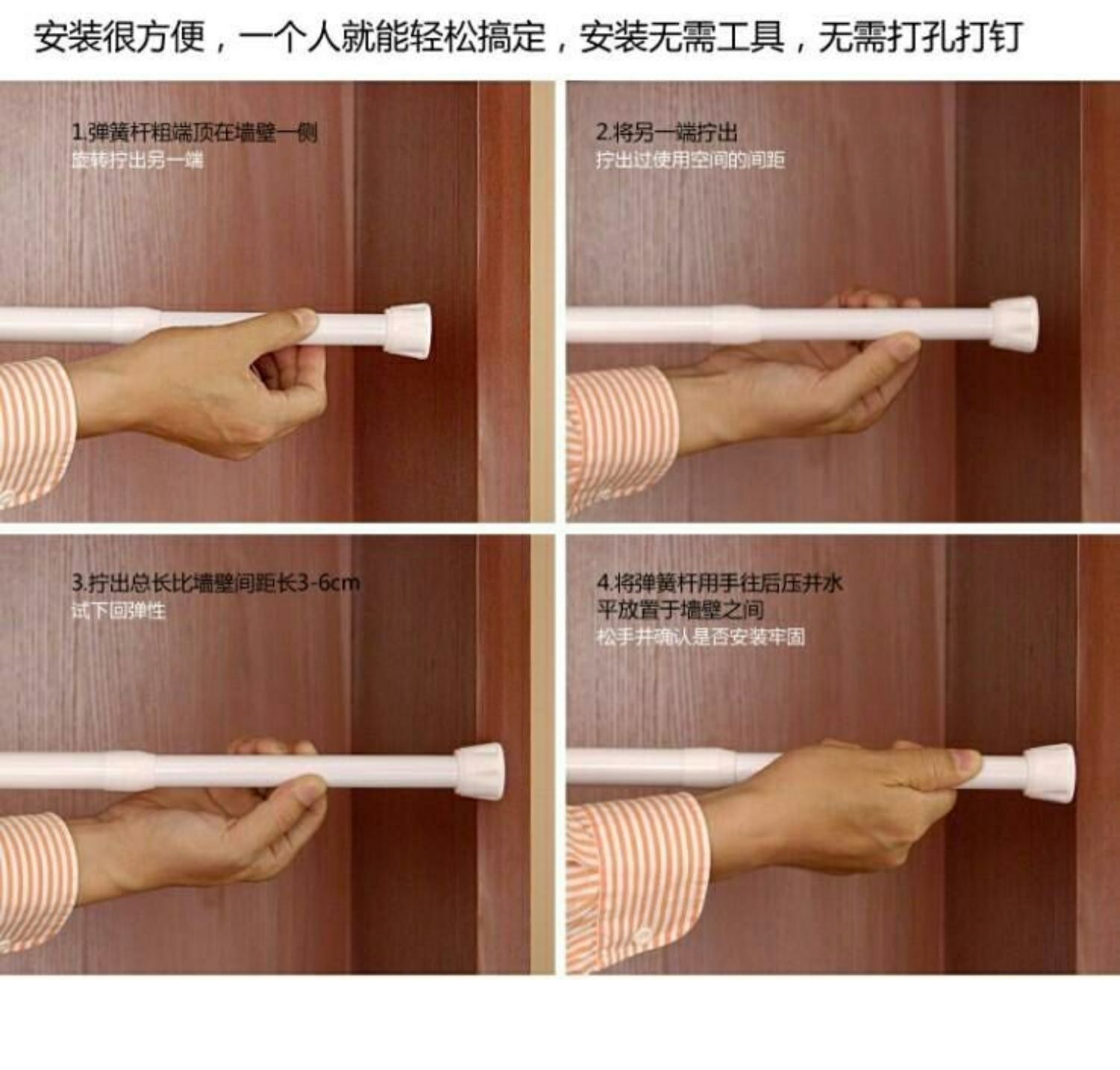 간단한 텔레스코픽로드 화이트 페인트 스프링 탄성 비 천공 스크린 커튼 커튼 봉 풀로드 도어 커튼 반 커튼 액세서리 단순스토어 가기