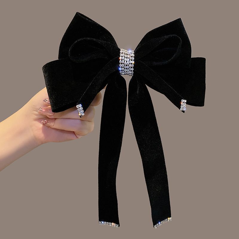 일본과 한국 스타일의 가벼운 럭셔리 플래시 다이아몬드 하이 엔드 보우 술 벨벳 헤어핀 여성의 가을 겨울 머리 머리 액세서리 탑 클립 새로운 패션