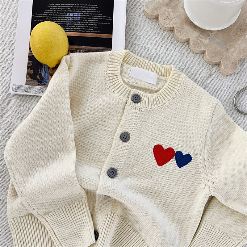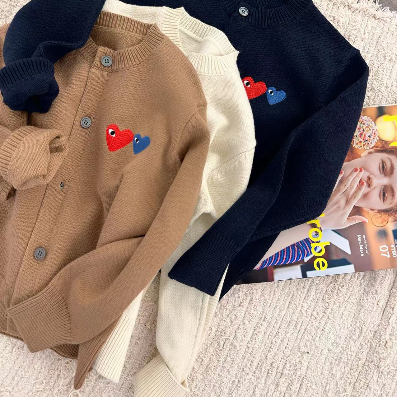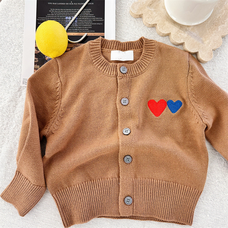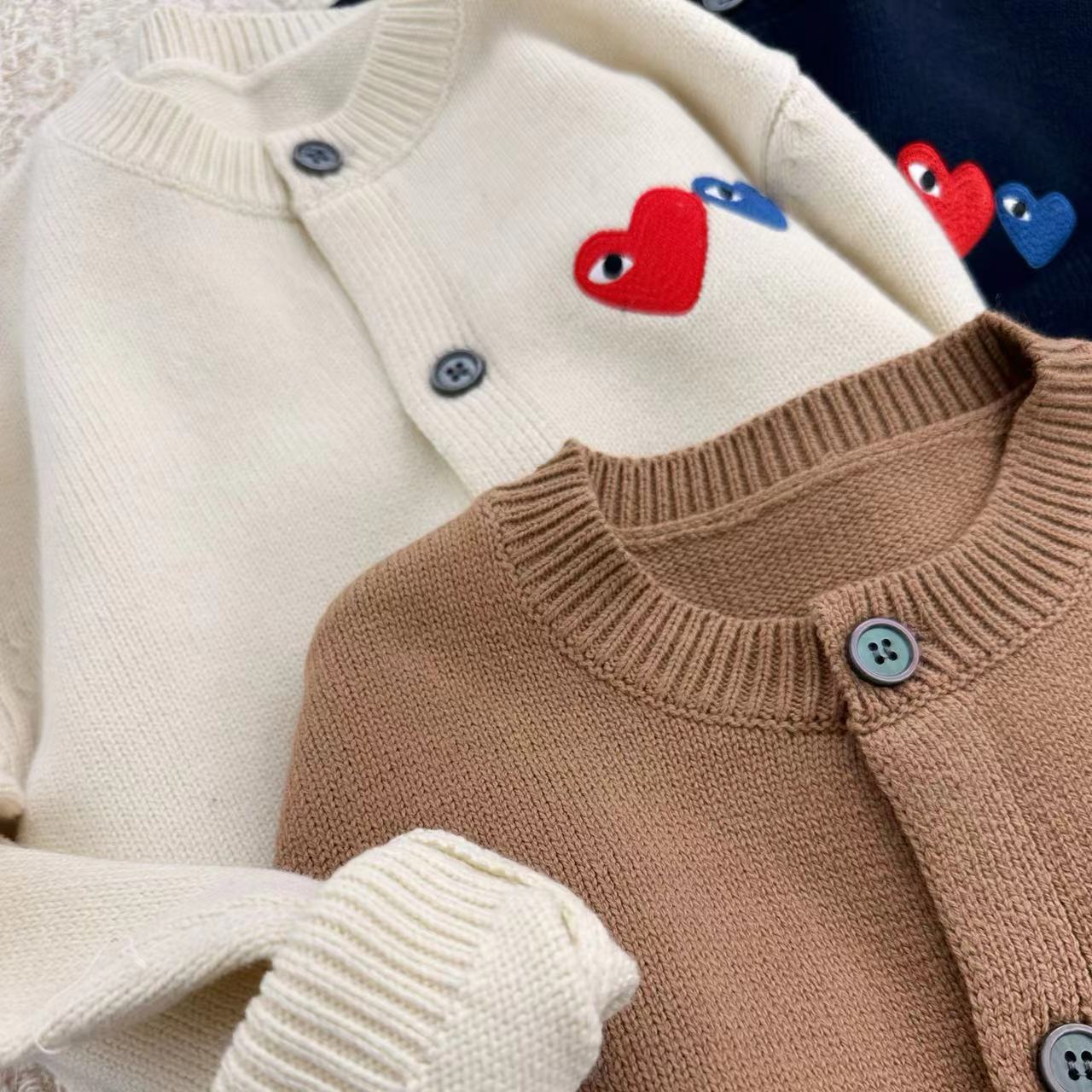 2024 봄 어린이 단색 수 놓은 니트 카디건 소년과 소녀 부모-자식 사랑 긴팔 멀티 컬러 스웨터