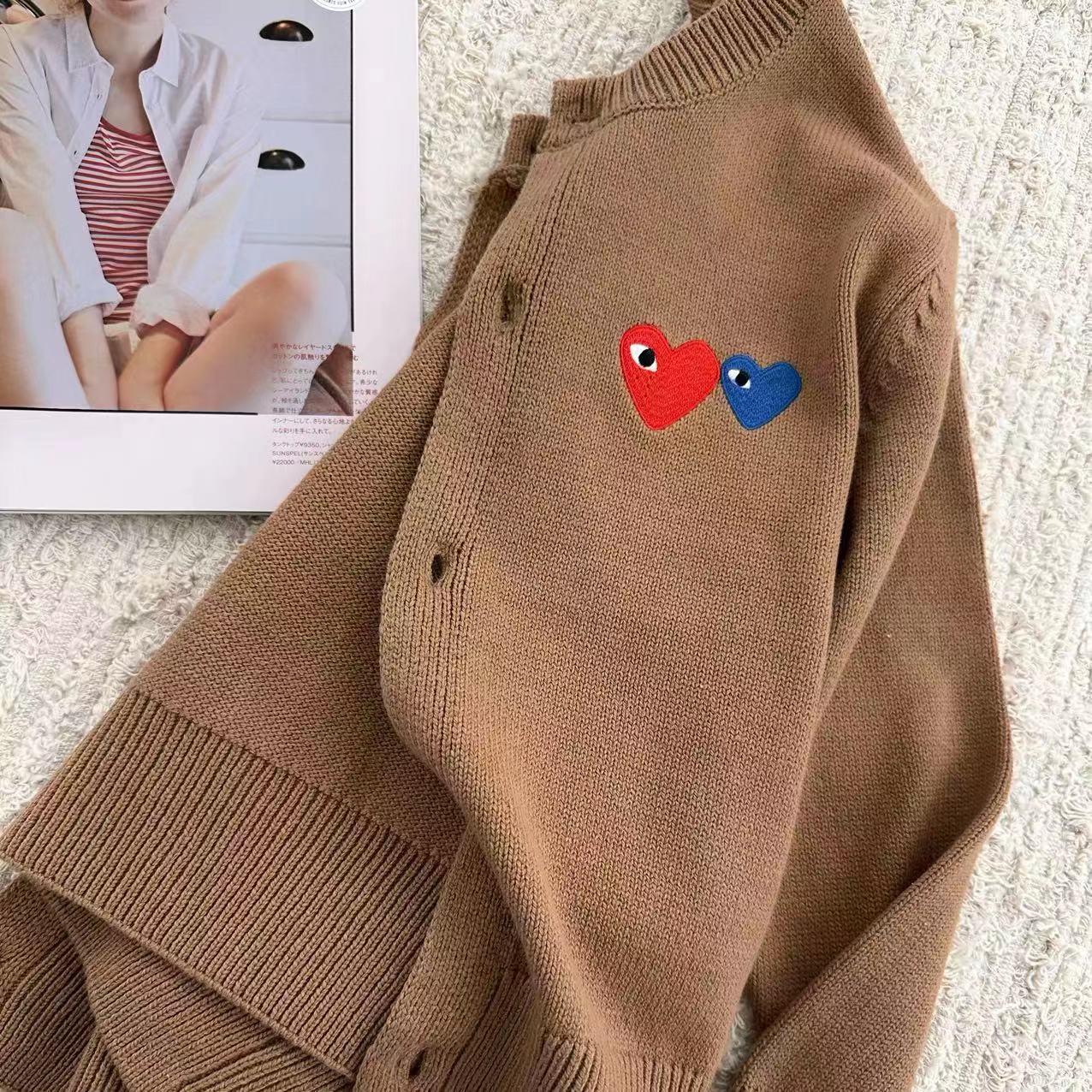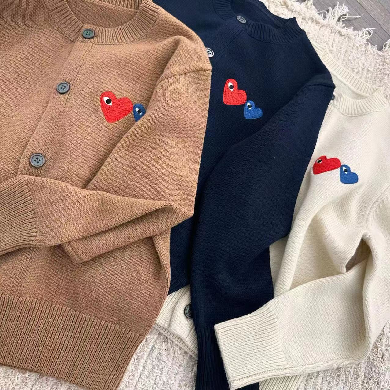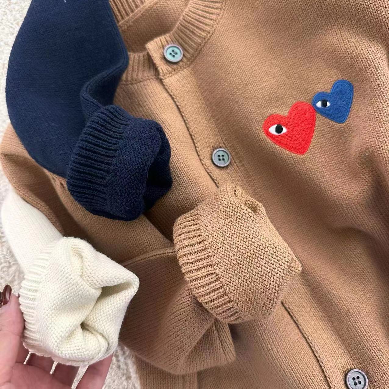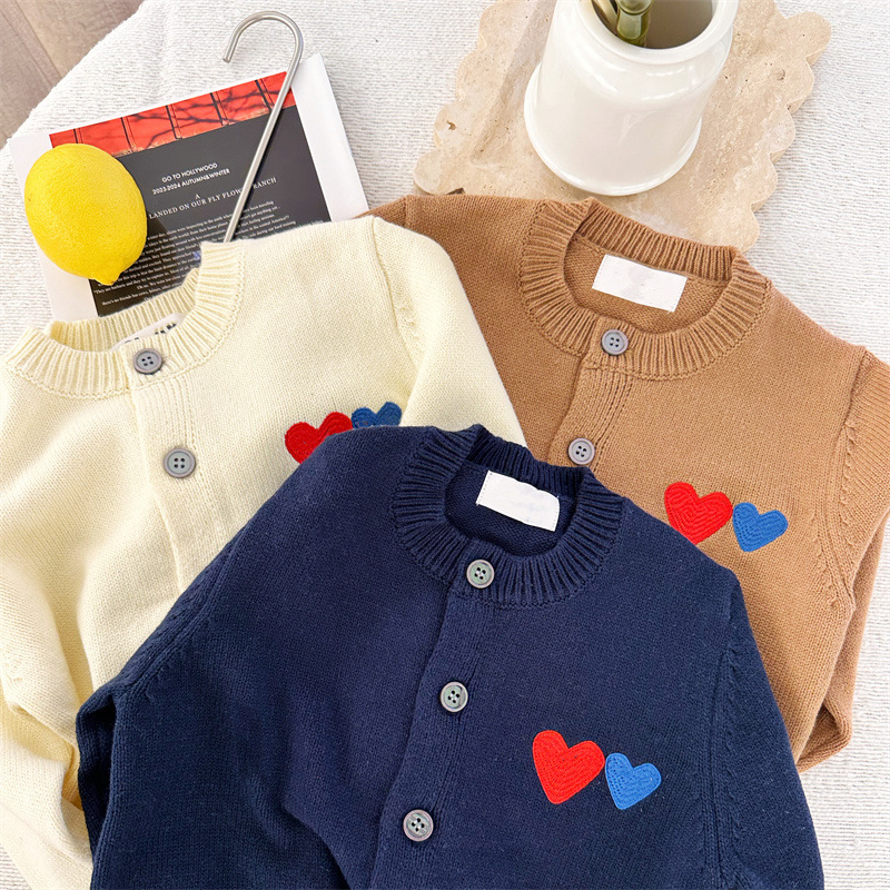 2024 봄 어린이 단색 수 놓은 니트 카디건 소년과 소녀 부모-자식 사랑 긴팔 멀티 컬러 스웨터