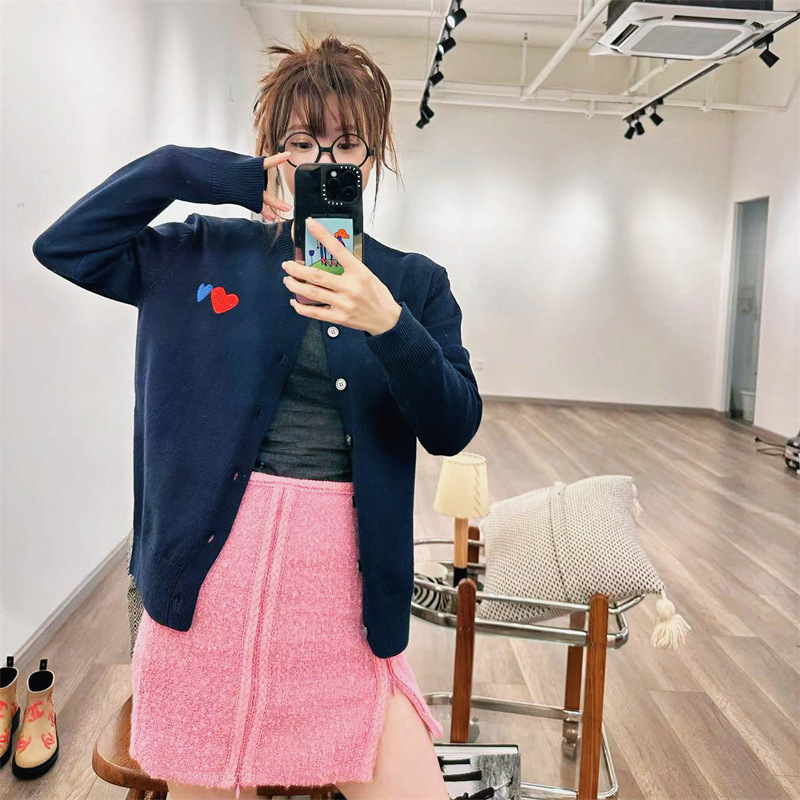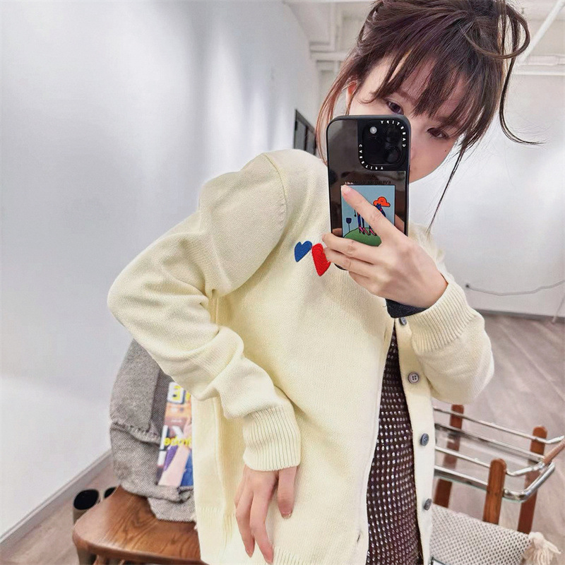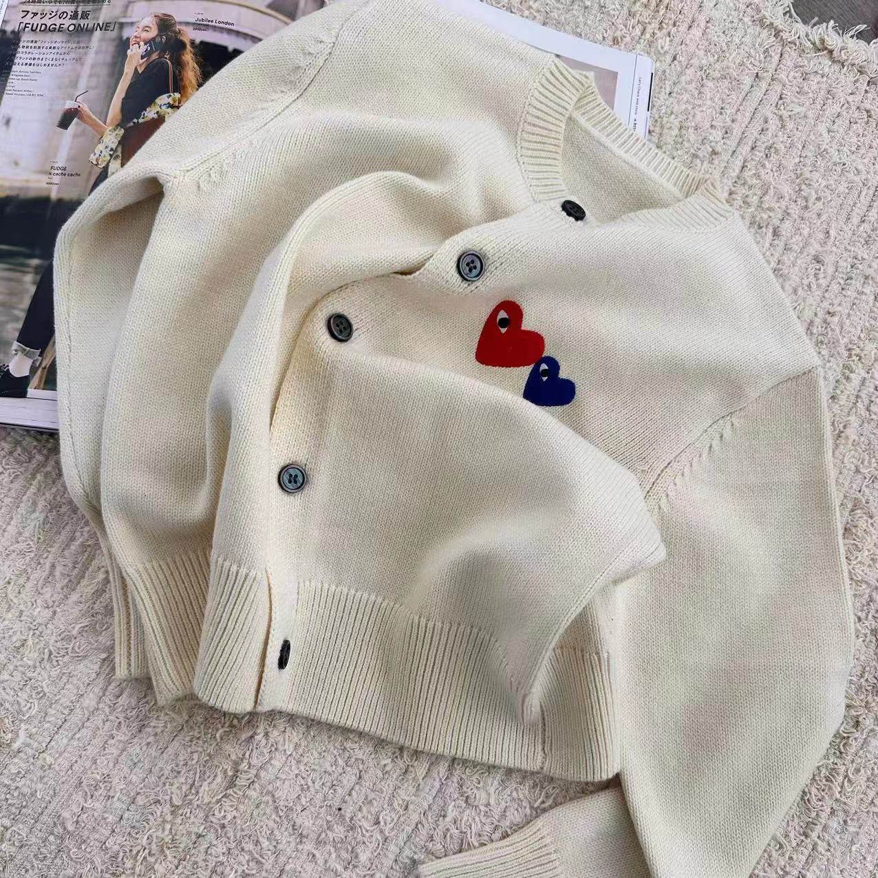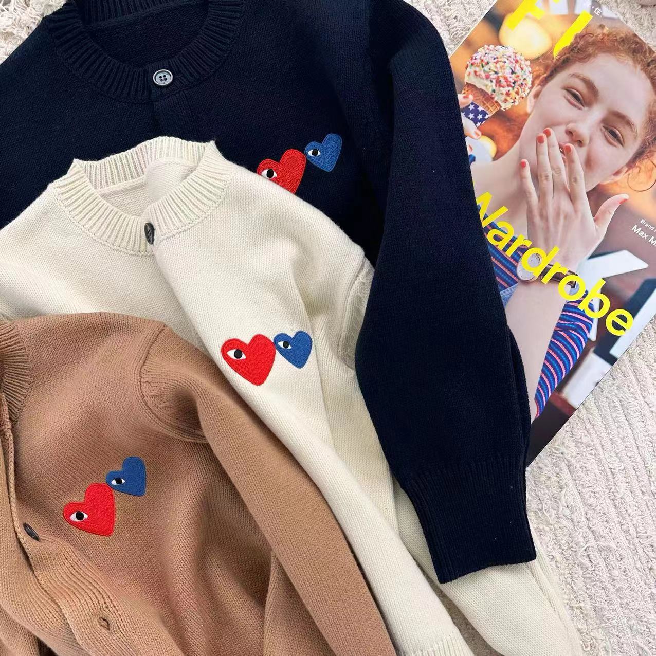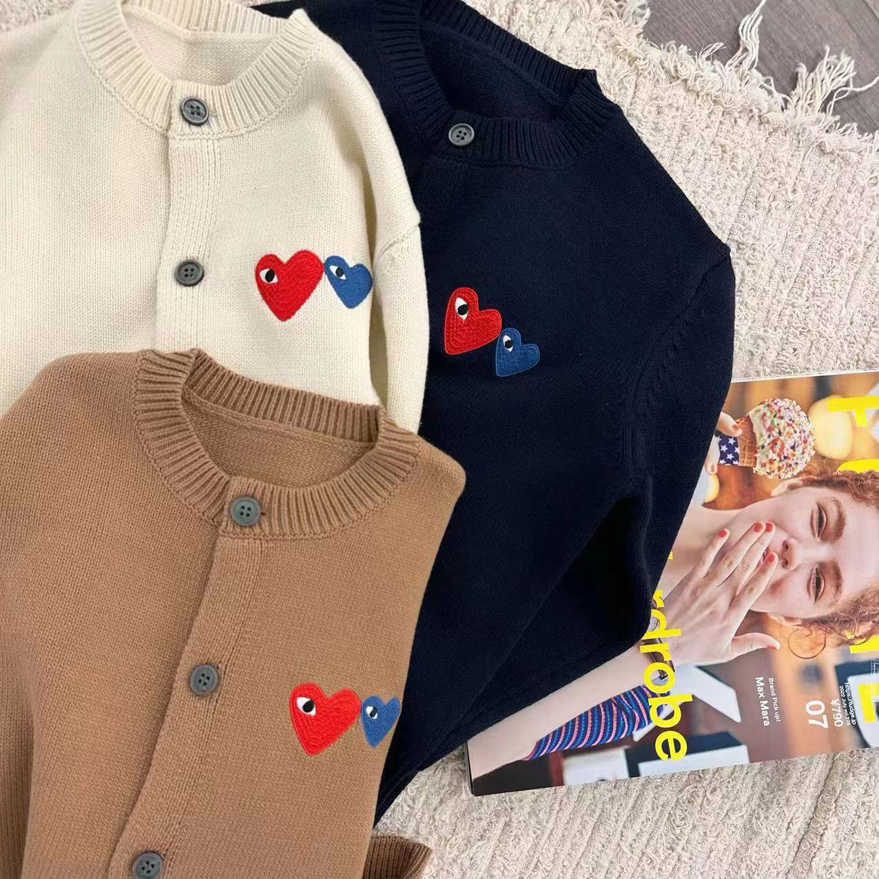 2024 봄 어린이 단색 수 놓은 니트 카디건 소년과 소녀 부모-자식 사랑 긴팔 멀티 컬러 스웨터스토어 가기
