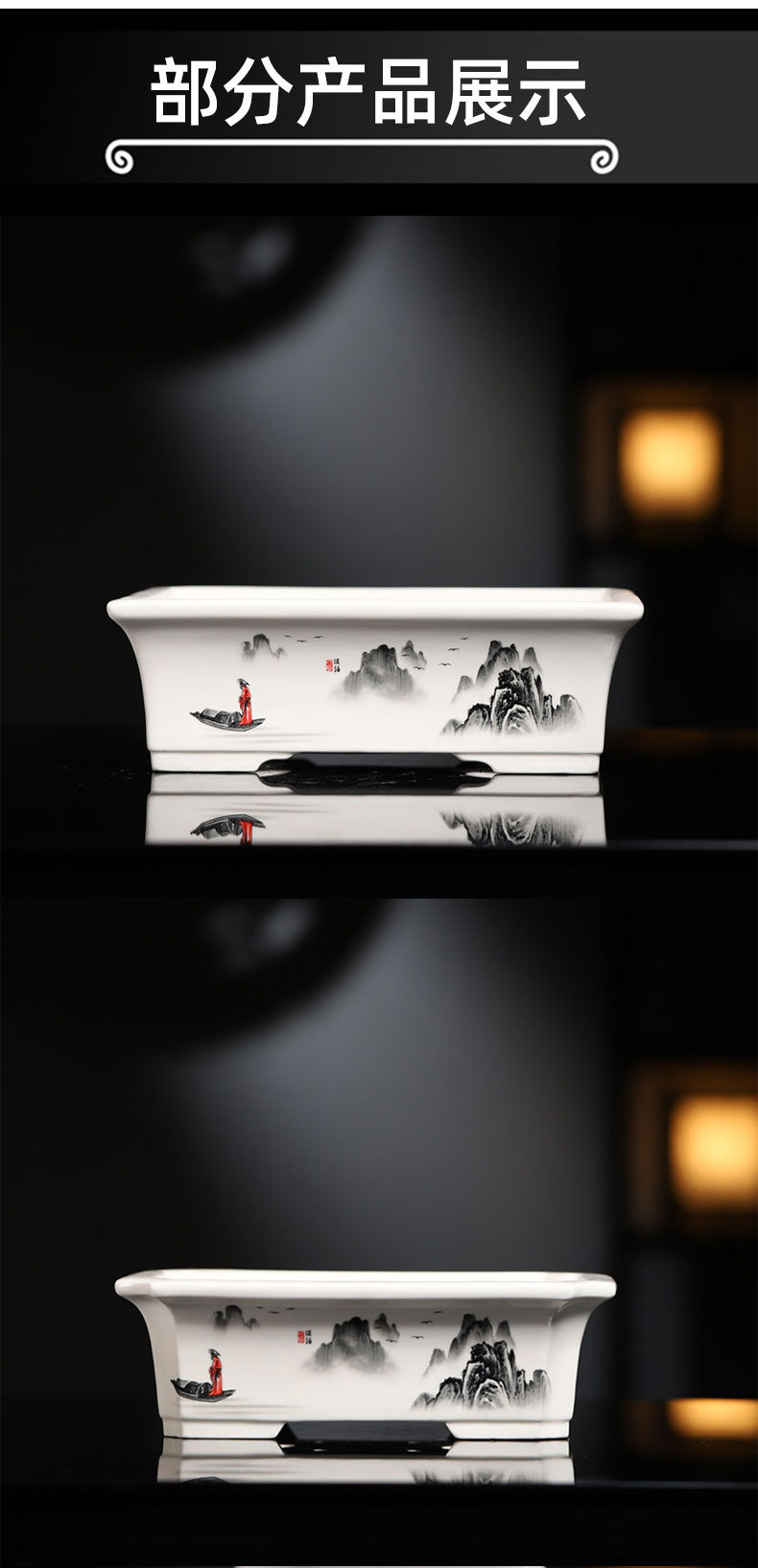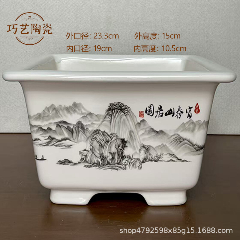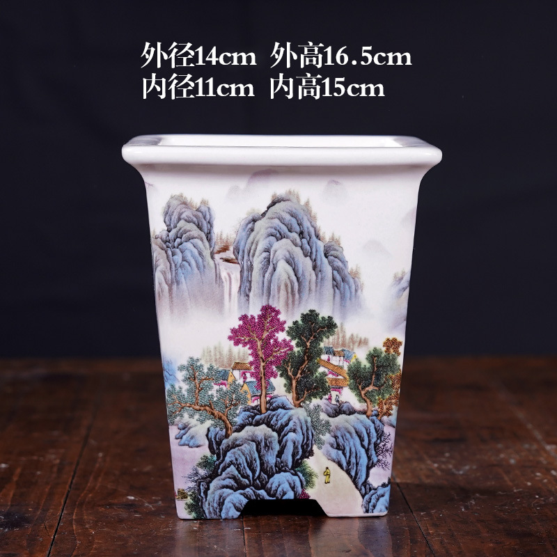 부티크 보라색 모래 화분 세라믹 직사각형 대형 화분 도매 잉크 풍경화 풍경 냄비 New스토어 가기