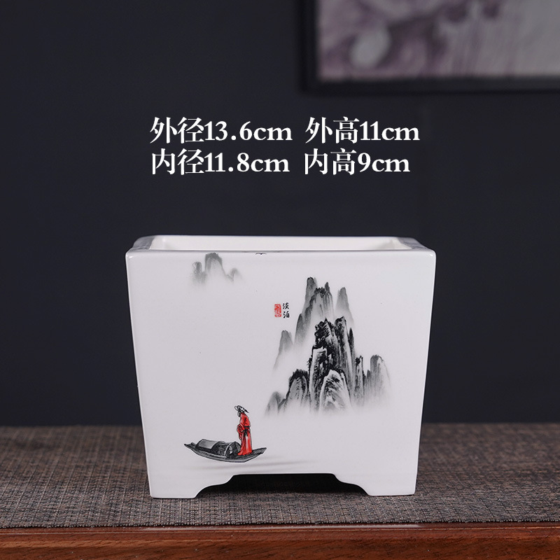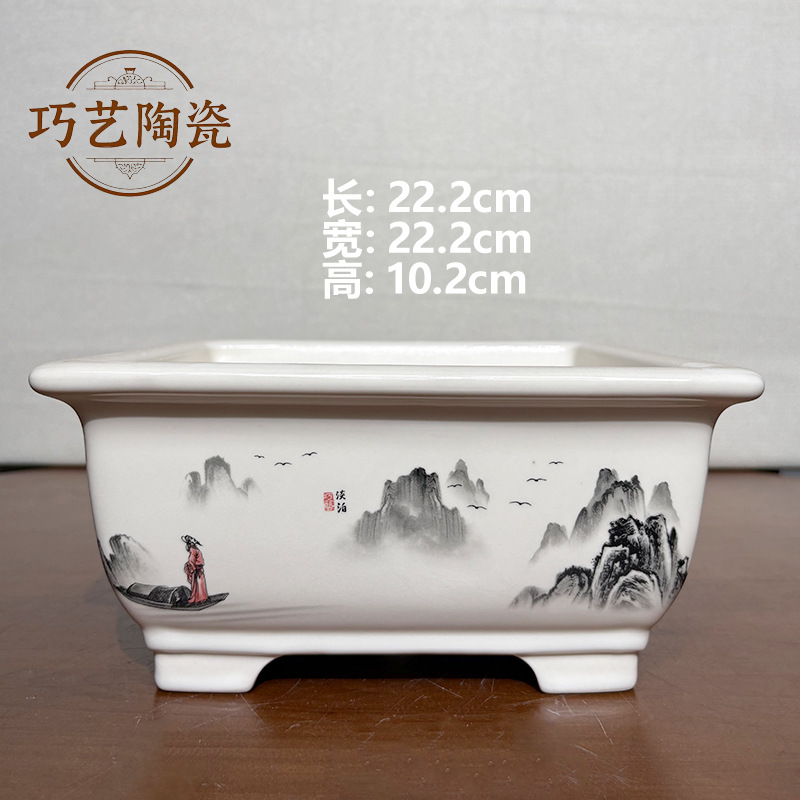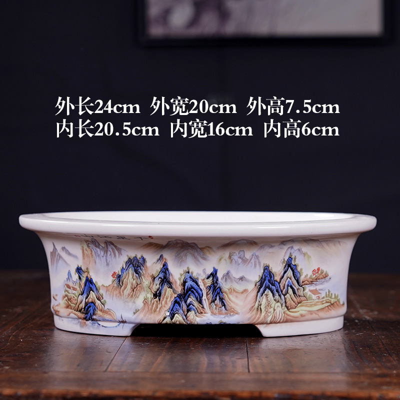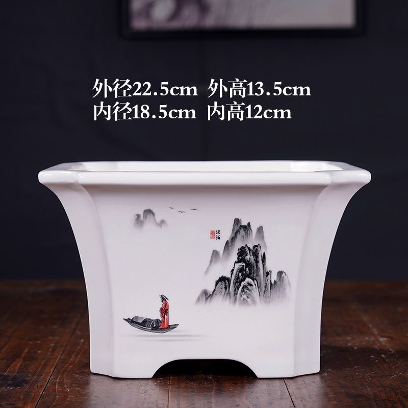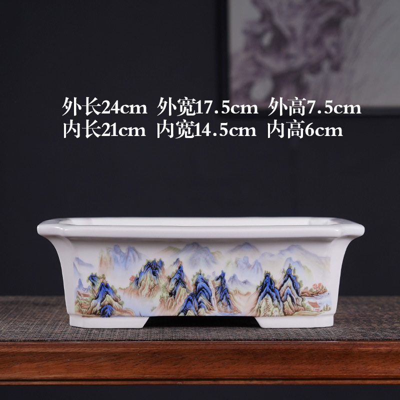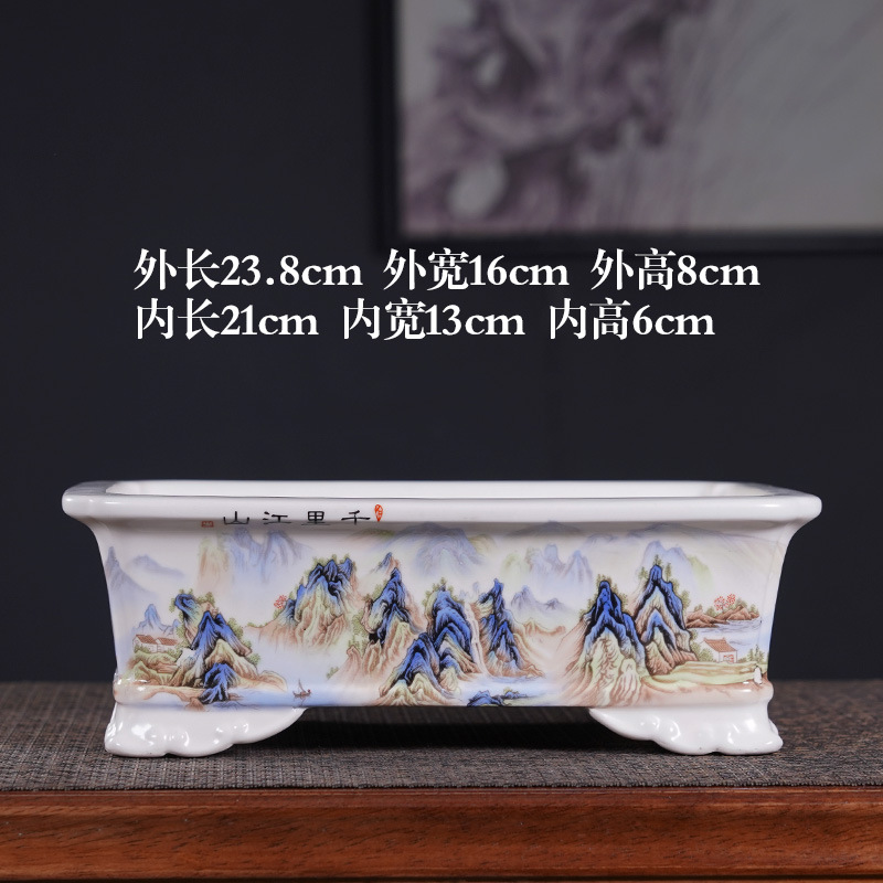 부티크 보라색 모래 화분 세라믹 직사각형 대형 화분 도매 잉크 풍경화 풍경 냄비 New