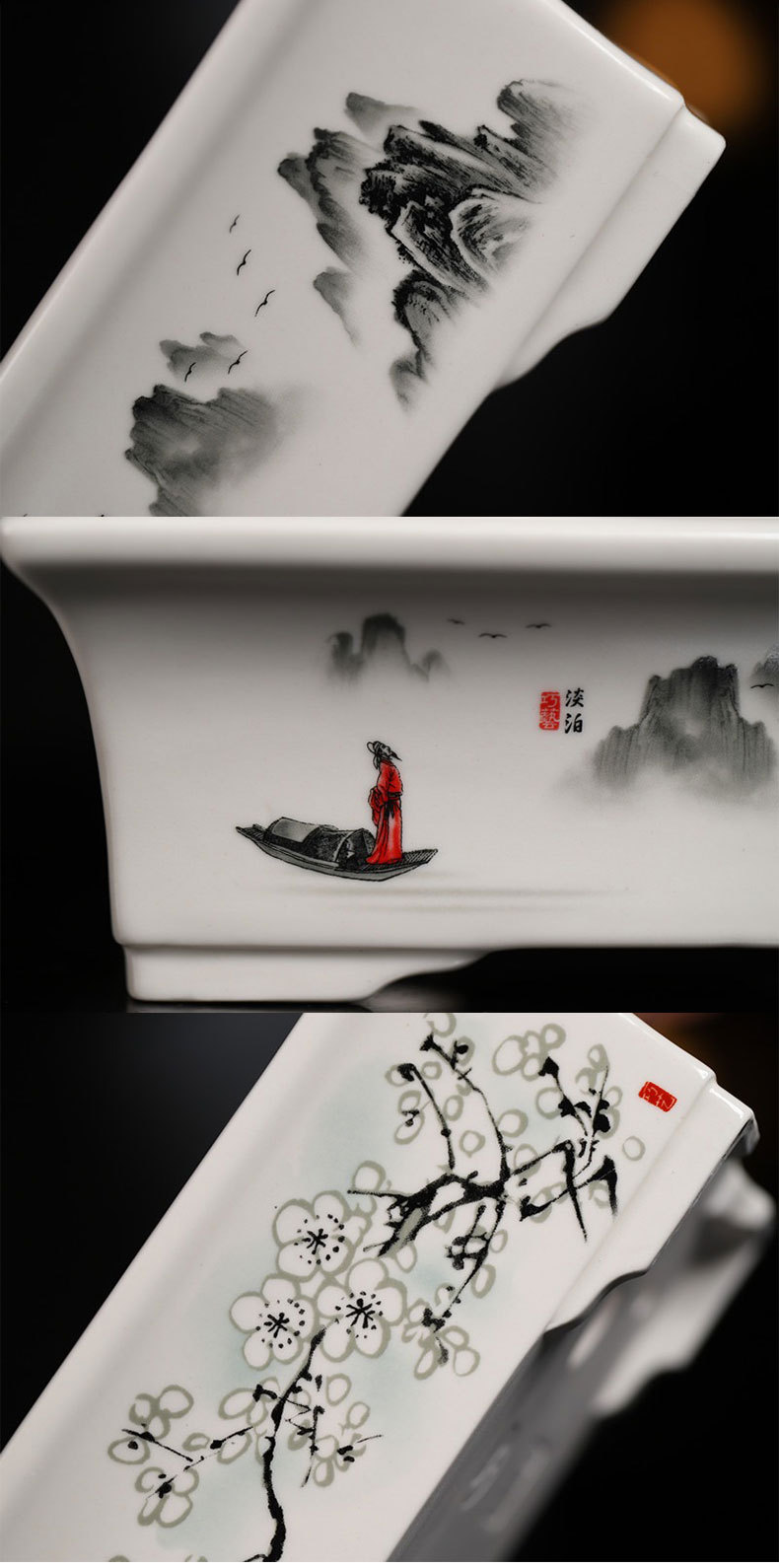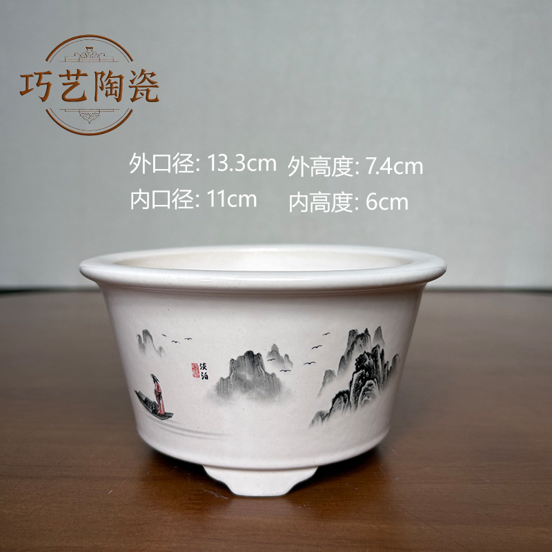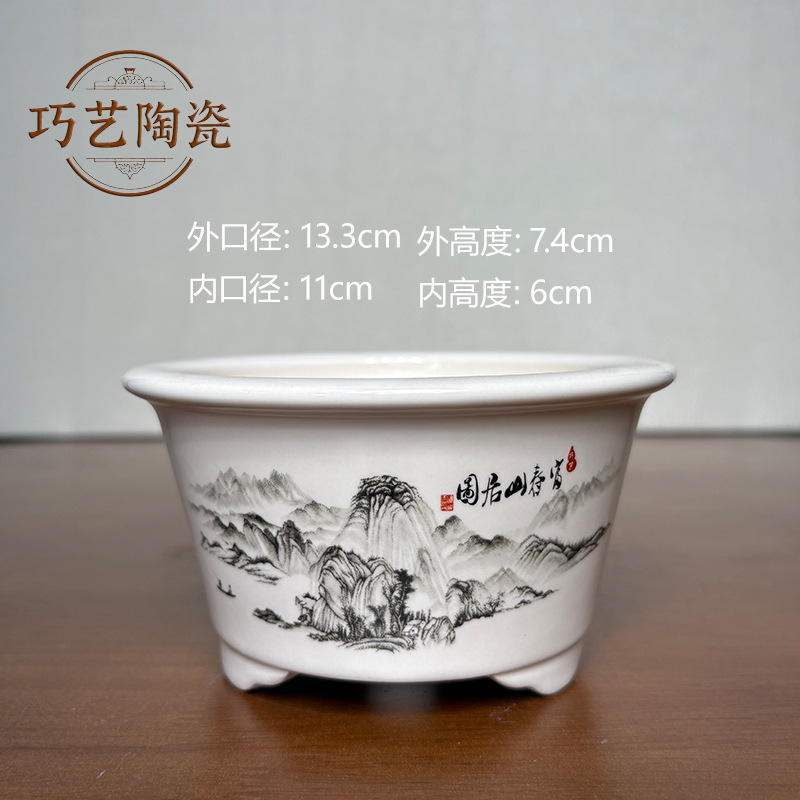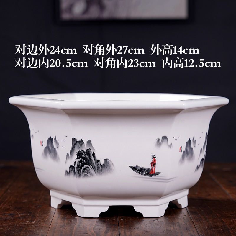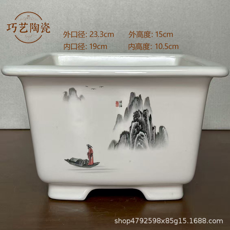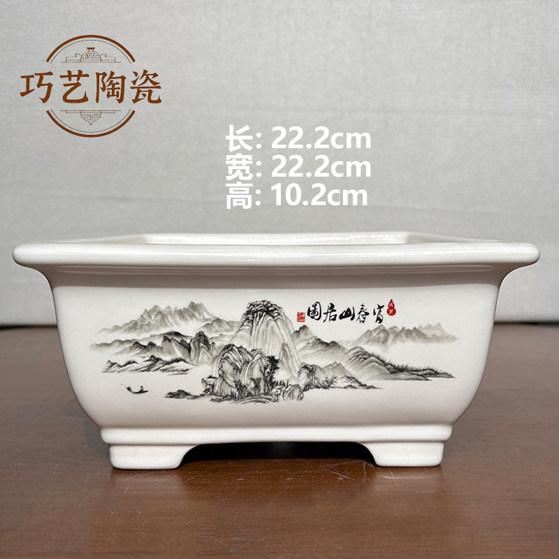 부티크 보라색 모래 화분 세라믹 직사각형 대형 화분 도매 잉크 풍경화 풍경 냄비 New