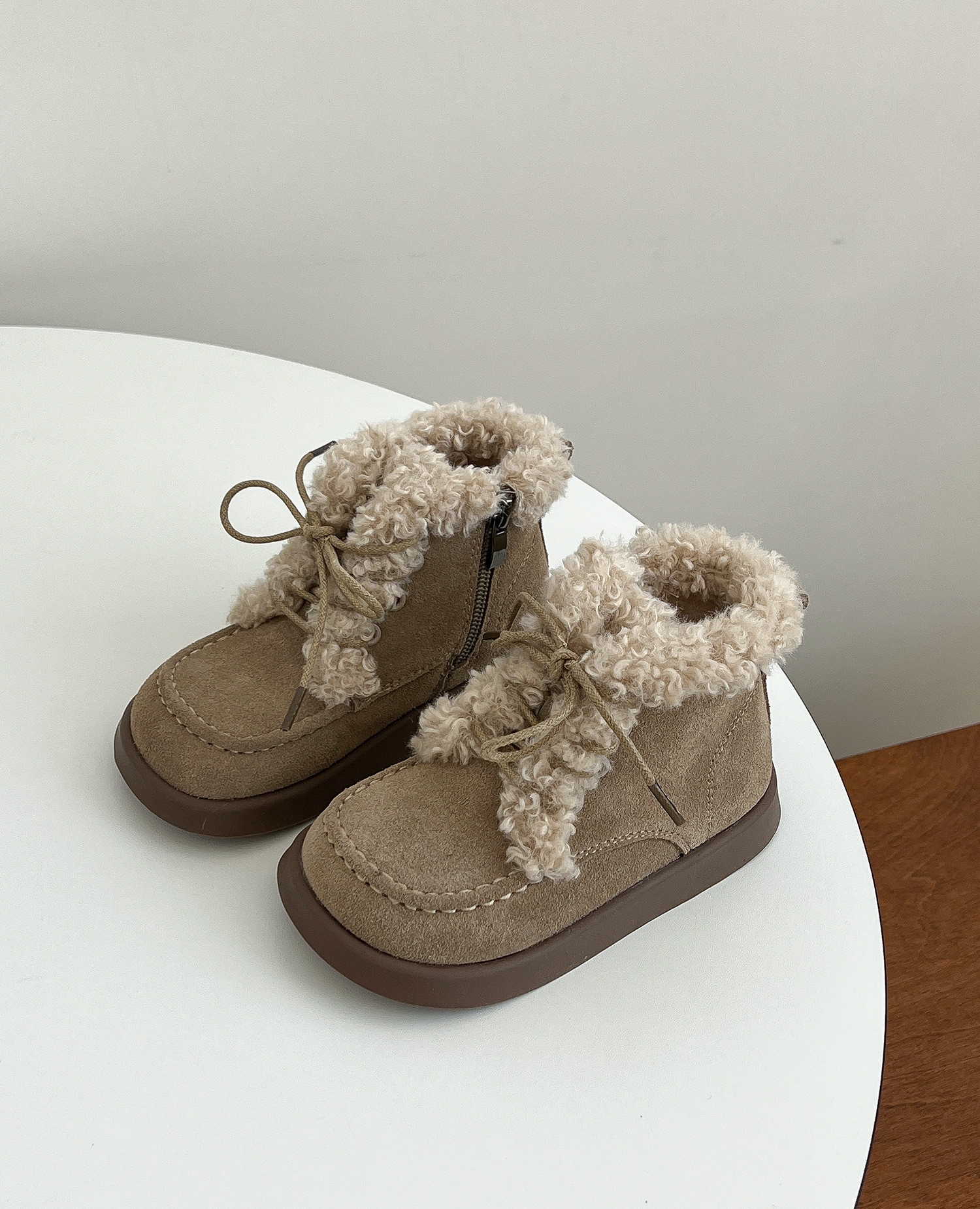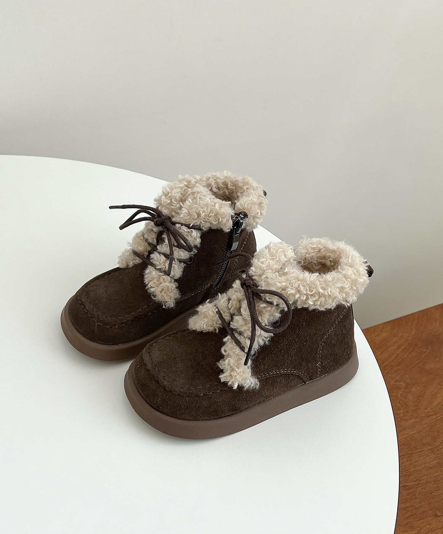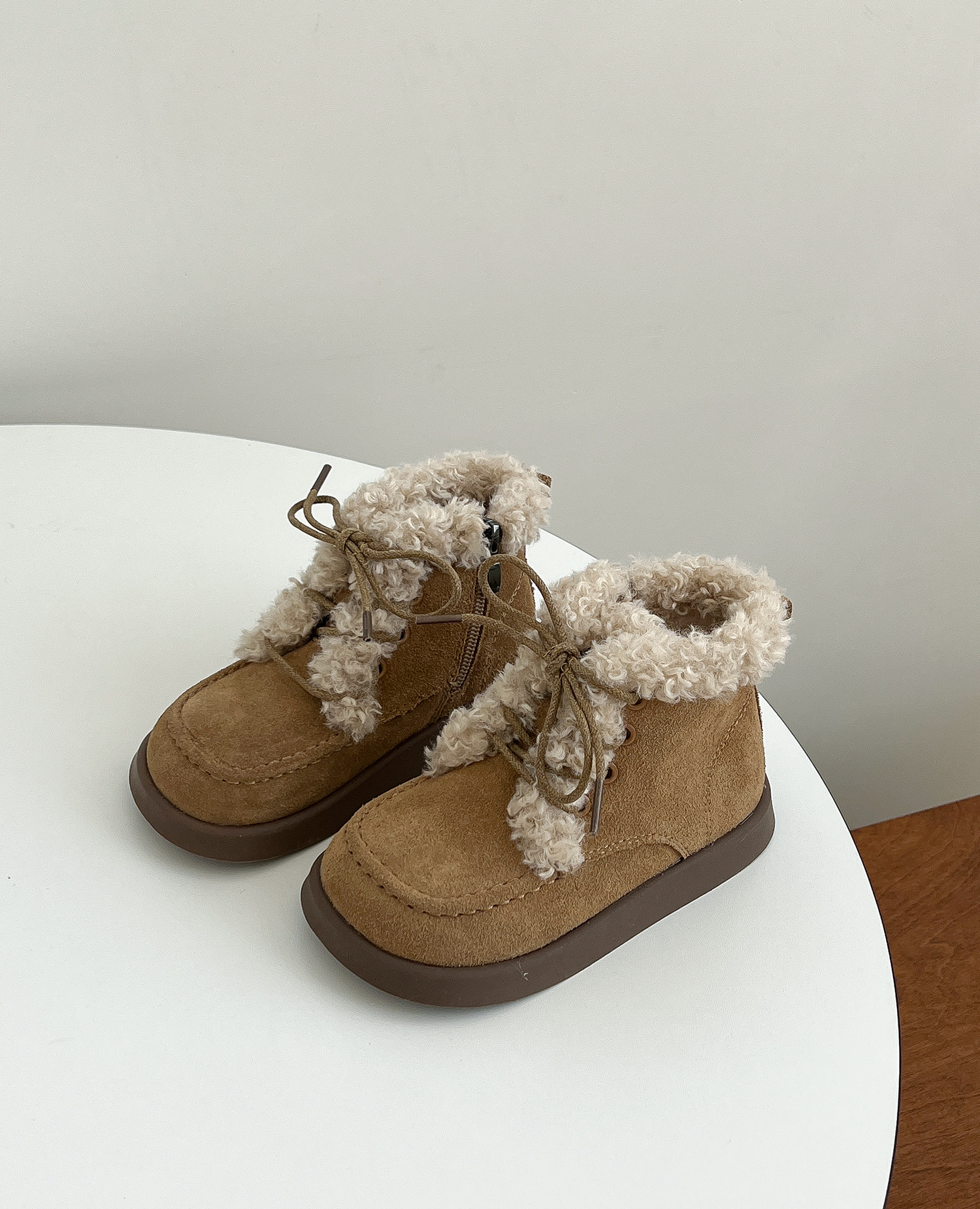 한국 스타일 어린이 버 웜 부츠 2023 겨울 새 여아 벨벳 가죽 미끄럼 방지 마틴 부츠 남아 면 부츠스토어 가기