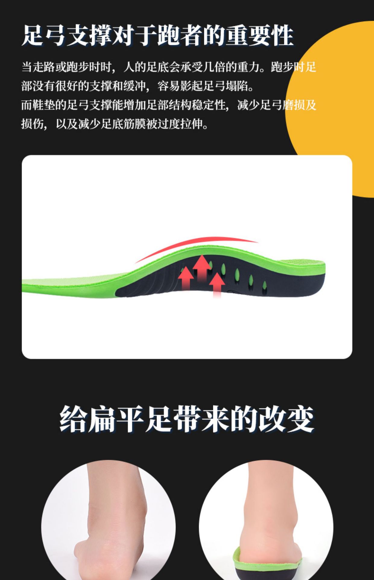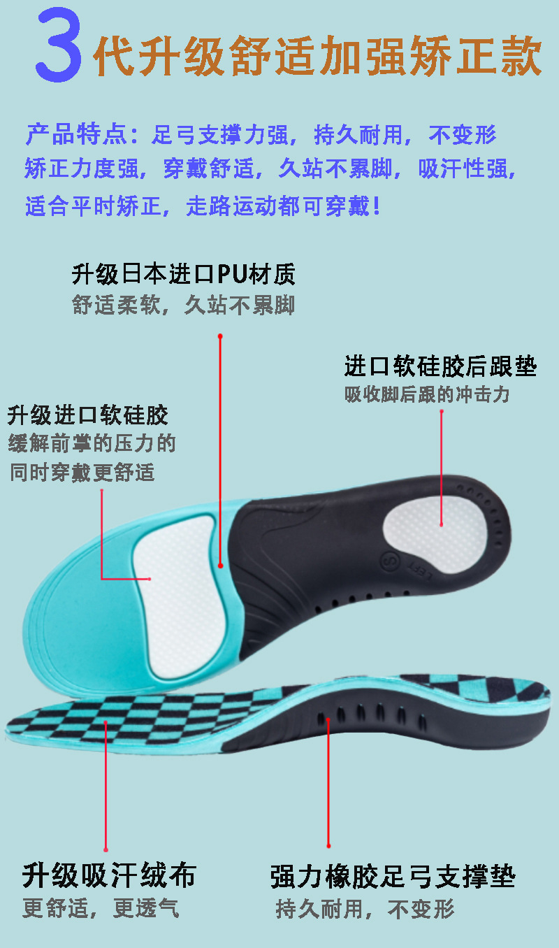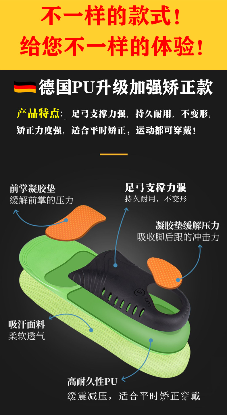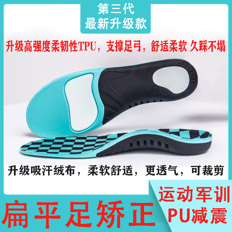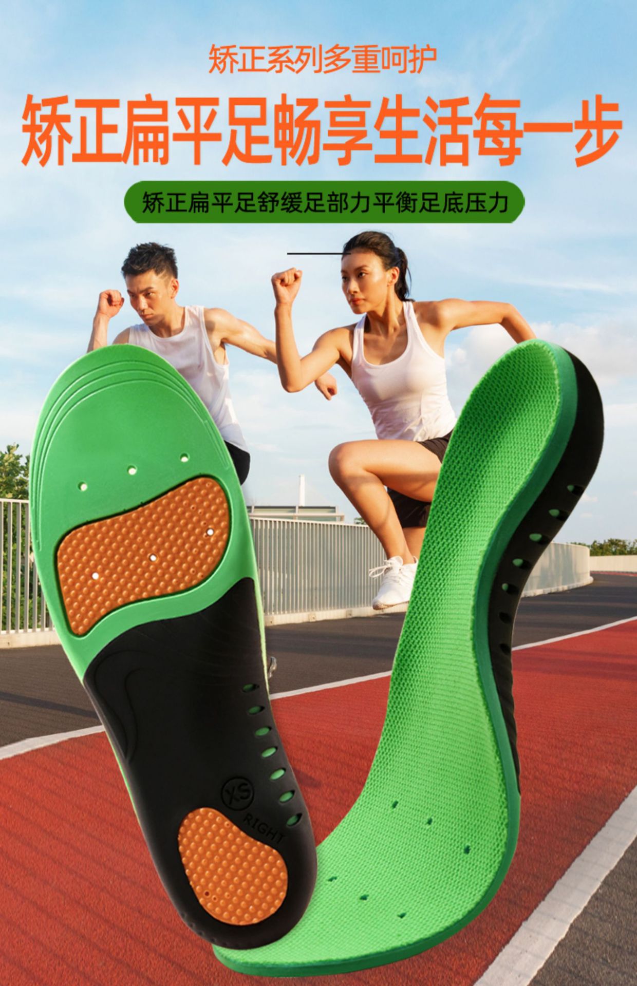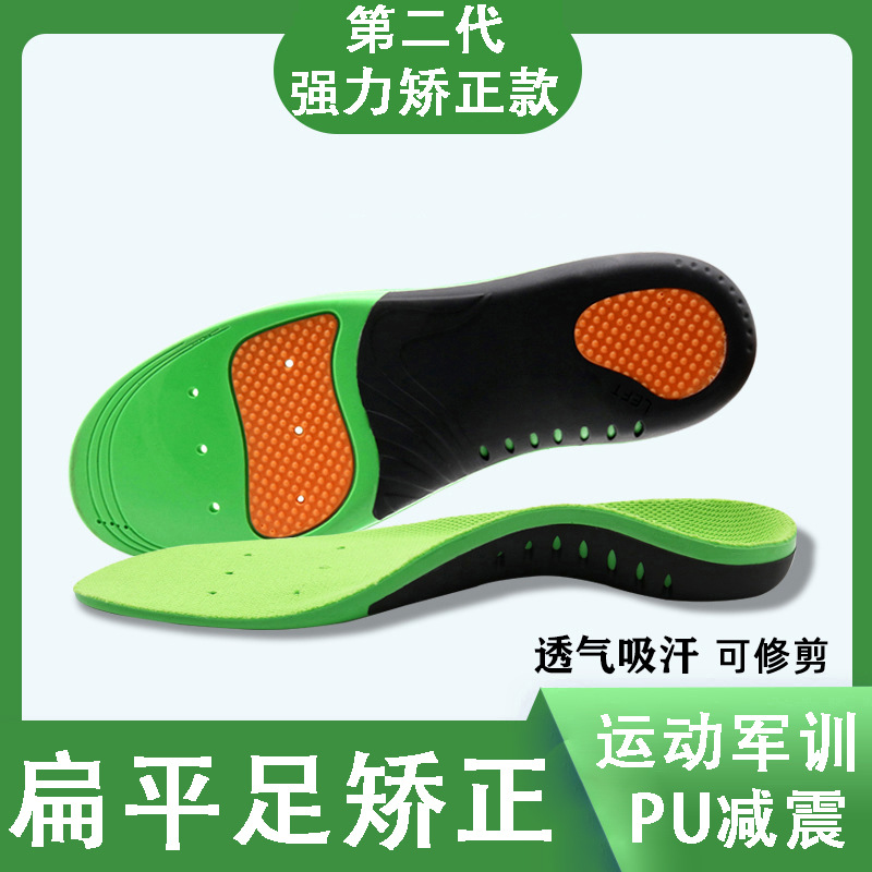 어린이와 성인을 위한 평발 교정 스포츠 PU 충격 흡수 깔창은 아치를 지원하는 외부 모양의 O자형 다리 군사 훈련을 개선합니다.스토어 가기
