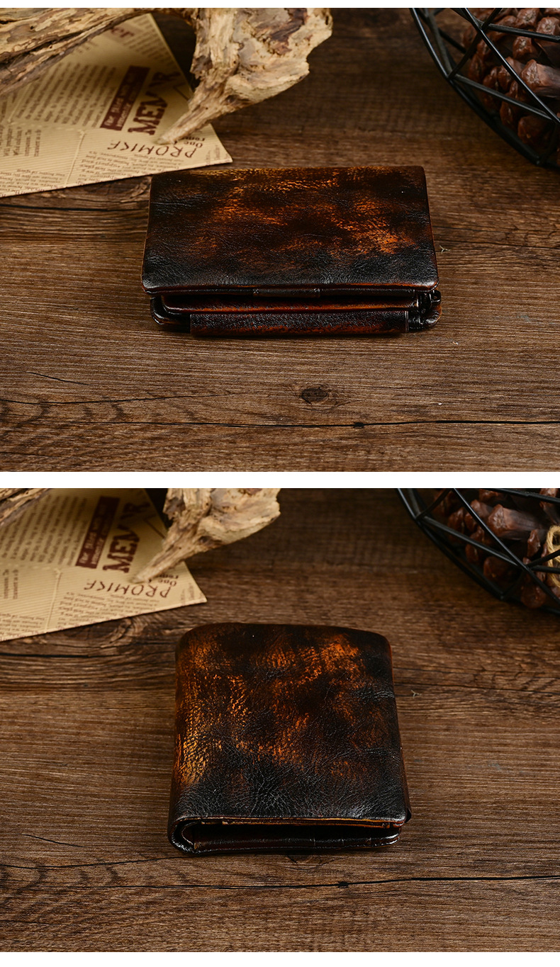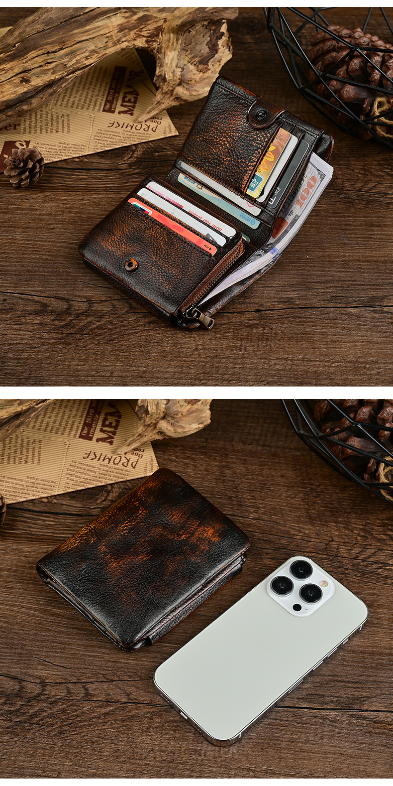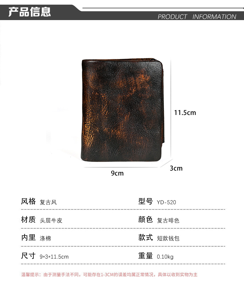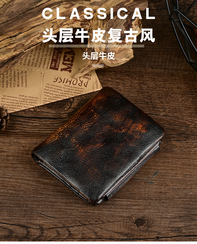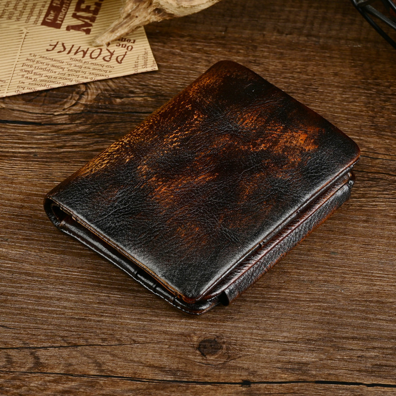 새로운 정품 가죽 짧은 지갑 탑 레이어 소가죽 빈티지 오래된 동전 지갑 캐주얼 멀티 카드 지갑 해외 무역 카드 홀더
