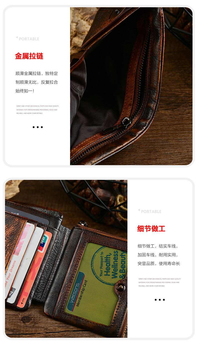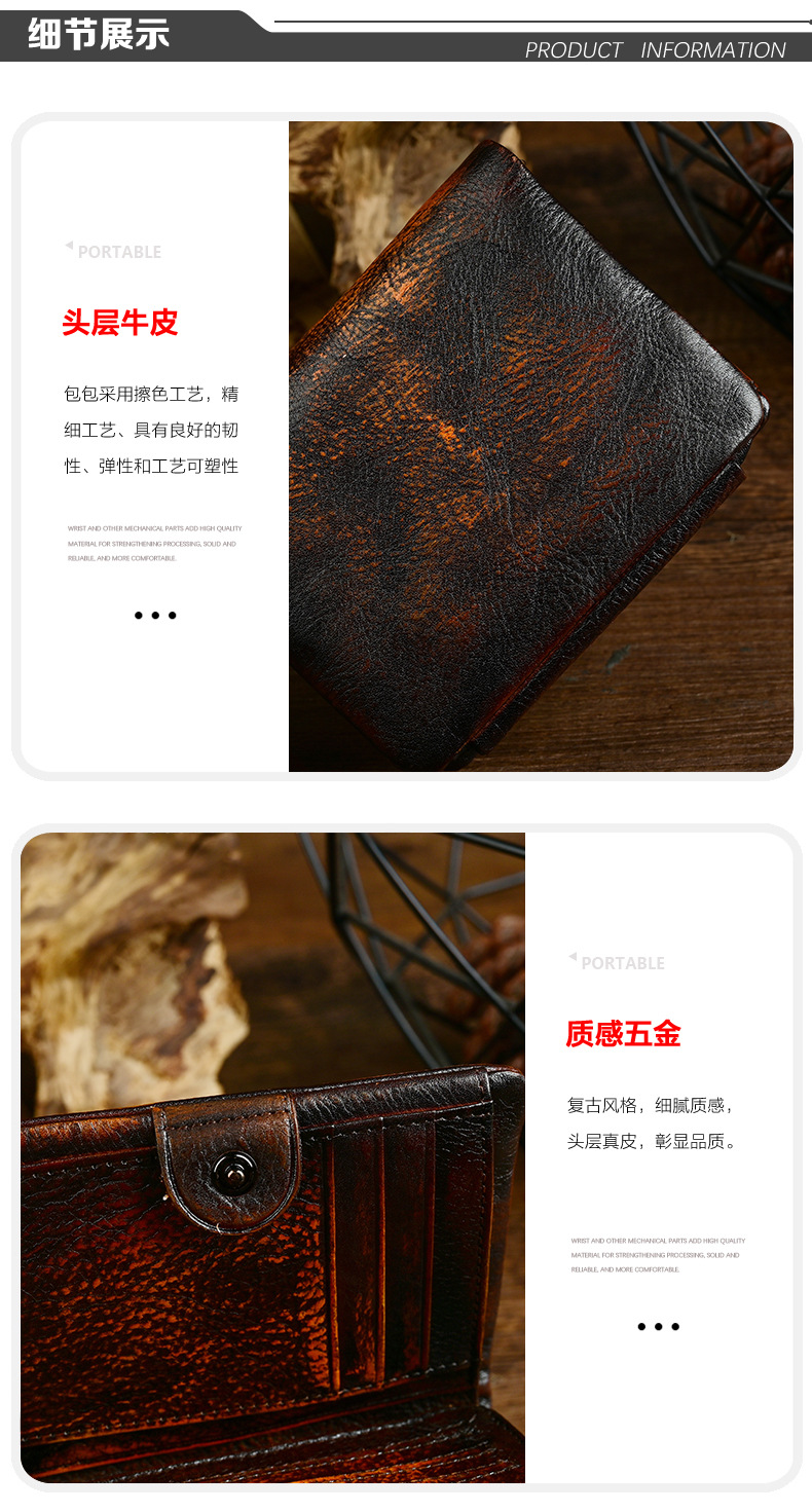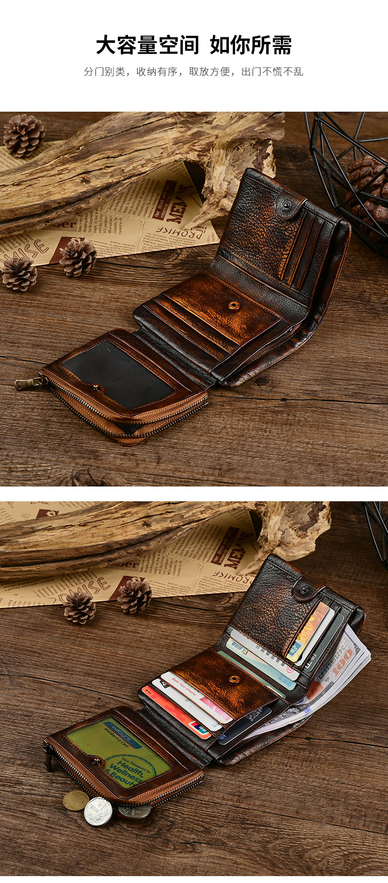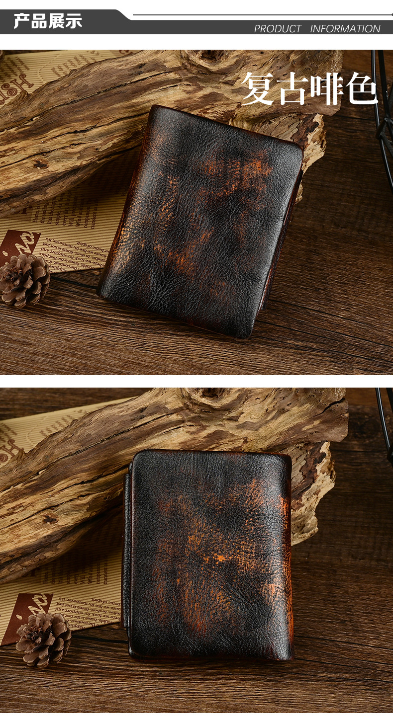 새로운 정품 가죽 짧은 지갑 탑 레이어 소가죽 빈티지 오래된 동전 지갑 캐주얼 멀티 카드 지갑 해외 무역 카드 홀더스토어 가기