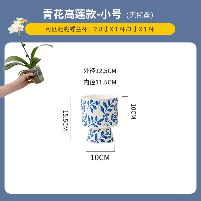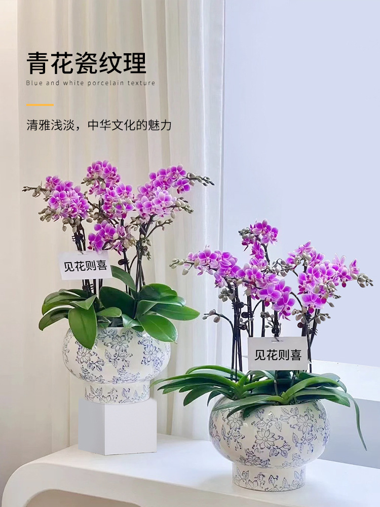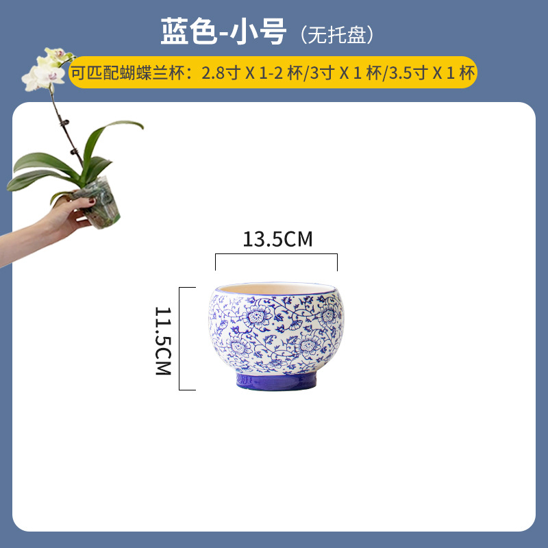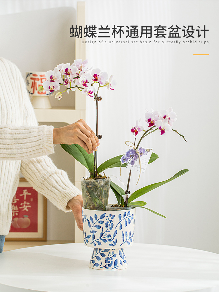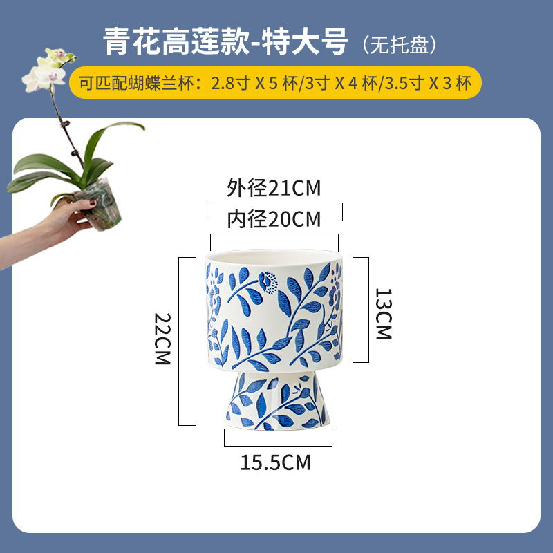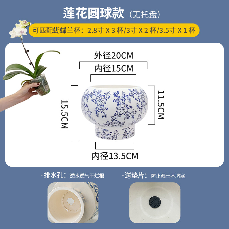 나비 난초 화분, 고급스럽고 세련된 신중국풍 도자기 대형 화분, 난초 전용, 경덕진 청화백자 화분