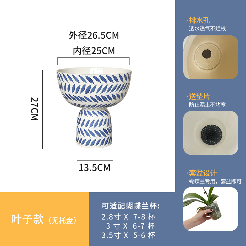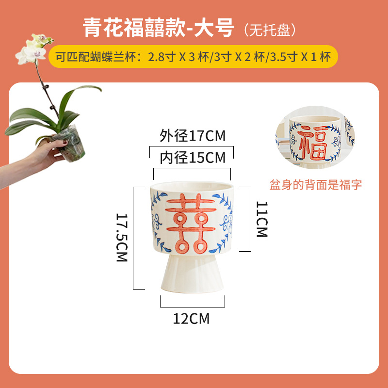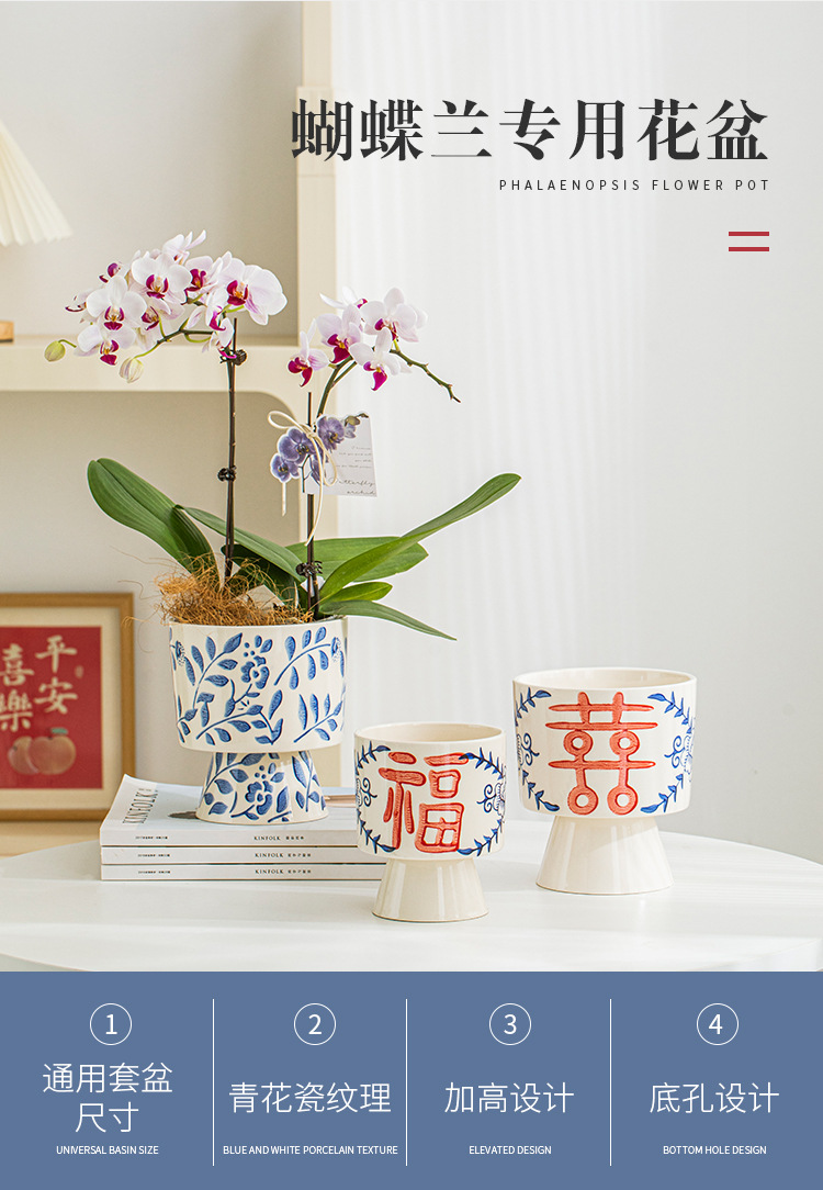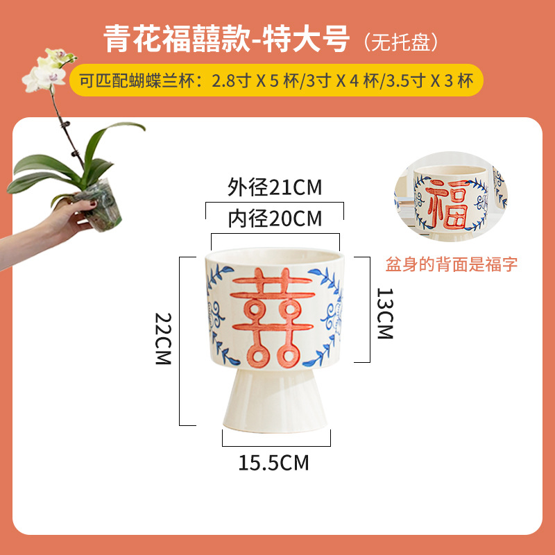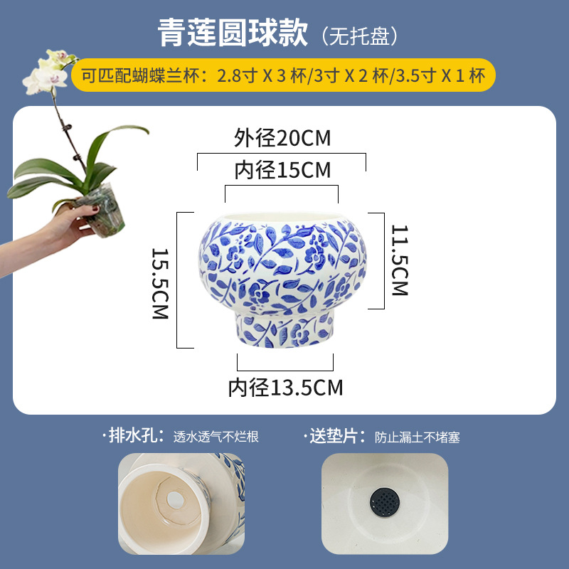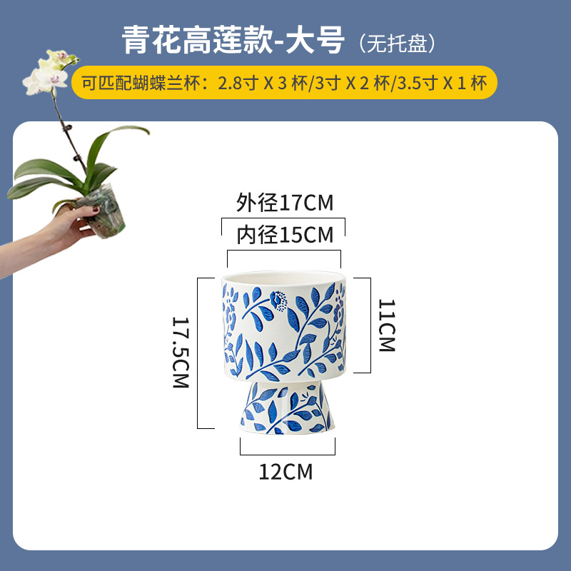 나비 난초 화분, 고급스럽고 세련된 신중국풍 도자기 대형 화분, 난초 전용, 경덕진 청화백자 화분