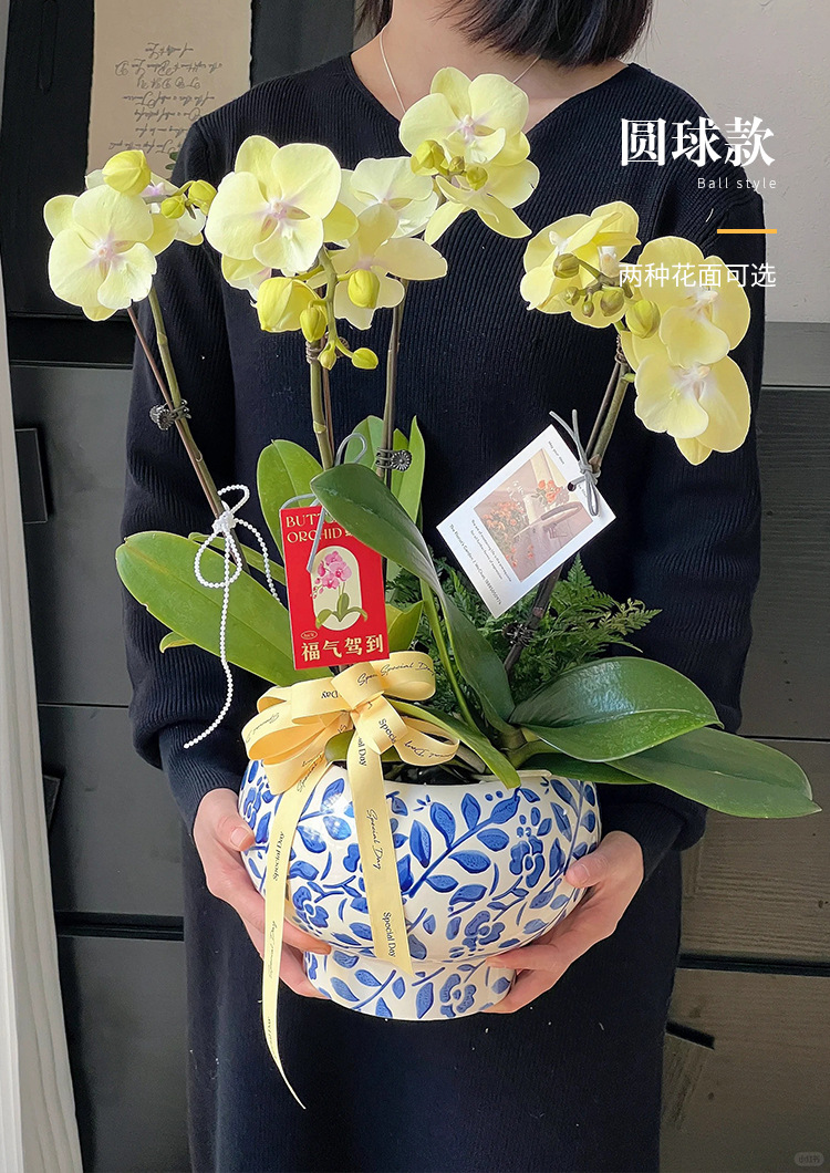 나비 난초 화분, 고급스럽고 세련된 신중국풍 도자기 대형 화분, 난초 전용, 경덕진 청화백자 화분스토어 가기