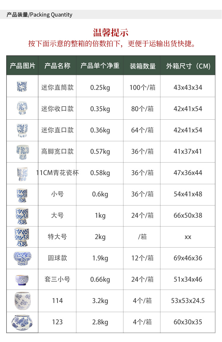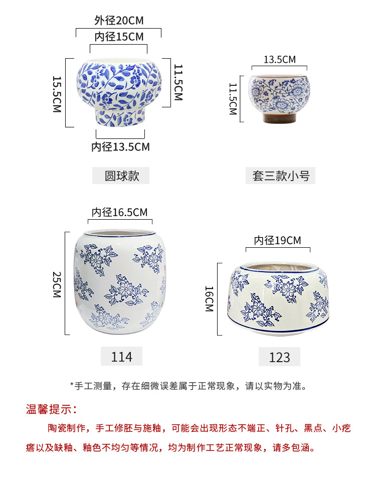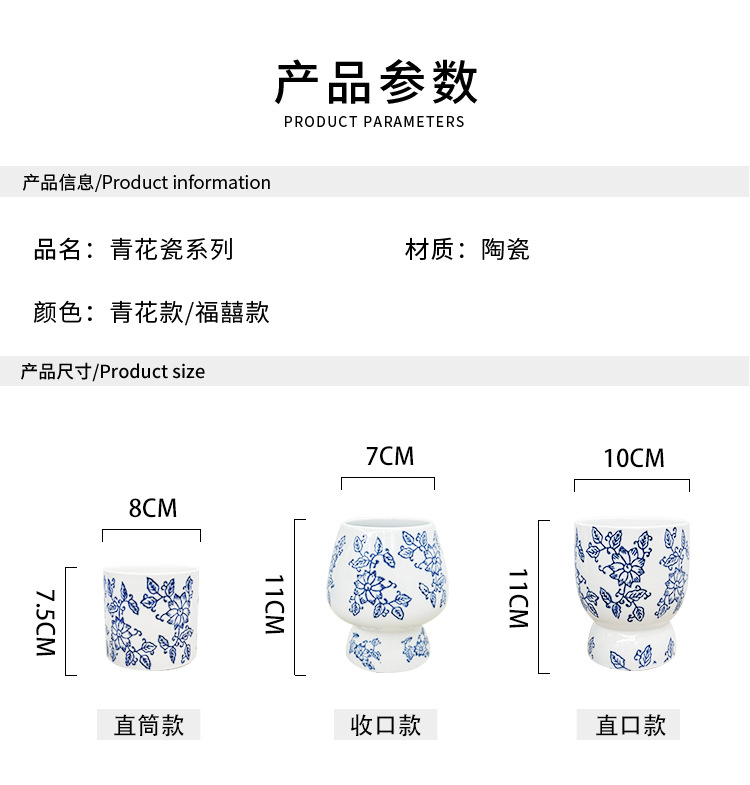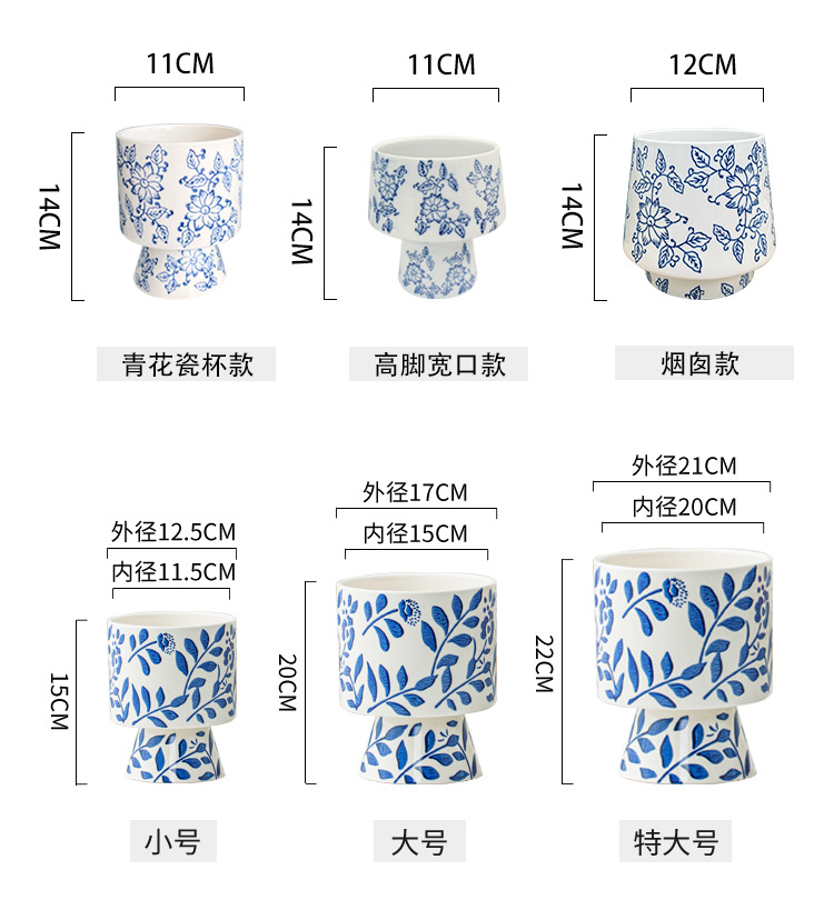 • [파란색과 흰색 스트레이트 입 스타일] Fuxi (트레이 없음)/다육 식물에 적합한 작은 크기