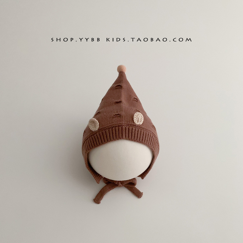 어린이 모자 가을과 겨울 한국어 아기 헤어 볼 레이스 업 모자 귀 보호 모자 여아웨어 모자 세련된 뾰족한 모자스토어 가기