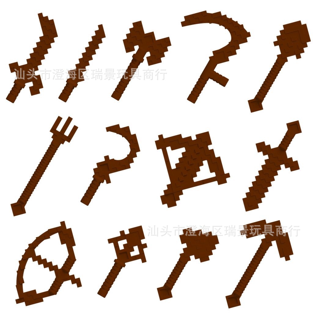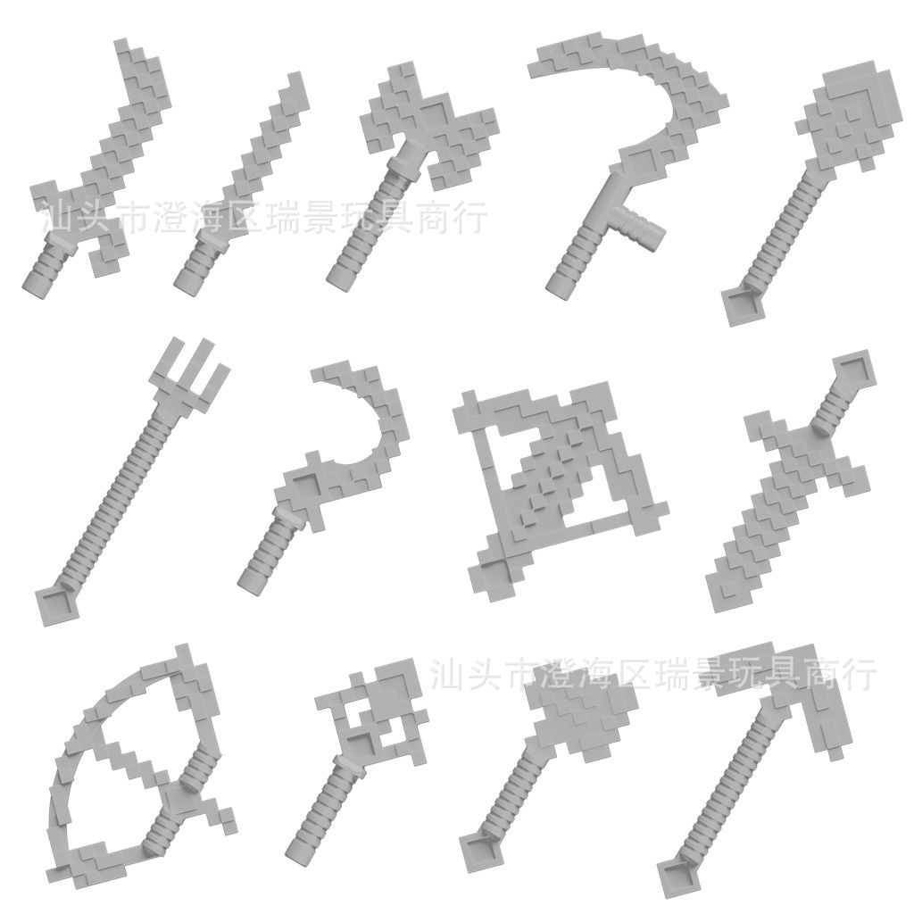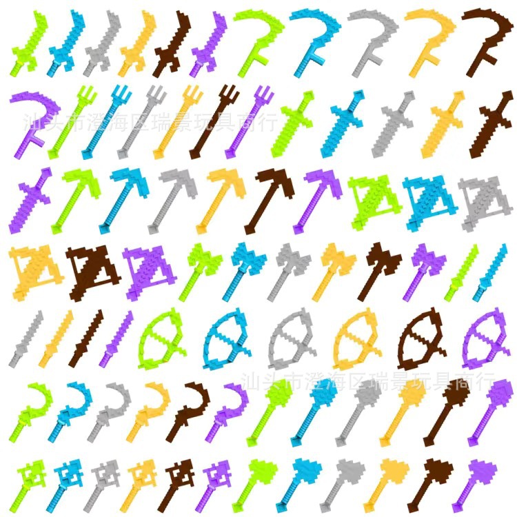 마이 스퀘어 월드 무기 조각 멀티 컬러 도구 및 장비 액세서리 작은 입자 조립 건물 블록 교차 테두리스토어 가기