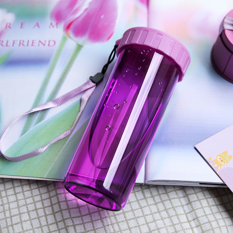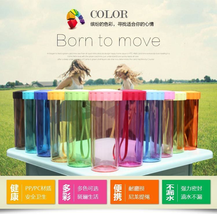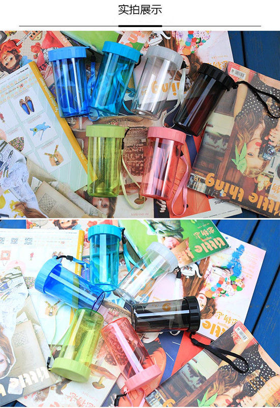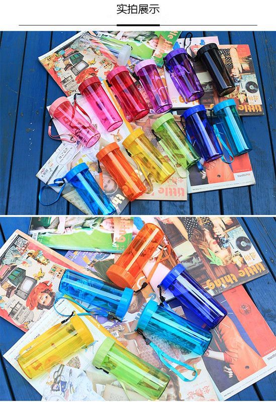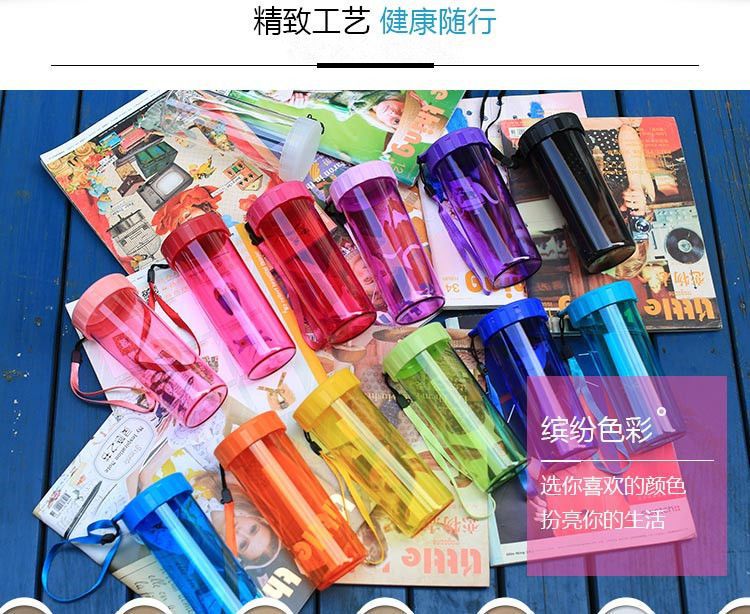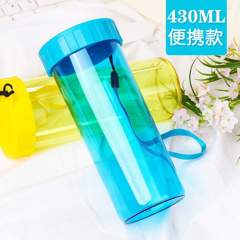 광고 선물 컵 휴대용 두꺼운 플라스틱 컵 야외 간단한 스포츠 워터 컵 학생 휴대용 컵 누출 방지 로프