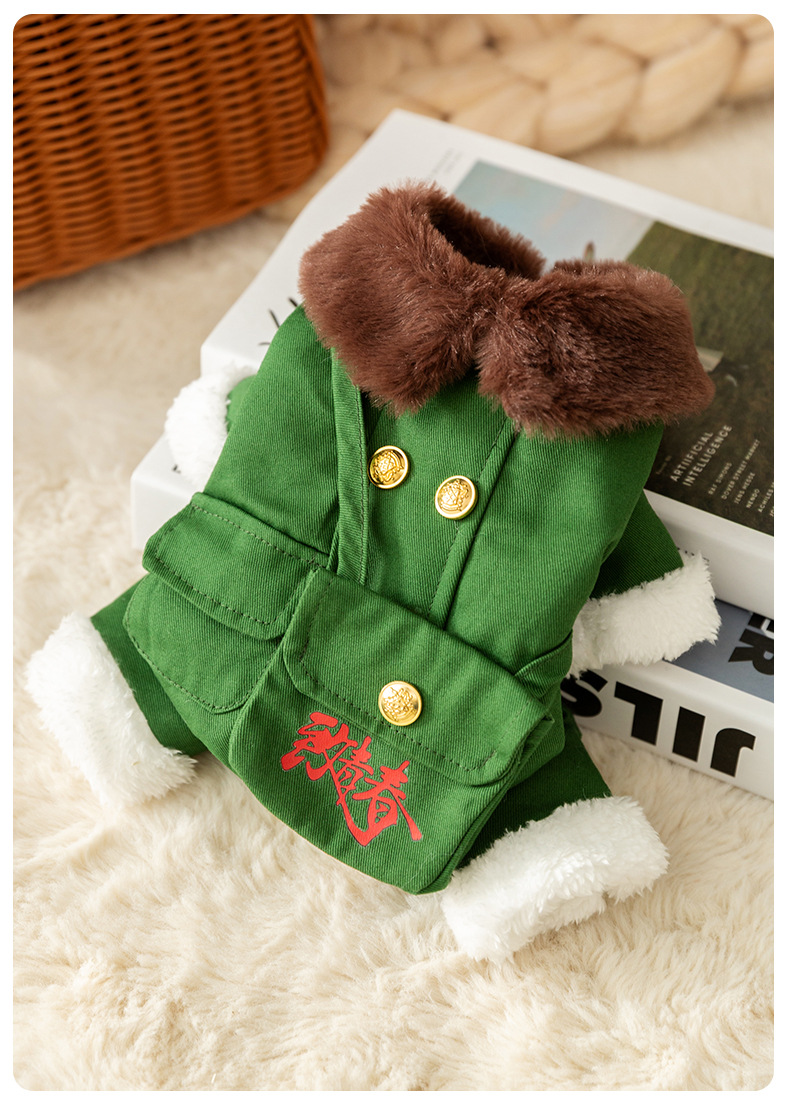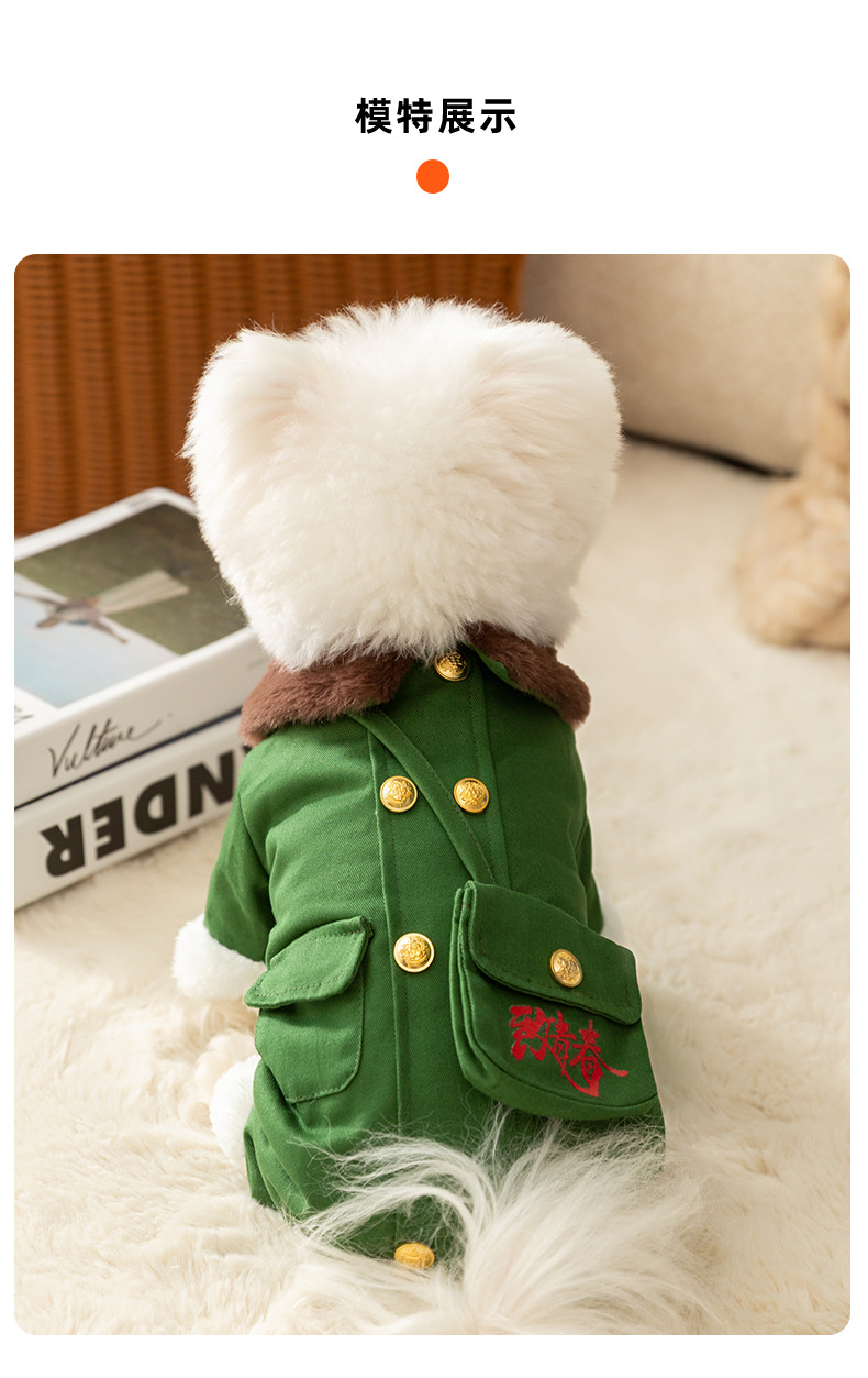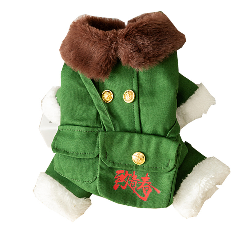 녹색 육군 코트 북동쪽 냉방한 레이 펑 4 다리면 패딩 옷, 두꺼운 봄과 가을 애완견 옷 도매