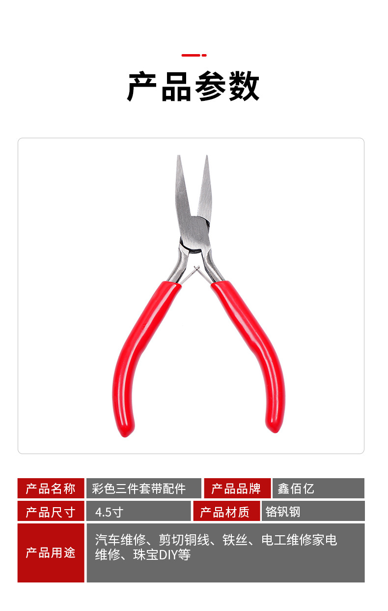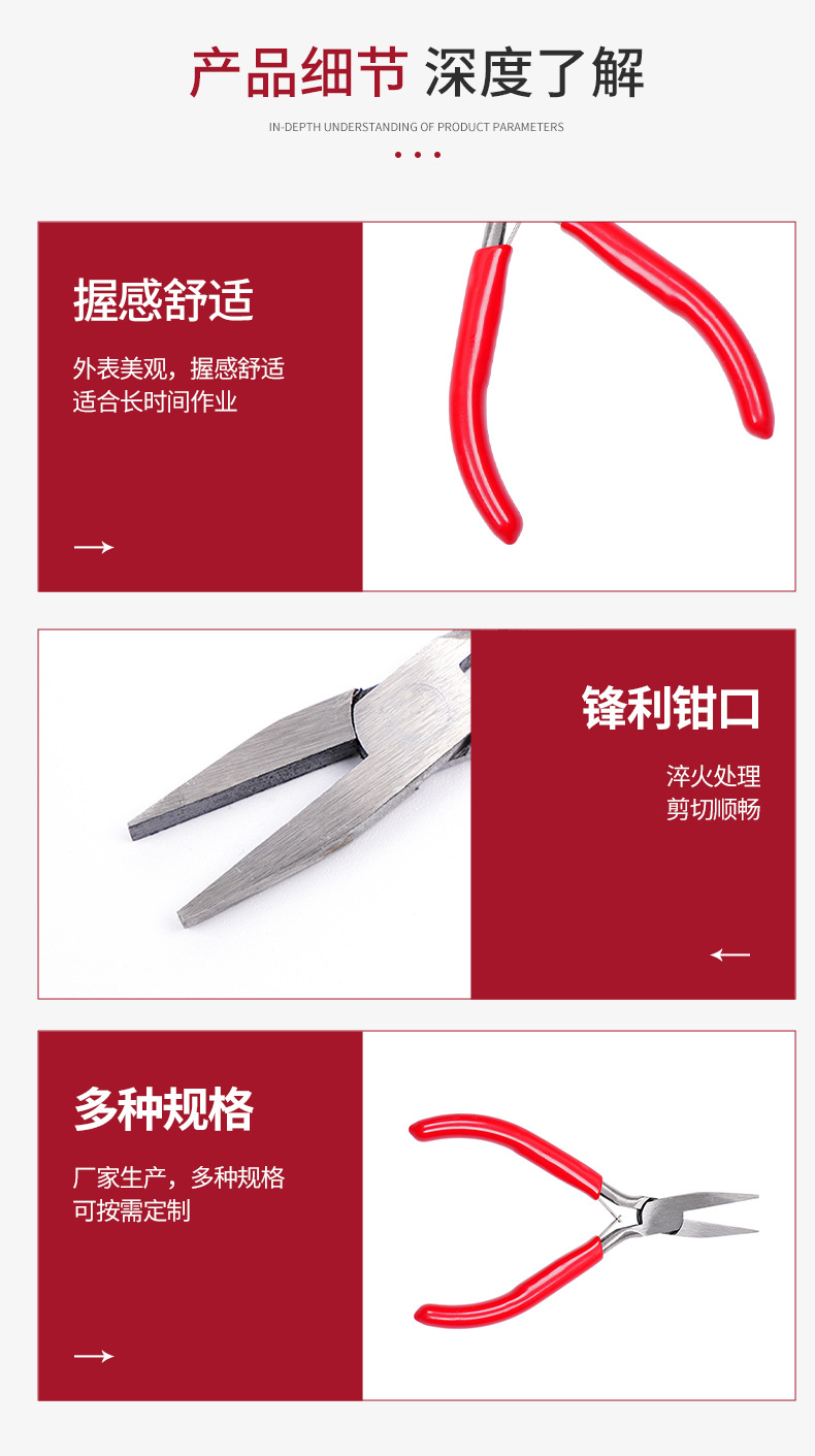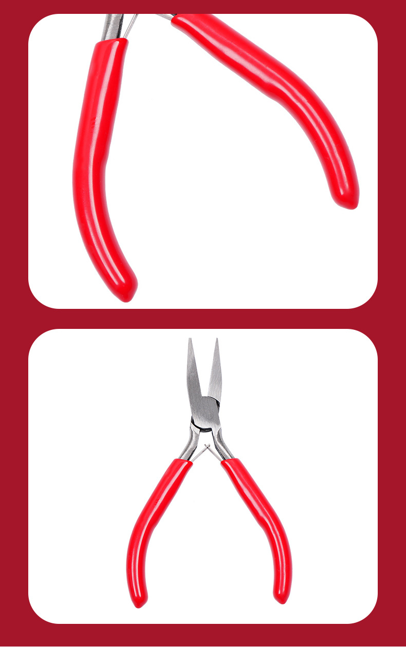 4.5inch 평평한 코 펜치 빨간색 플라스틱 손잡이 일반 중국식 평평한 코 펜치 보석 수공예 비즈 DIY 주얼리