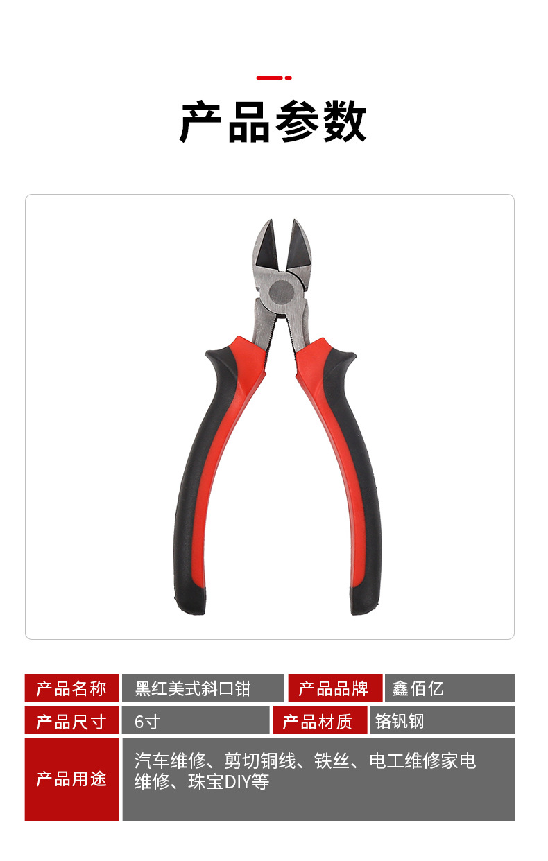 6 인치 검은 색과 빨간색 미국 대각선 펜치 핸들 보석 다기능 펜치 도구 공장 도매