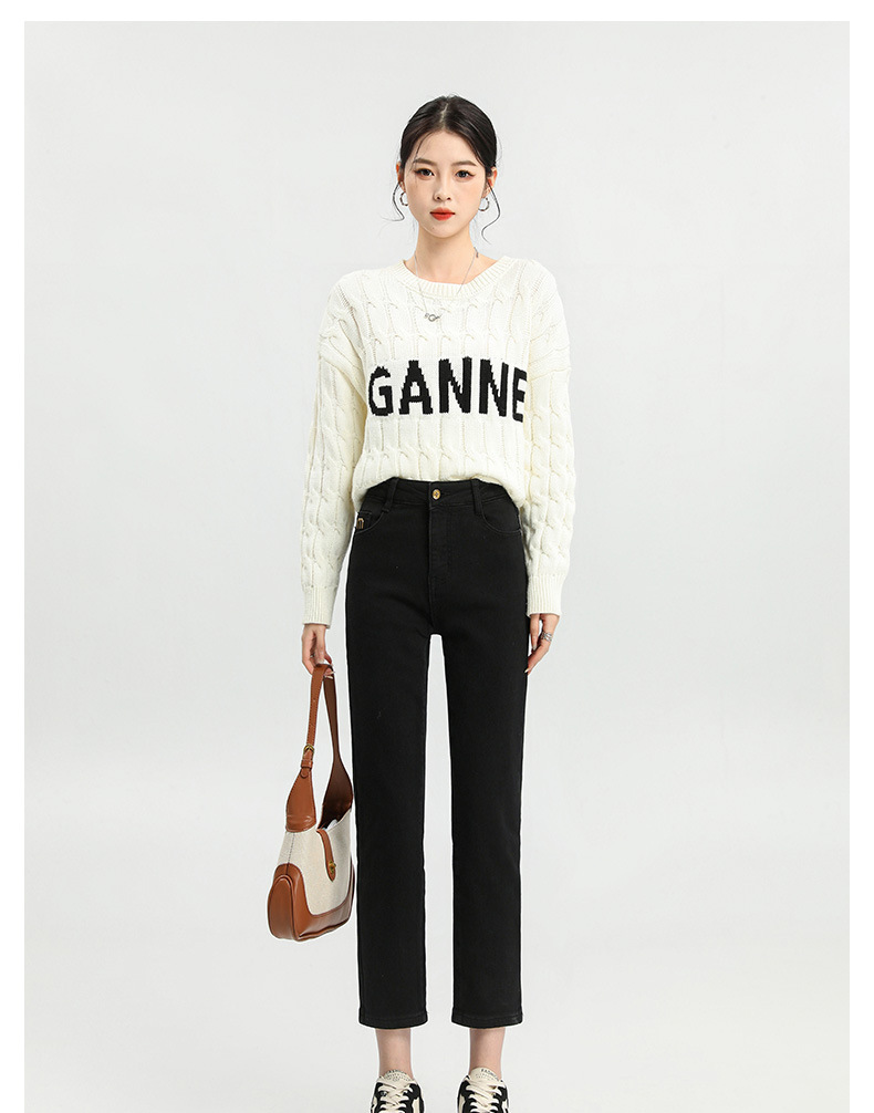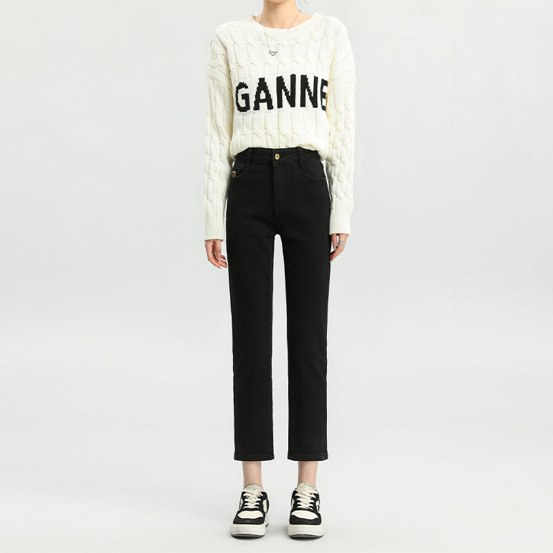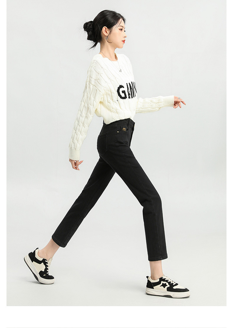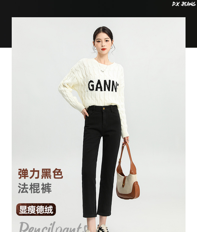 【데롱】여성용 9부 스트레이트 데님 팬츠 가을 겨울 슬림핏 신상품 작은 키 여성을 위한 기모 두꺼운 하이웨이스트 스모크 팬츠