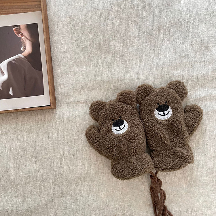 Emo Beibei 어린이의 겨울 따뜻한 두꺼운 귀여운 만화 스카프 세트 아기 봉제 방풍 목 교수형 장갑
