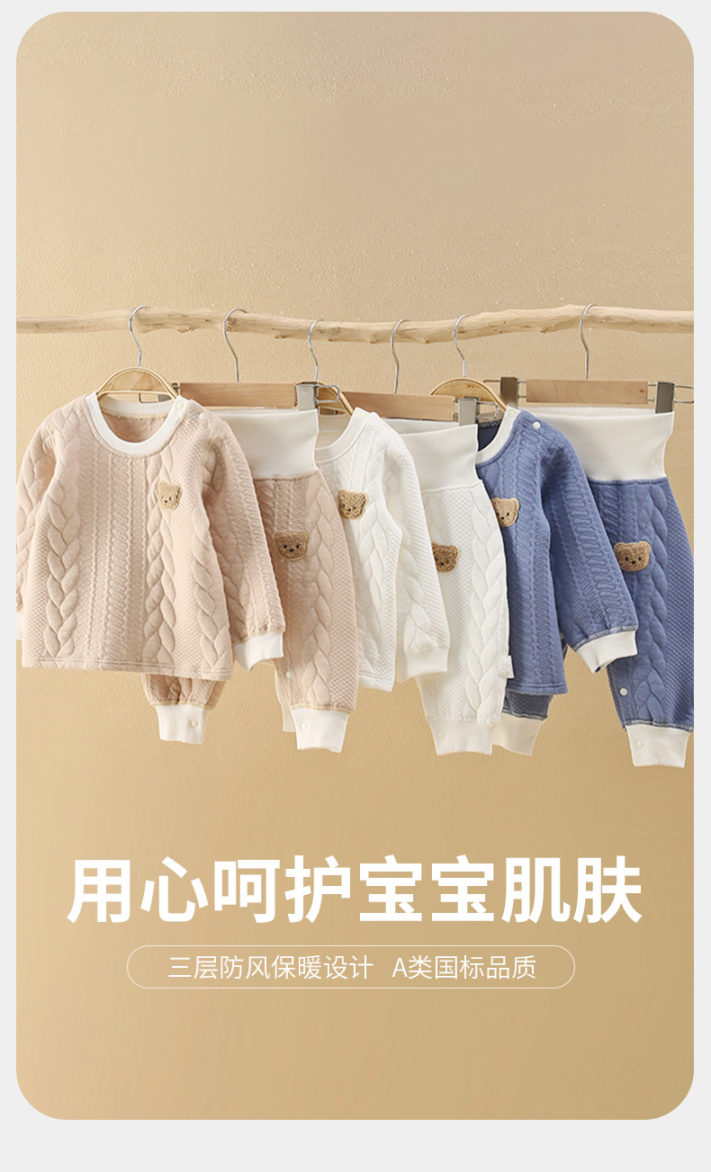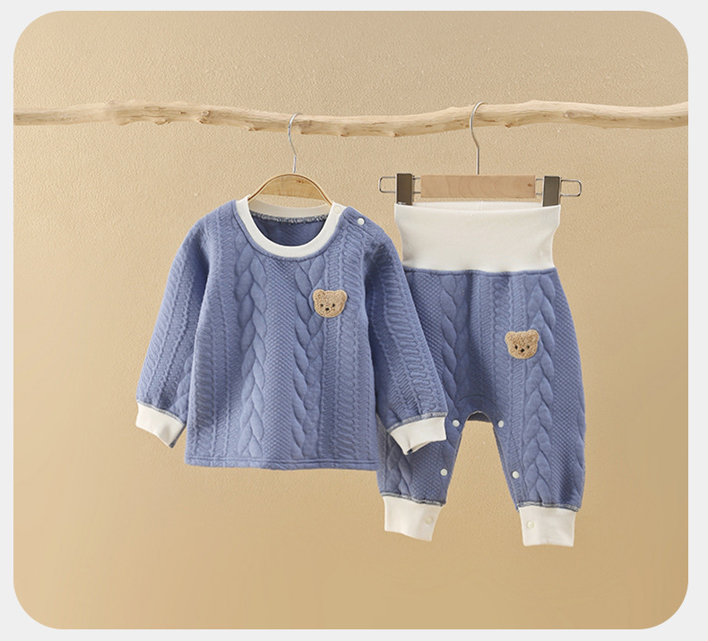 아빠 아기용 누빔 분리형 상하의 세트, 뼈 없는 아기용 하이웨이스트 배 보호 가을 겨울 보온복스토어 가기